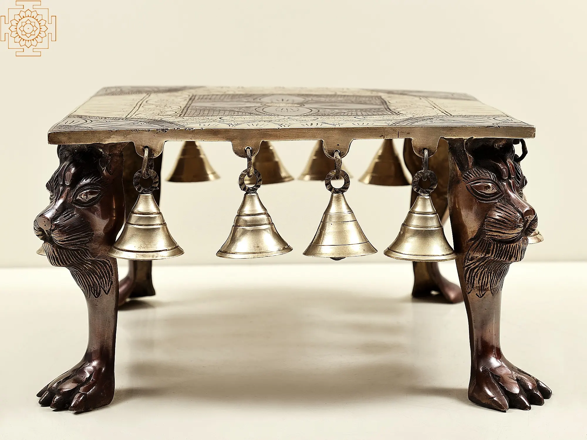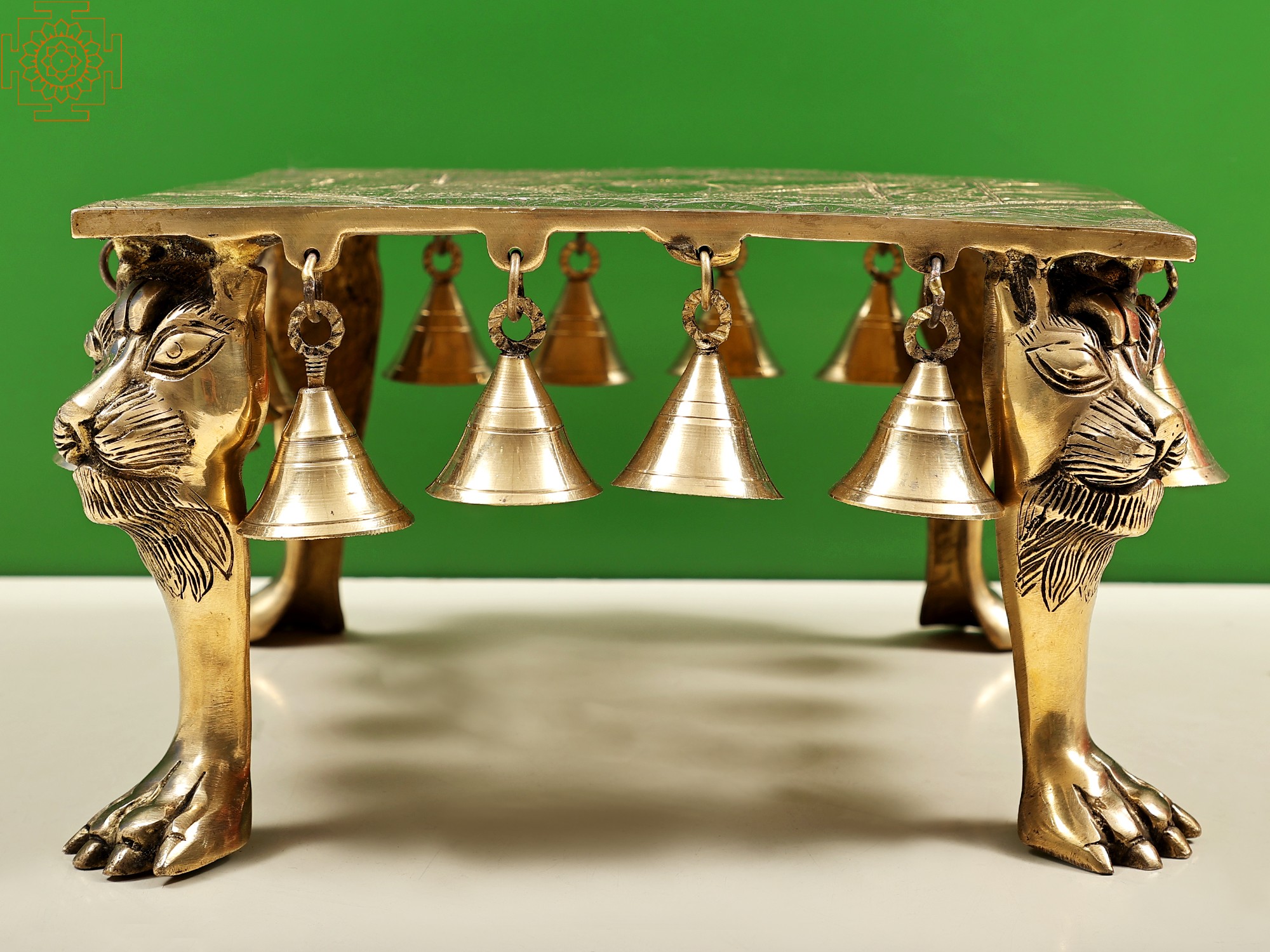 A brass beauty with tinkles of the bell and the regality of lions, whether you place this chowki in your living room, study, or garden, it will undoubtedly become a conversation starter and a cherished piece of art. Its timeless design and artistic craftsmanship make it an ideal gift for special occasions or a treat for yourself. Elevate your decor with this stunning blend of beauty, heritage, and functionality.