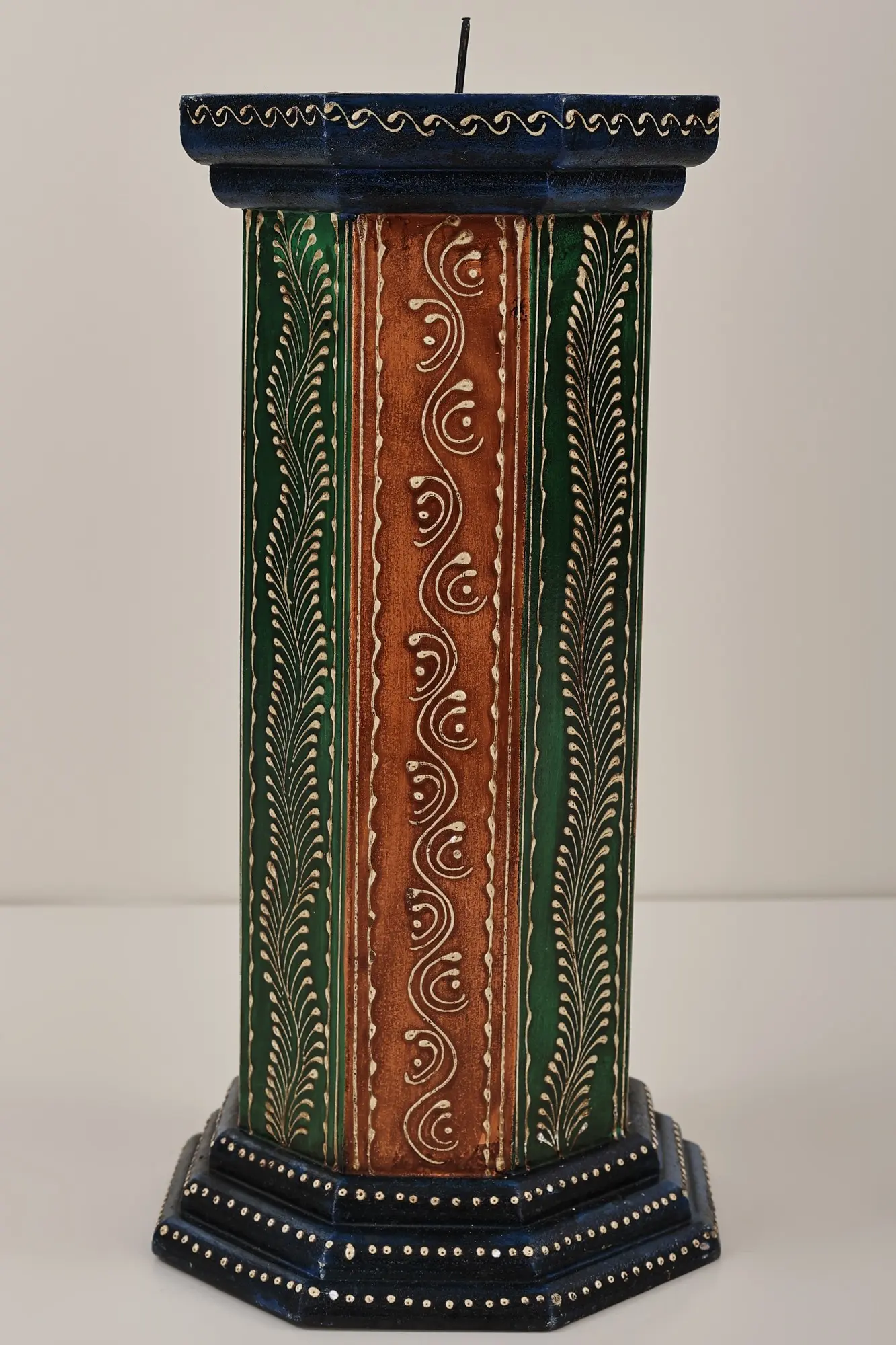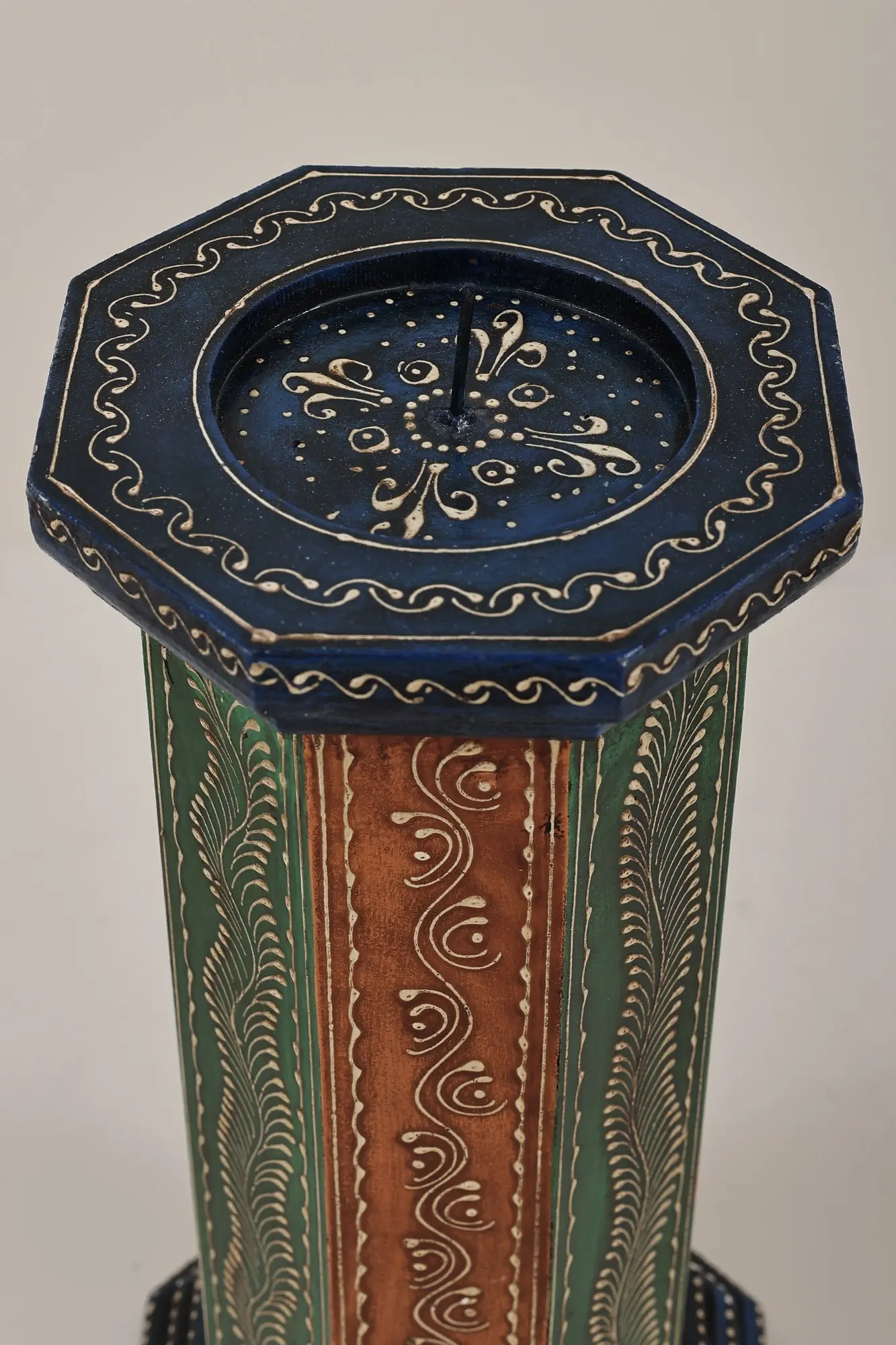 Candles are regarded as the messengers of wisdom and are accommodated in the finest home decor for their respectful use. This octagonal-shaped Candle Stand is the object that accommodates the messenger and gives a distinctive geometric flair to your design. At the same time, the Jodhpur-style painting provides a burst of brilliant colors. This skillfully crafted mix of form and function adds a touch of traditional elegance to any environment, providing a visual feast as the candles produce a pleasant glow. It stands out because of the excellent craftsmanship and vibrant hues, which effortlessly merge cultural aesthetics with functional illumination. With this eye-catching, vivid candle holder, you can up your ambiance and show off your love of artistic décor.