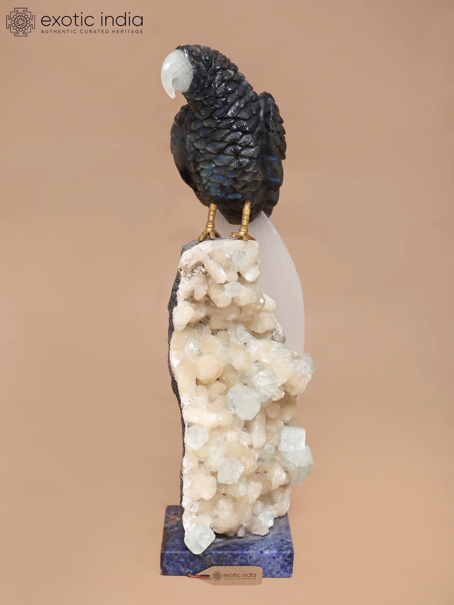 Features a natural crystal geode base for a unique display.