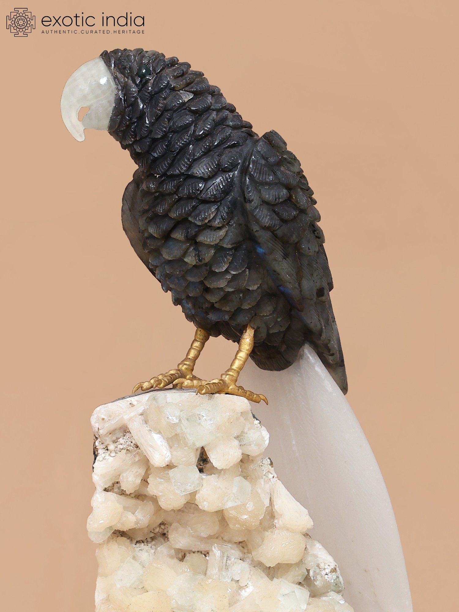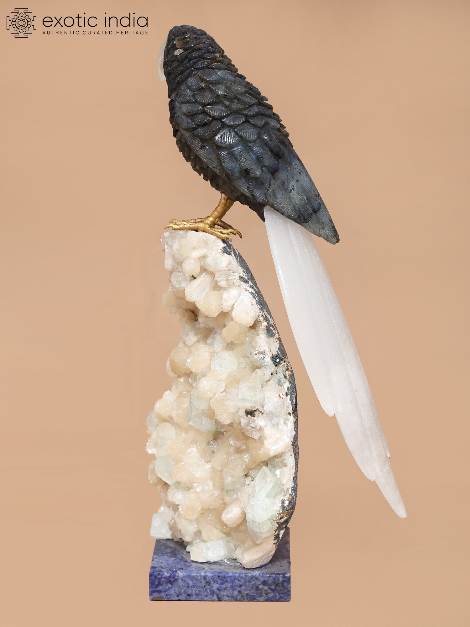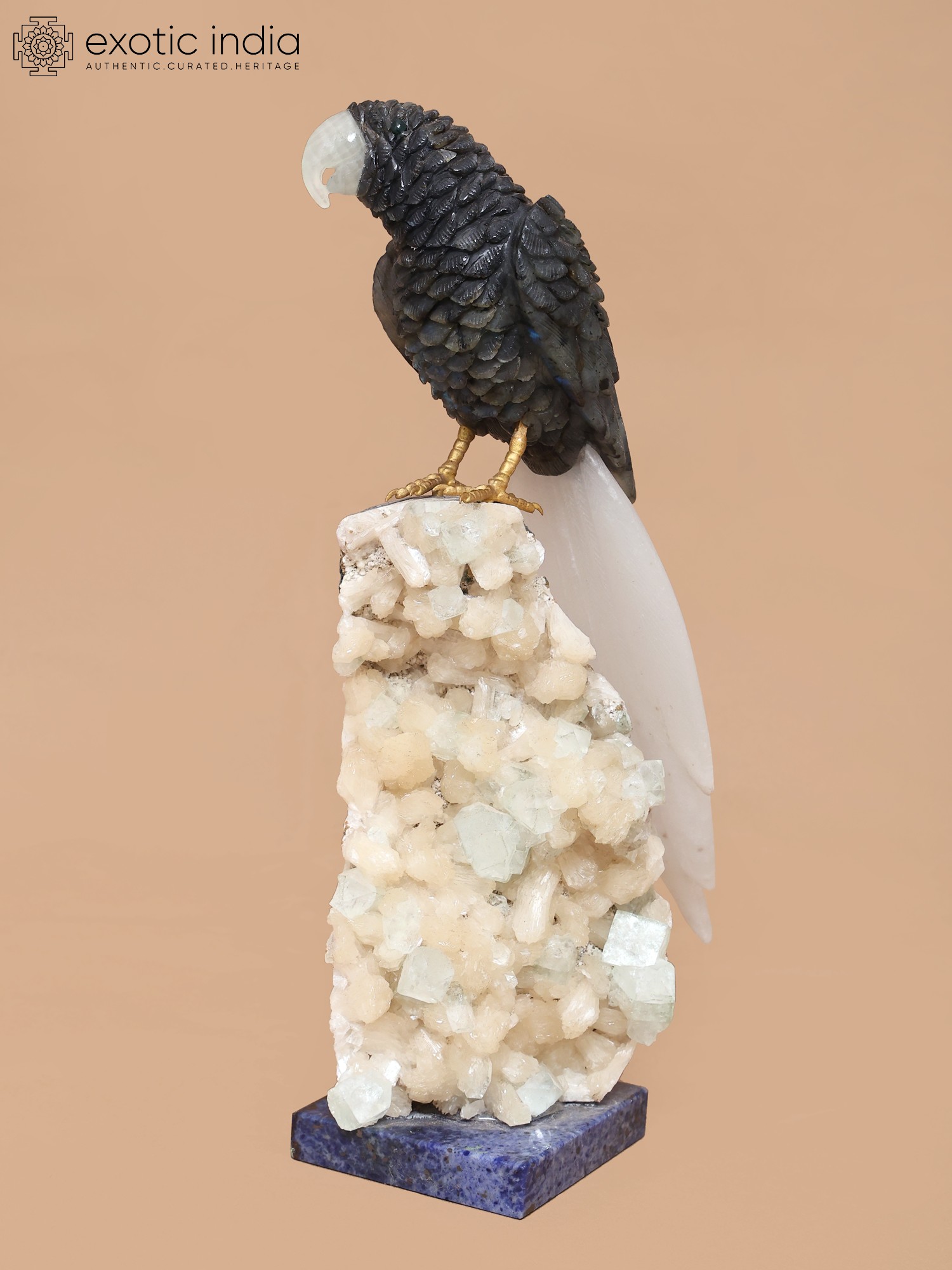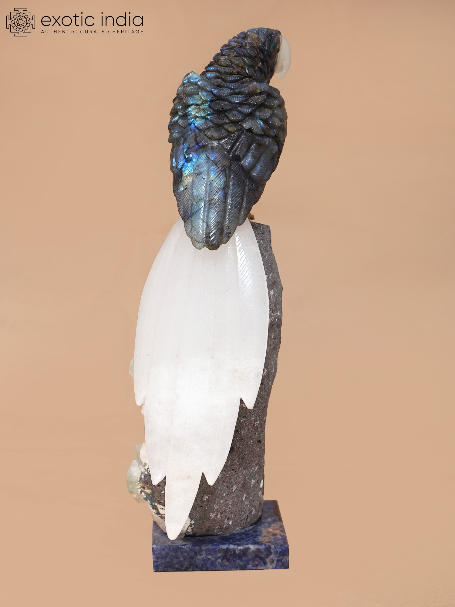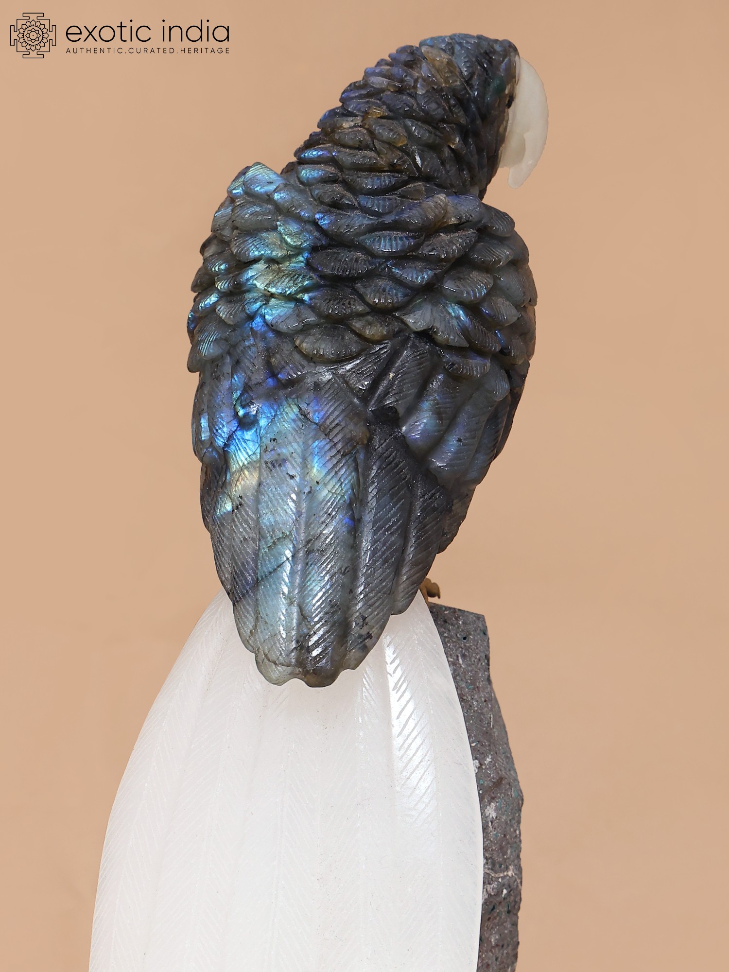 Intricately carved 12-inch parrot statue.
