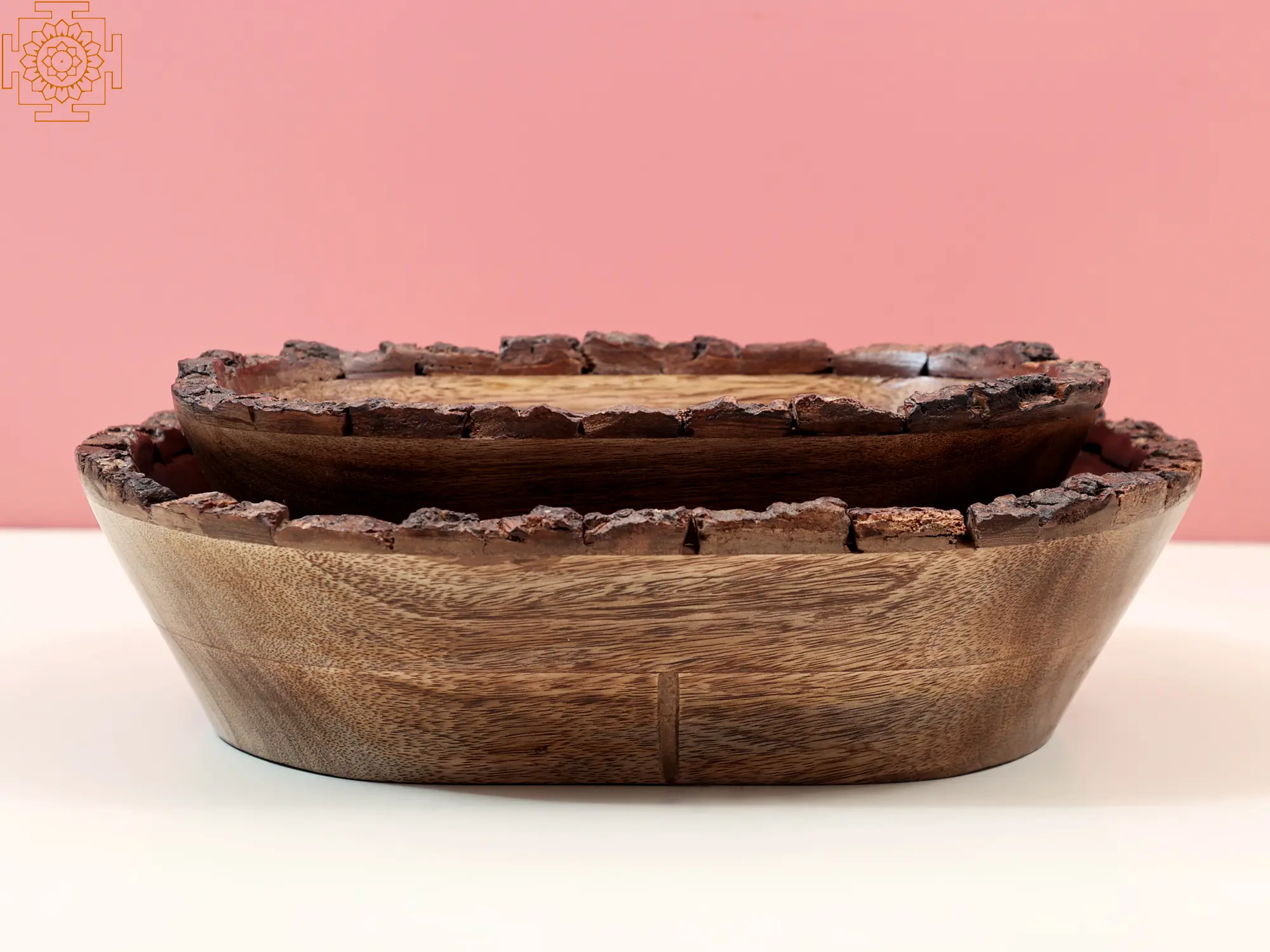 Step into a realm where nature's bounty converges with human ingenuity—the Designer Wooden Oval Shape Bowl. This handcrafted marvel is not just a vessel; it is a testament to the harmonious marriage of form and function. The artisan's precision and passion are evident in every carefully carved contour, transforming a simple wooden bowl into a work of art that exudes sophistication. Place fruits, potpourri, or cherished trinkets within its elegant embrace, and let this bowl be a conversation starter, sparking discussions about the craftsmanship and attention to detail that defines your curated collection.