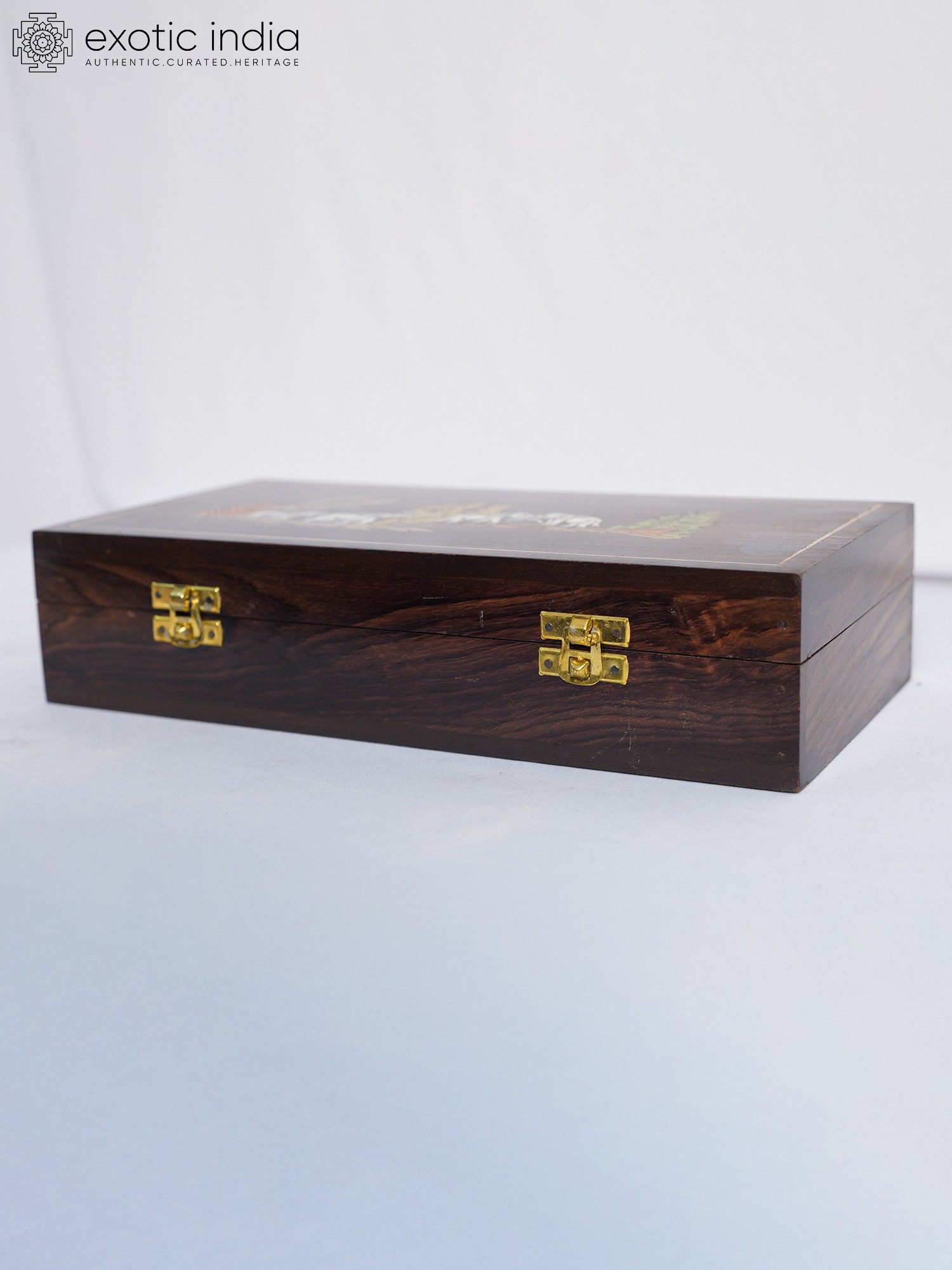 7" Beautiful Leaves Wood Jewellery Box With Inlay Work