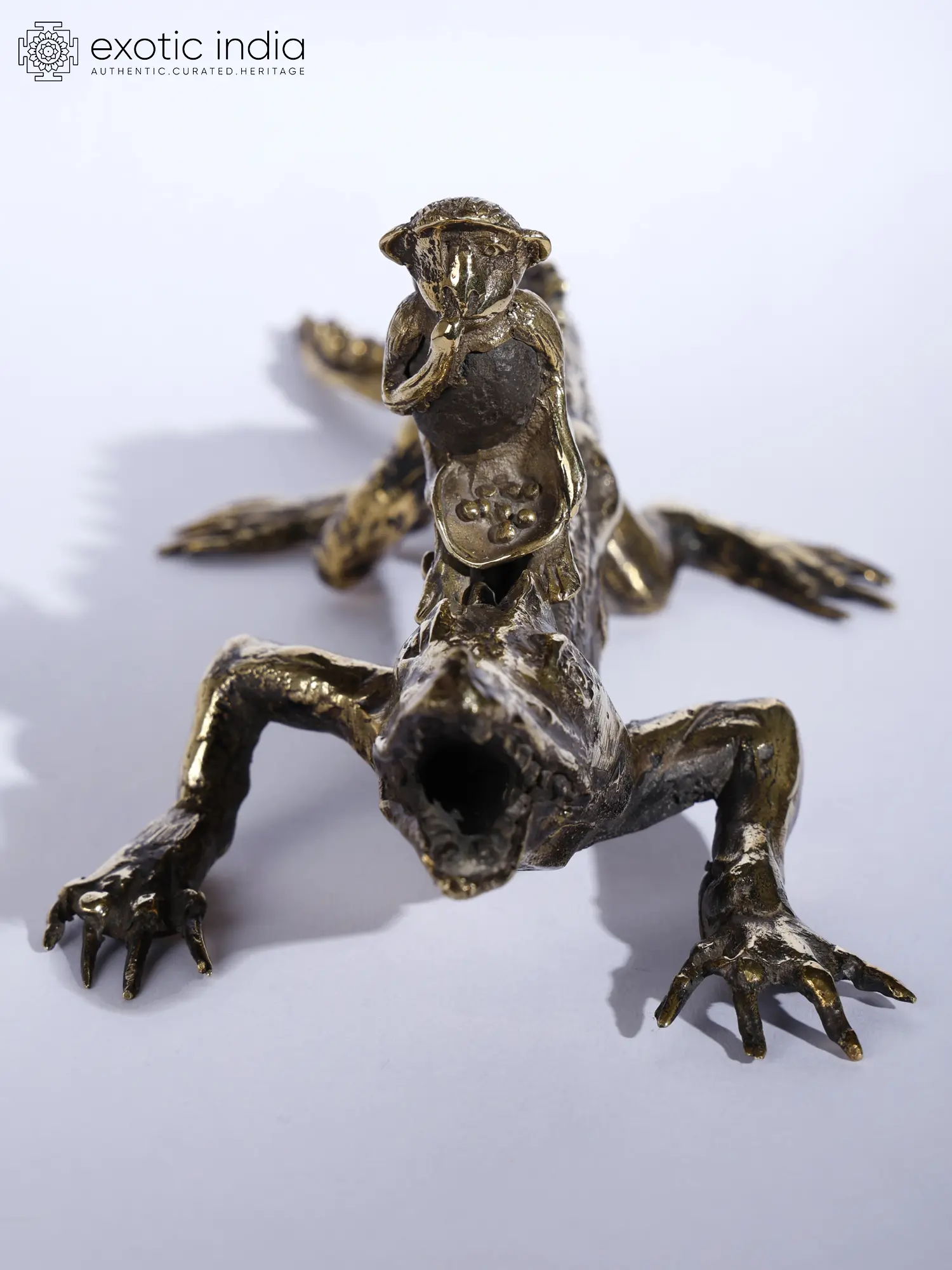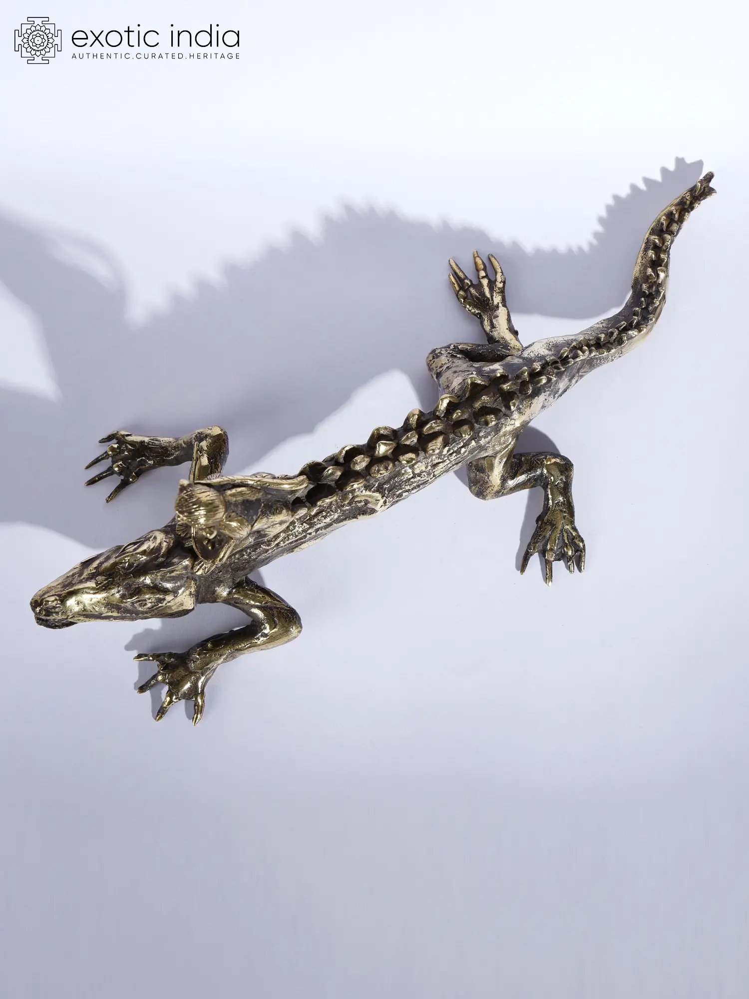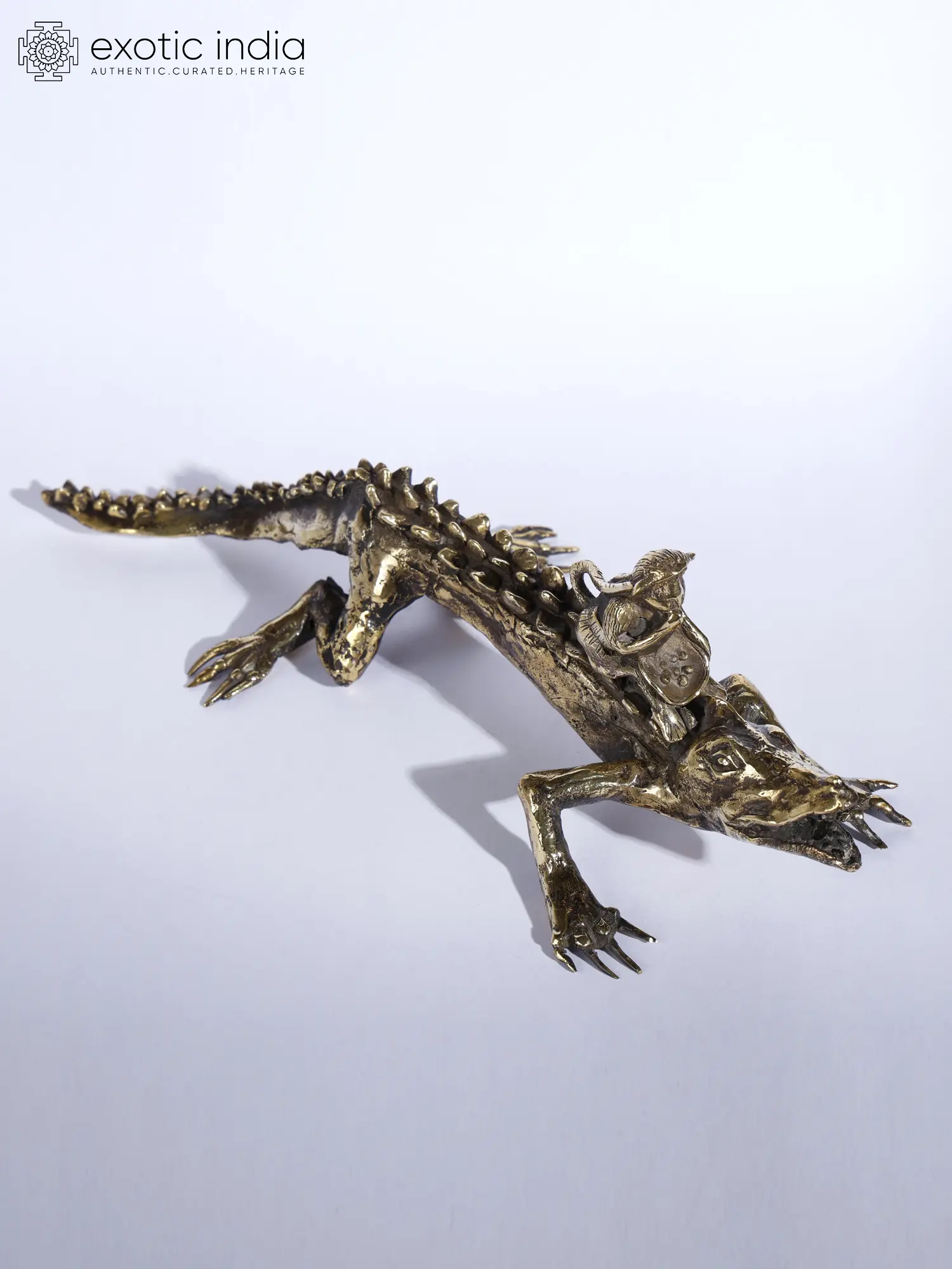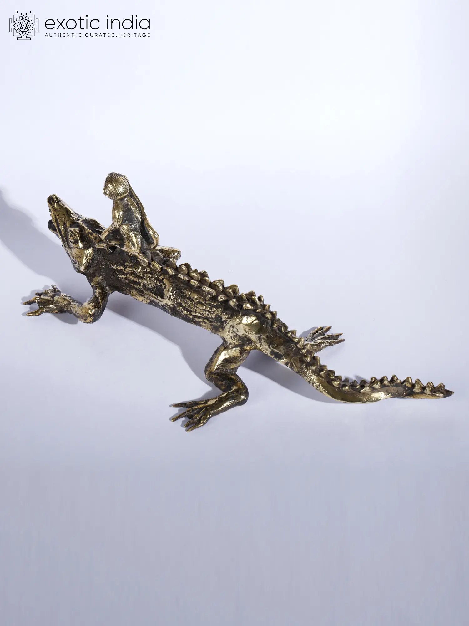 This unique piece of art, crafted from Brass and Stone, brings to life the timeless folk tale of a crocodile carrying a monkey from the Panchatantra, a renowned collection of Indian fables. The skilled use of Brass and Stone imbues the sculpture with a sense of permanence and durability, enhancing its aesthetic appeal and artistic value.