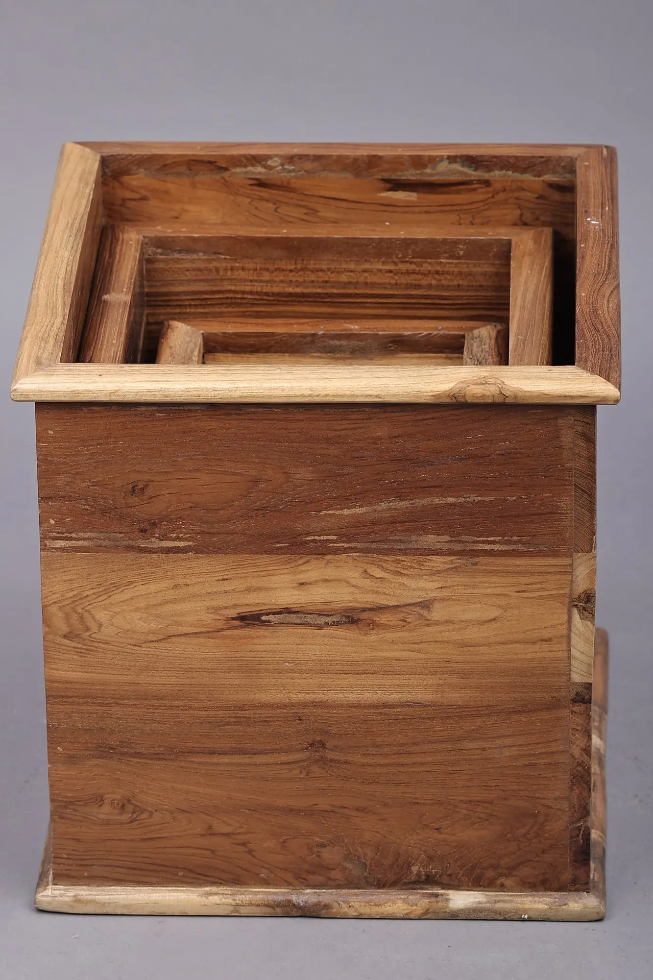 12" Set of Three Wooden Planters | Handmade Wooden Planters | Made in India