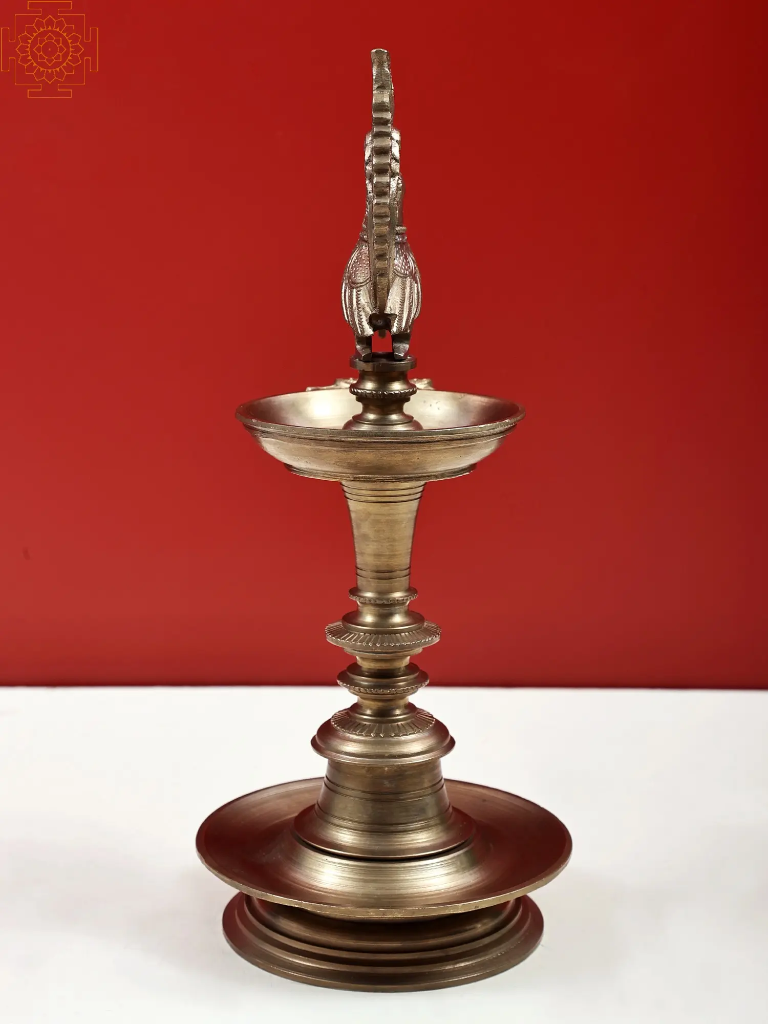 13" Brass Peacock Lamp with Bell | Handmade Annam Lamp