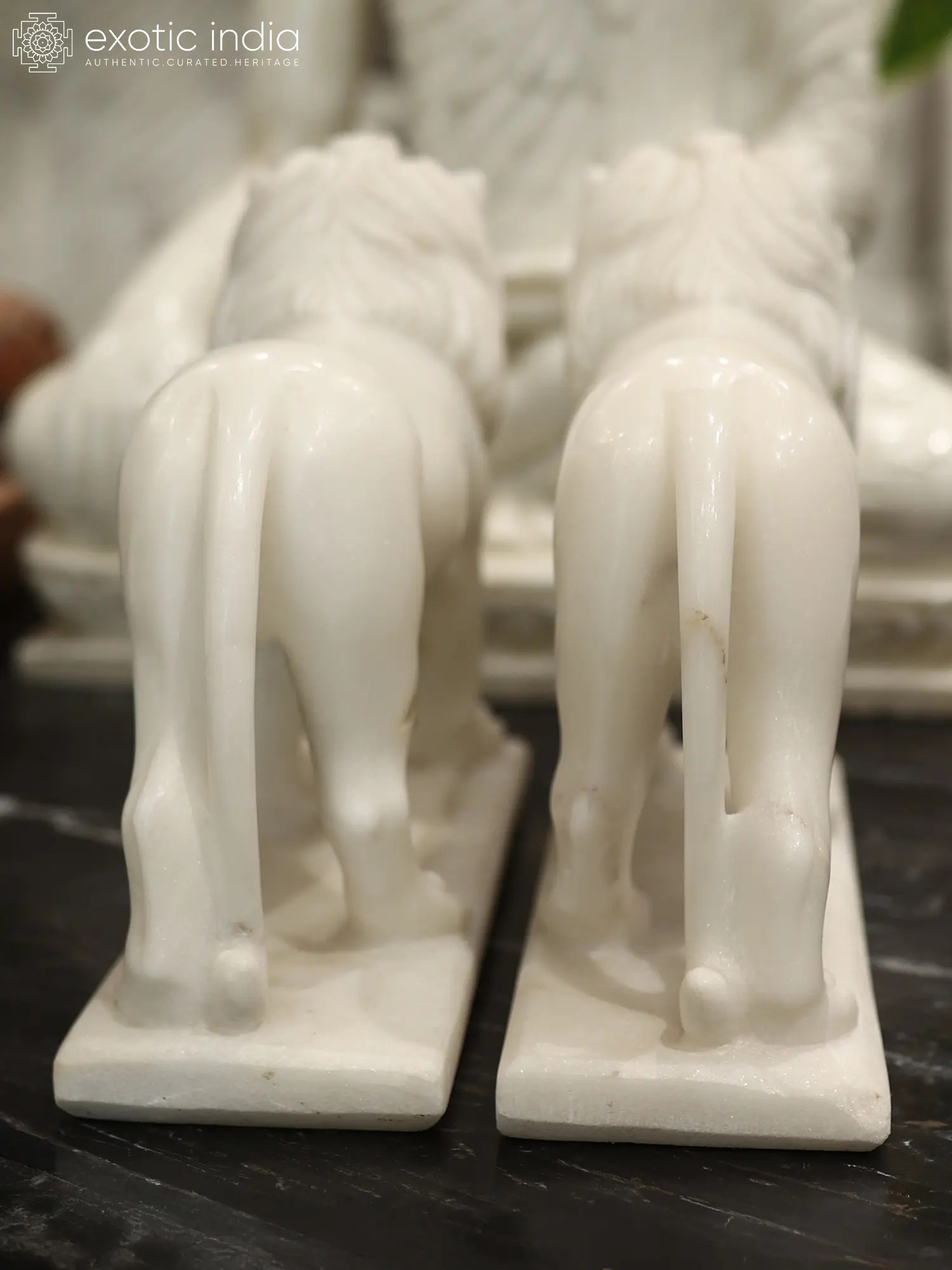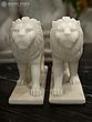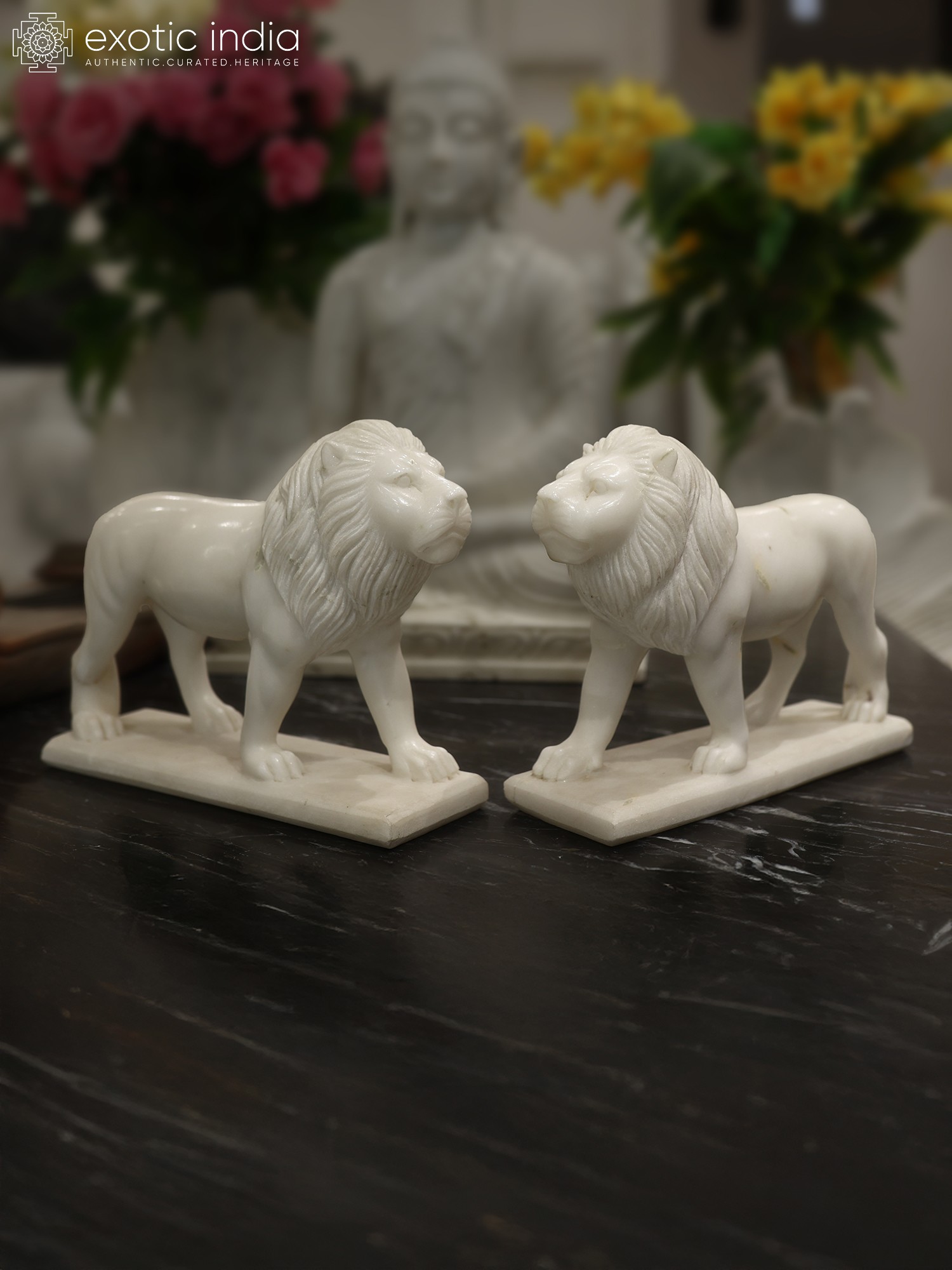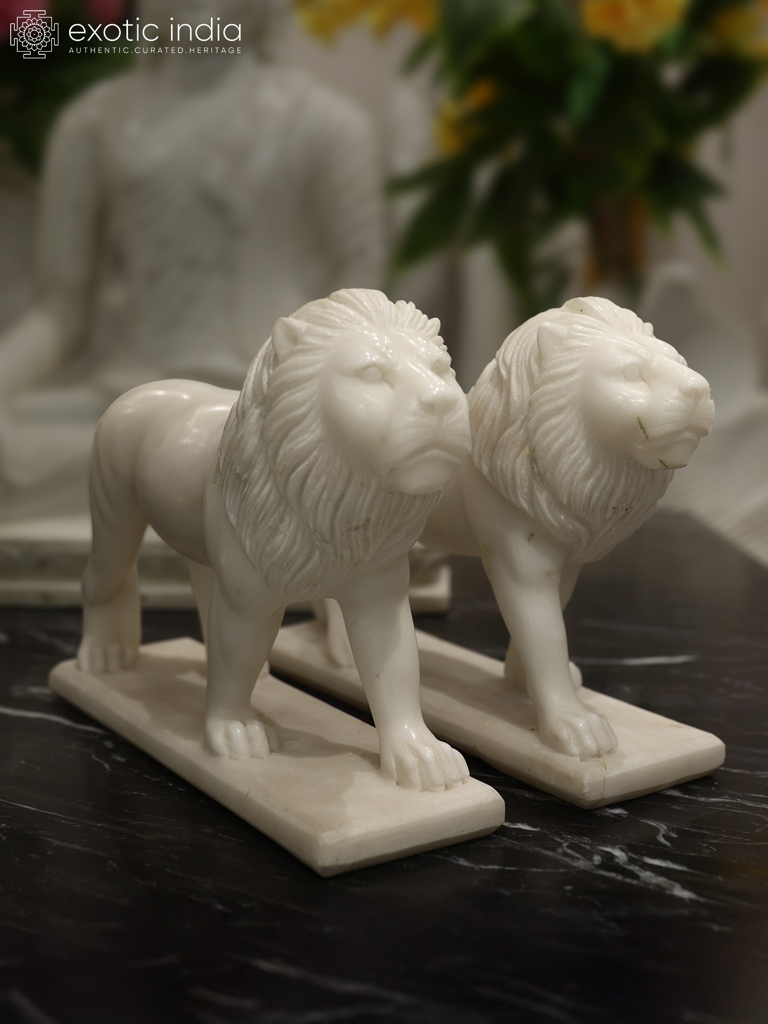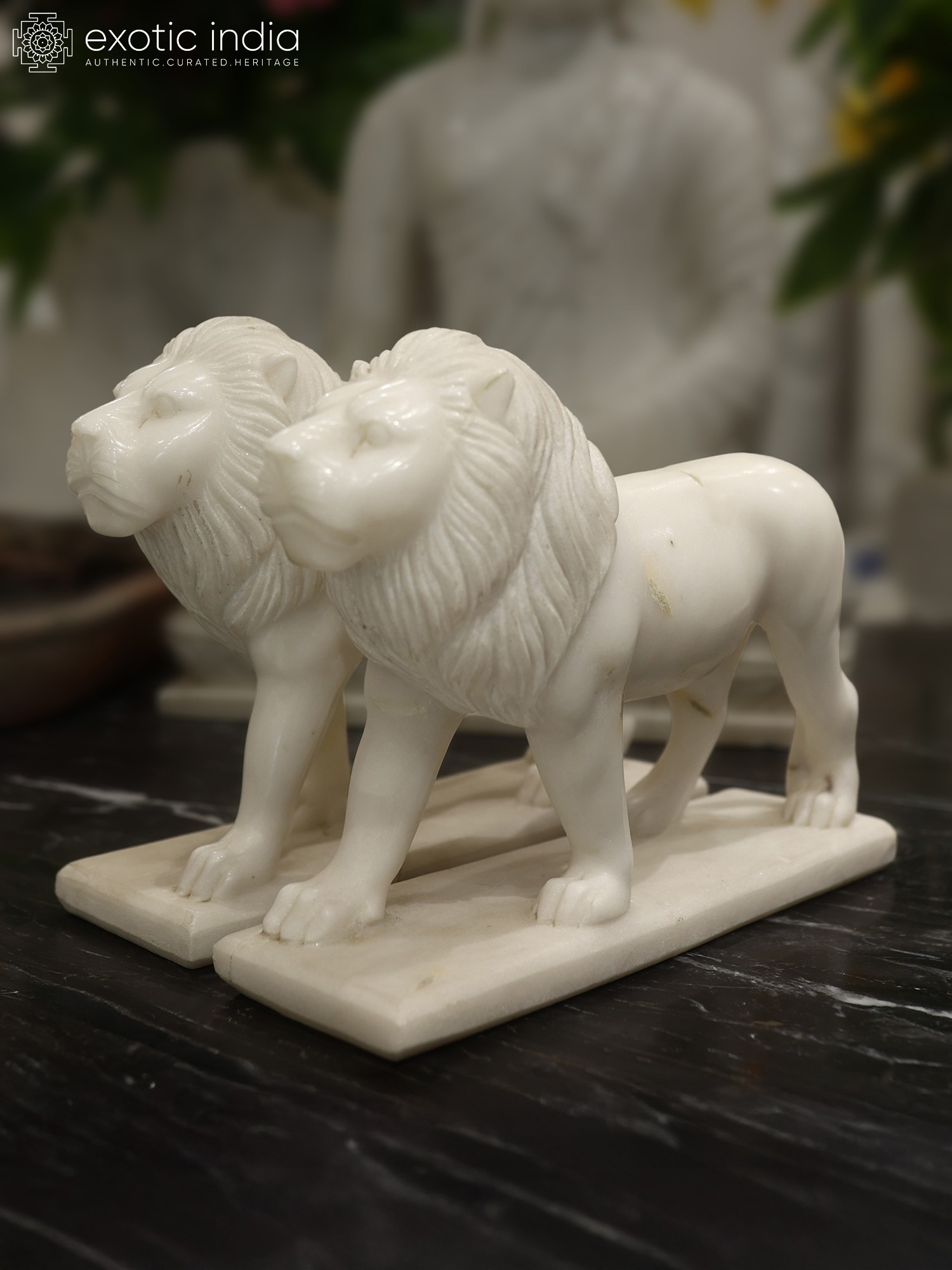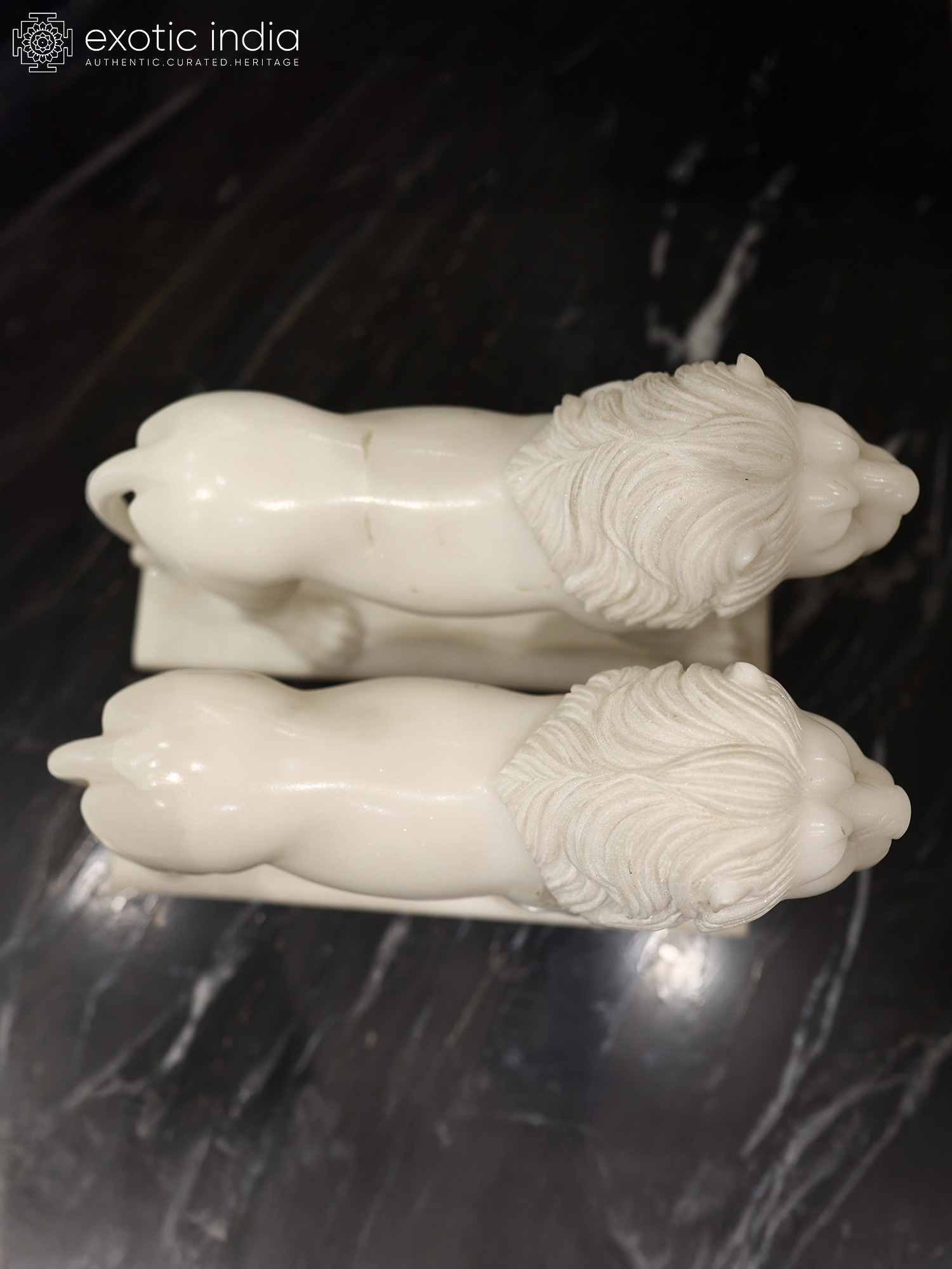 24" Symbol of Strength - Pair Statue of Lion | Home Decor | White Marble | Exquisite Indian Art