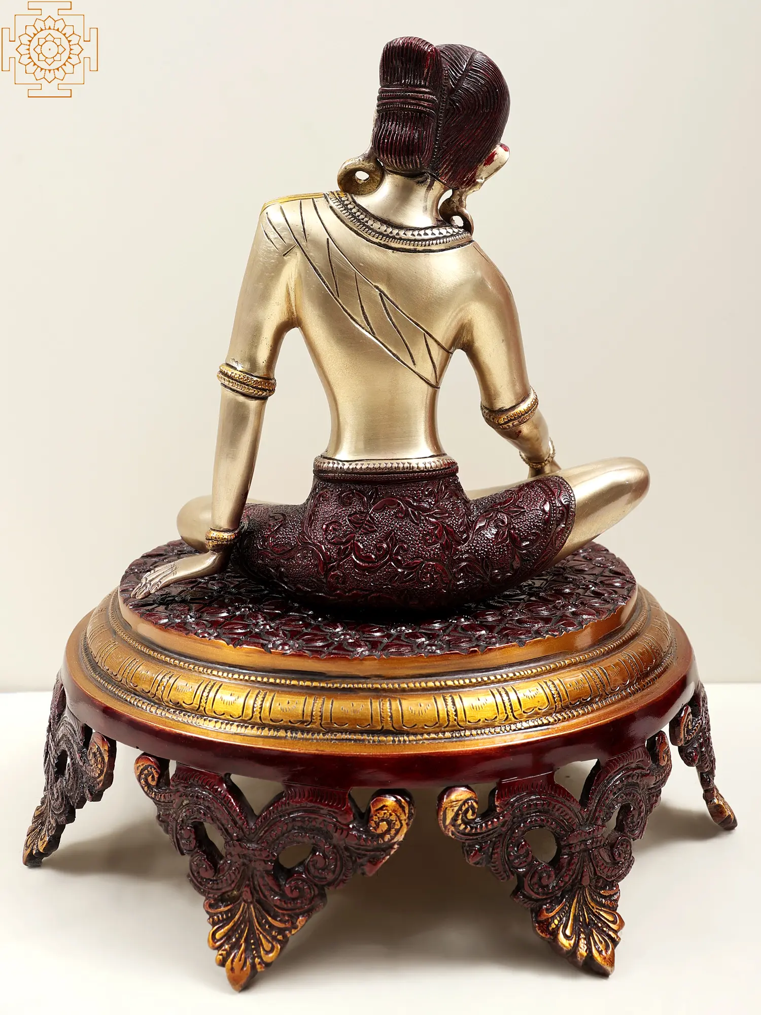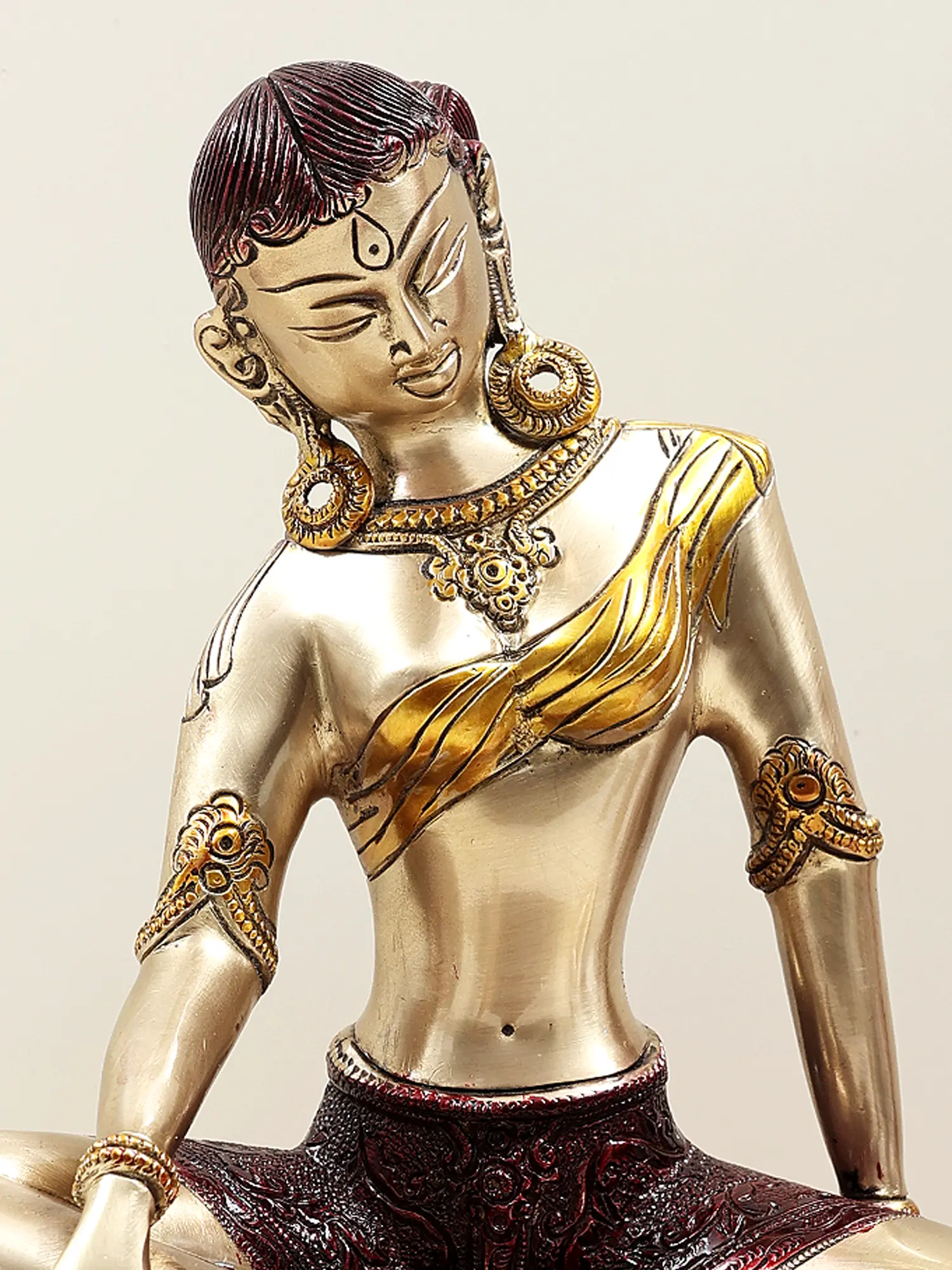 It is said that Goddess Green Tara is the deity of compassion. She works day and night to alleviate suffering. This Handmade Tibetan Buddhist Deity Green Tara with Pedestal is a true tribute to her compassionate image. She is shown in a plain shape with no embellishment. She sits calmly in the traditional iconography depicting her in the Lalit Asana. The precise craftsmanship and brilliant tones of typical brass with dark brown lacquer paint give the statue a striking appearance. She is portrayed wearing very little jewelry and merely a dhoti and an uttari on her body. Whether as a spiritual centerpiece or a decorative accent, this artisanal creation not only honors Tibetan traditions but also radiates an aura of tranquility, inviting contemplation and mindfulness into your surroundings.
