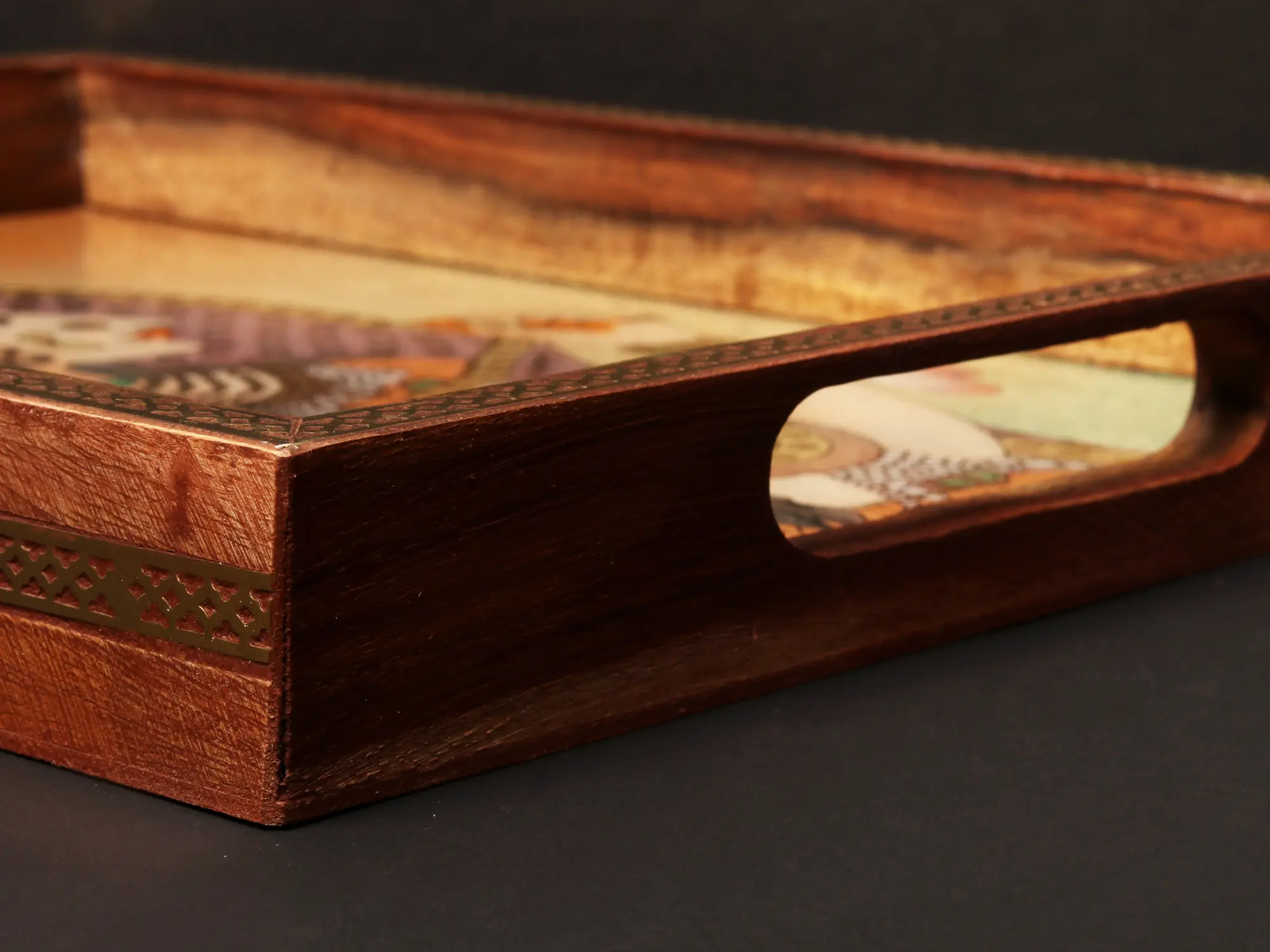 Behold the timeless allure of Bani Thani—the Indian Mona Lisa. This wooden tray captures her essence—the elongated features, the almond-shaped eyes, and the delicate jewellery that graces her neck. As you serve fragrant masala chai or arrange fresh flowers, let her gaze transport you to a world of poetry and passion. The intricate brushstrokes celebrate femininity—the delicate curve of her lips, the intricate patterns of her attire. Place it on your coffee table, and let it be a conversation starter—an invitation to explore art, culture, and the enigma of beauty.