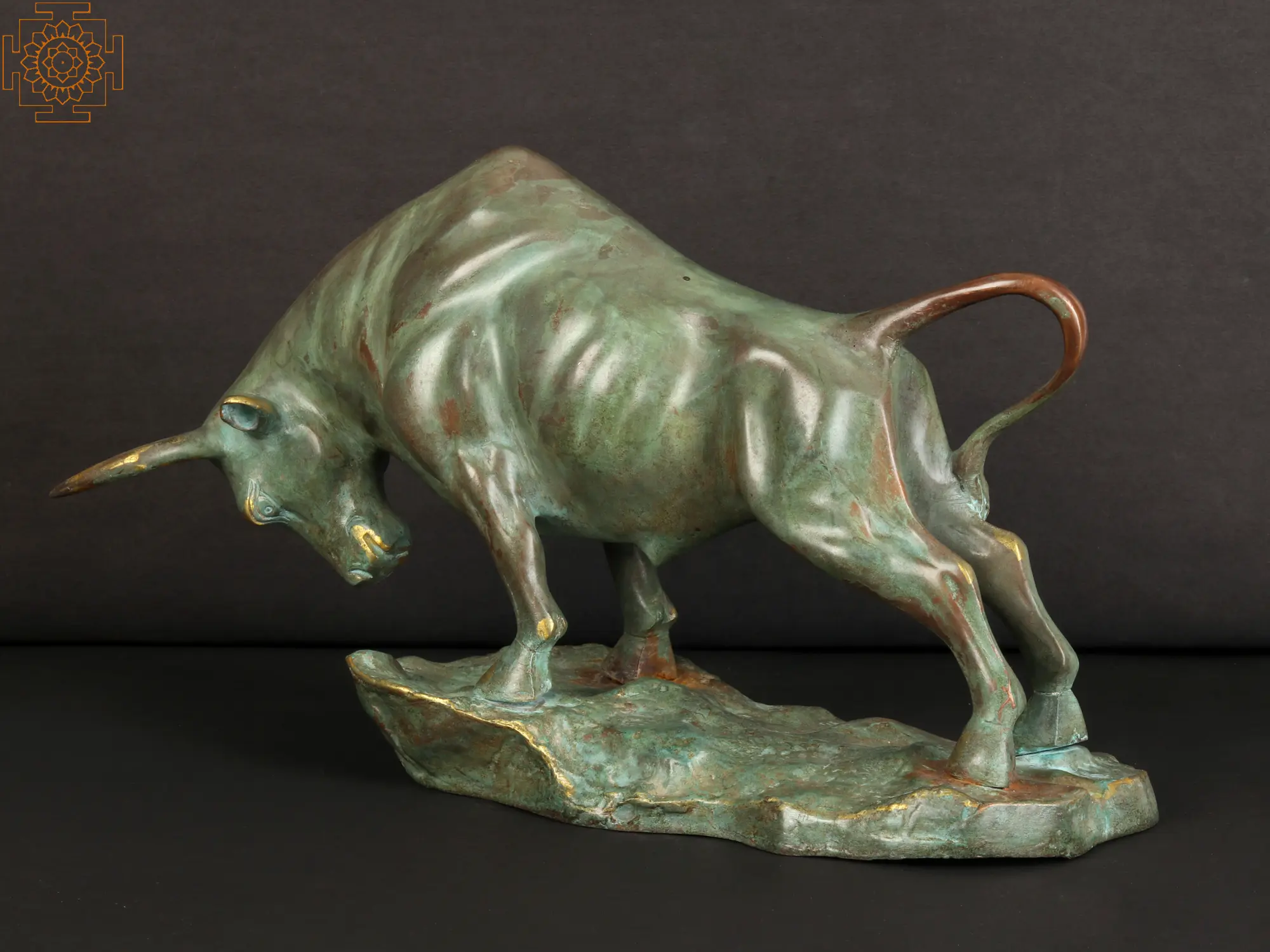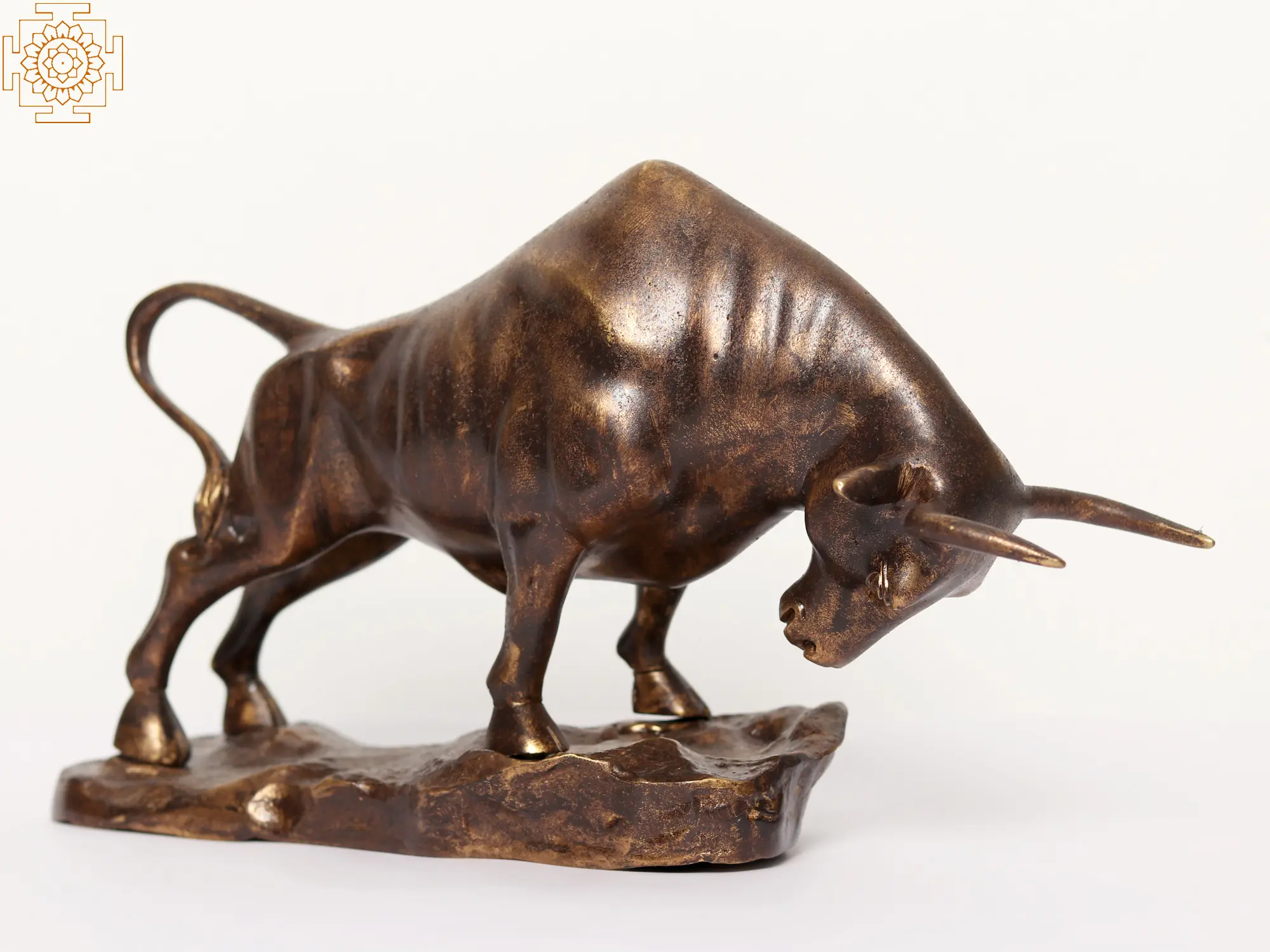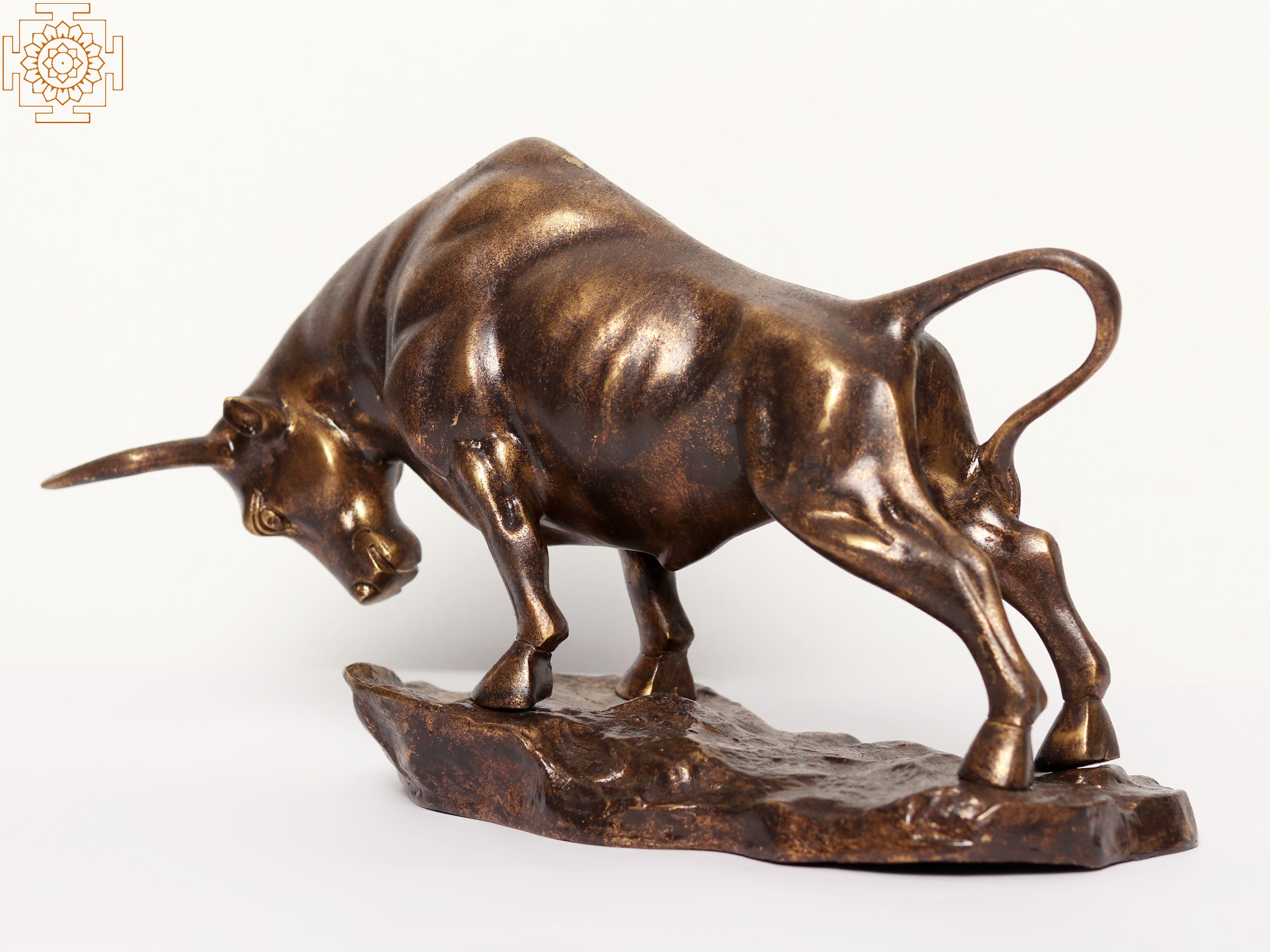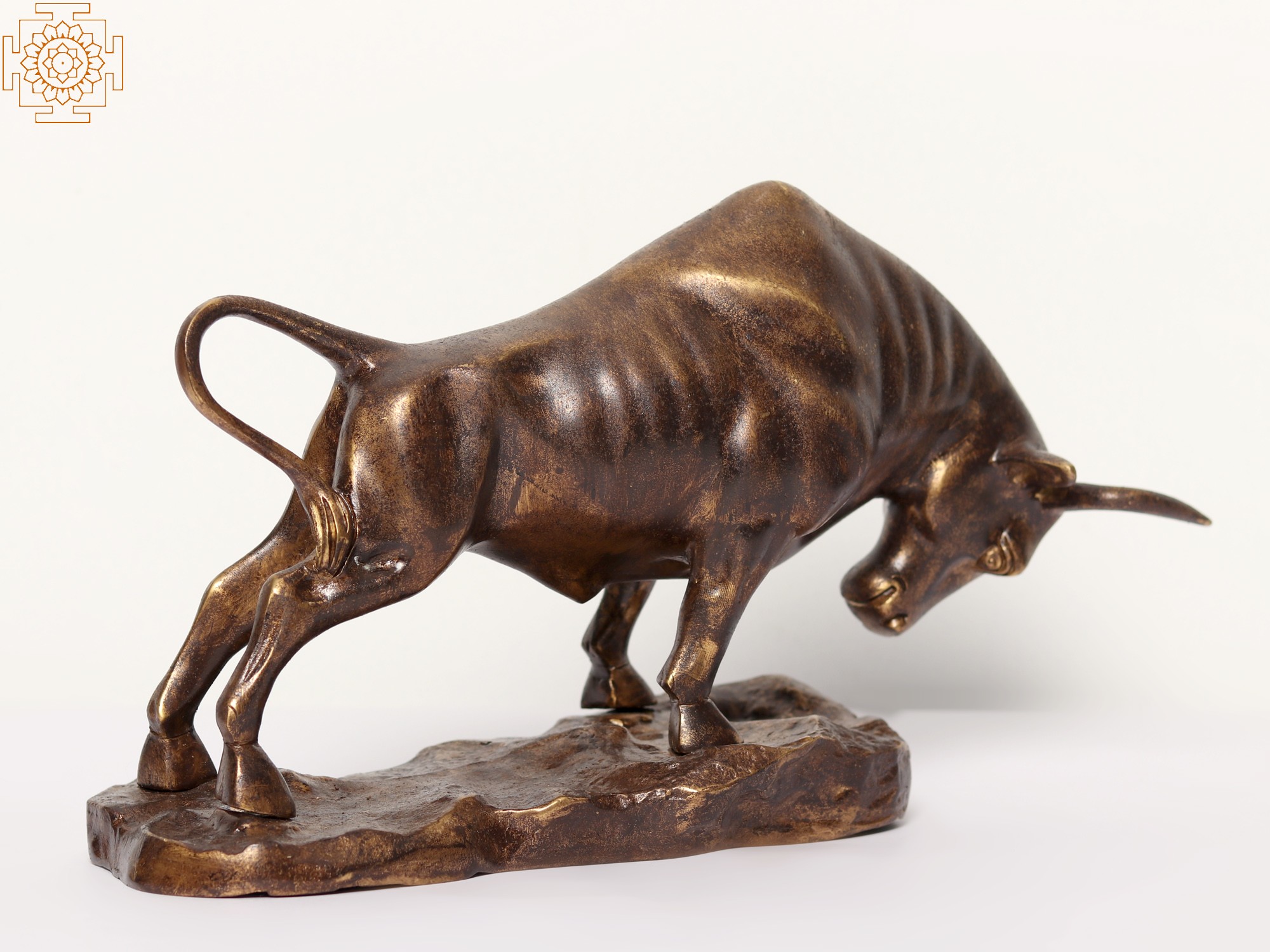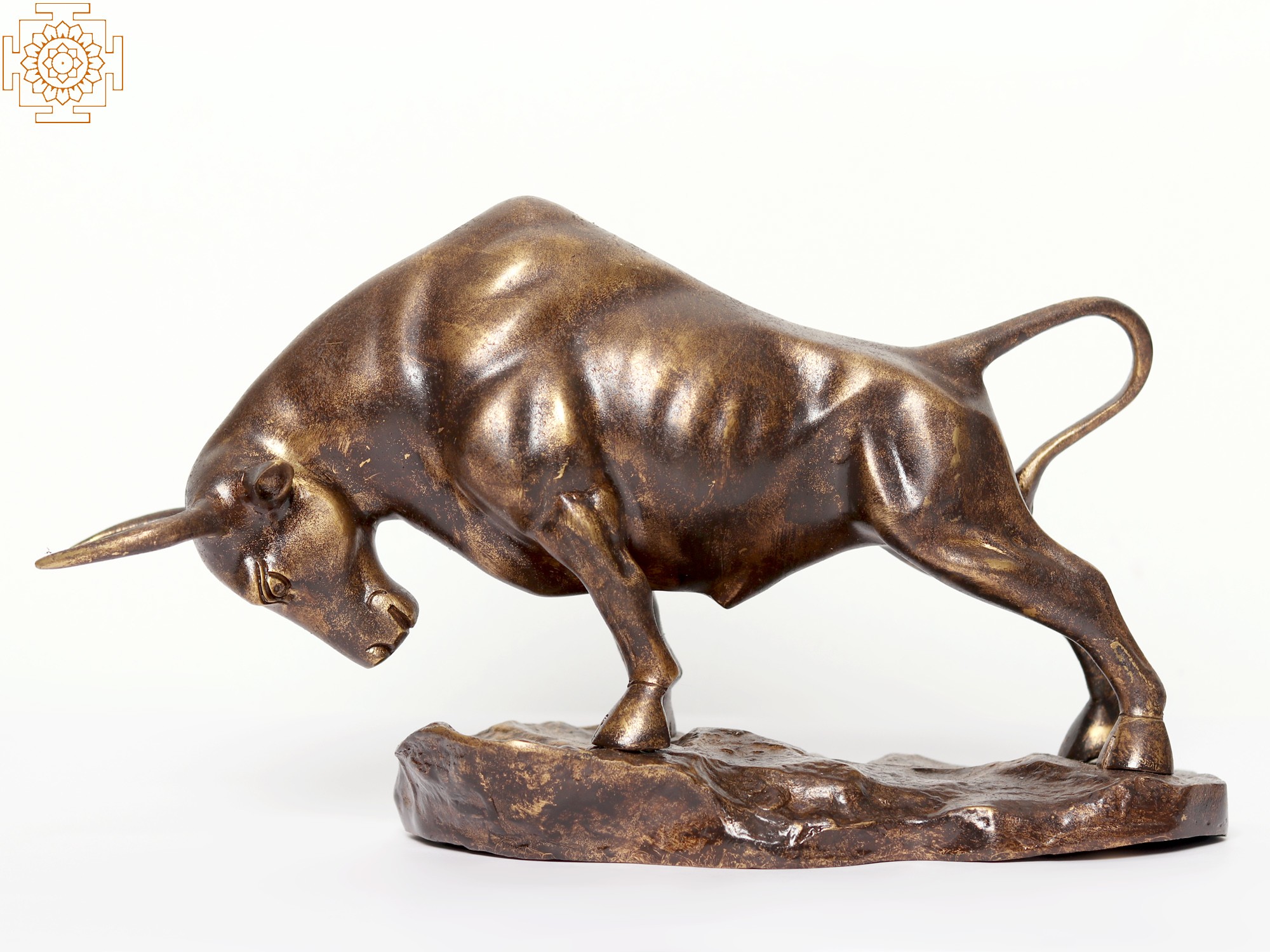 The attacking angry bull statue crafted in brass is a depiction of relentless determination and focused aggression. This piece of art signifies the significance of wholeheartedly pursuing a target with unwavering dedication. The bull, with its fierce expression and downward gaze, exudes a potent sense of intensity and readiness to charge. It serves as a reminder that true achievement often requires a combination of unwavering focus, bold action, and the courage to confront challenges head-on. The statue embodies the philosophy that success comes to those who approach their goals with fierce determination and a willingness to confront obstacles with unwavering resolve.