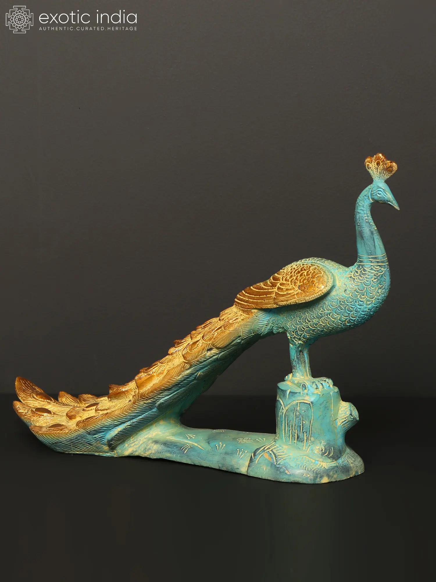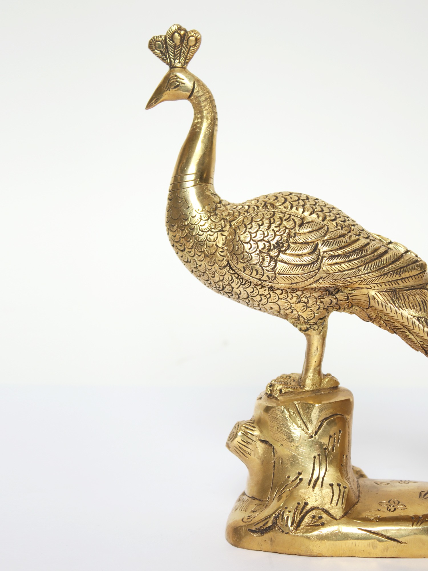 Peacock has always been associated with opulence and wealth. Millions of depictions include the green and blue hues of the animal feather. Many gods and goddesses use peacock feathers as part of their ornamnetation. The animal is also associated with Lord Murugan, Lord Ganesha, and Devi Saraswati. It is considered auspicious by worshippers of these deities to keep a peacock statue at home. This brass figure is the ideal response to these sentiments. This statue, which depicts a lovely peacock with arranged feathers, combines opulence with holiness in one place.
