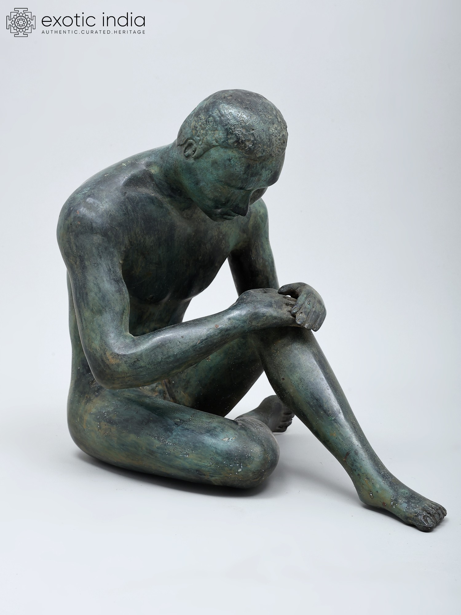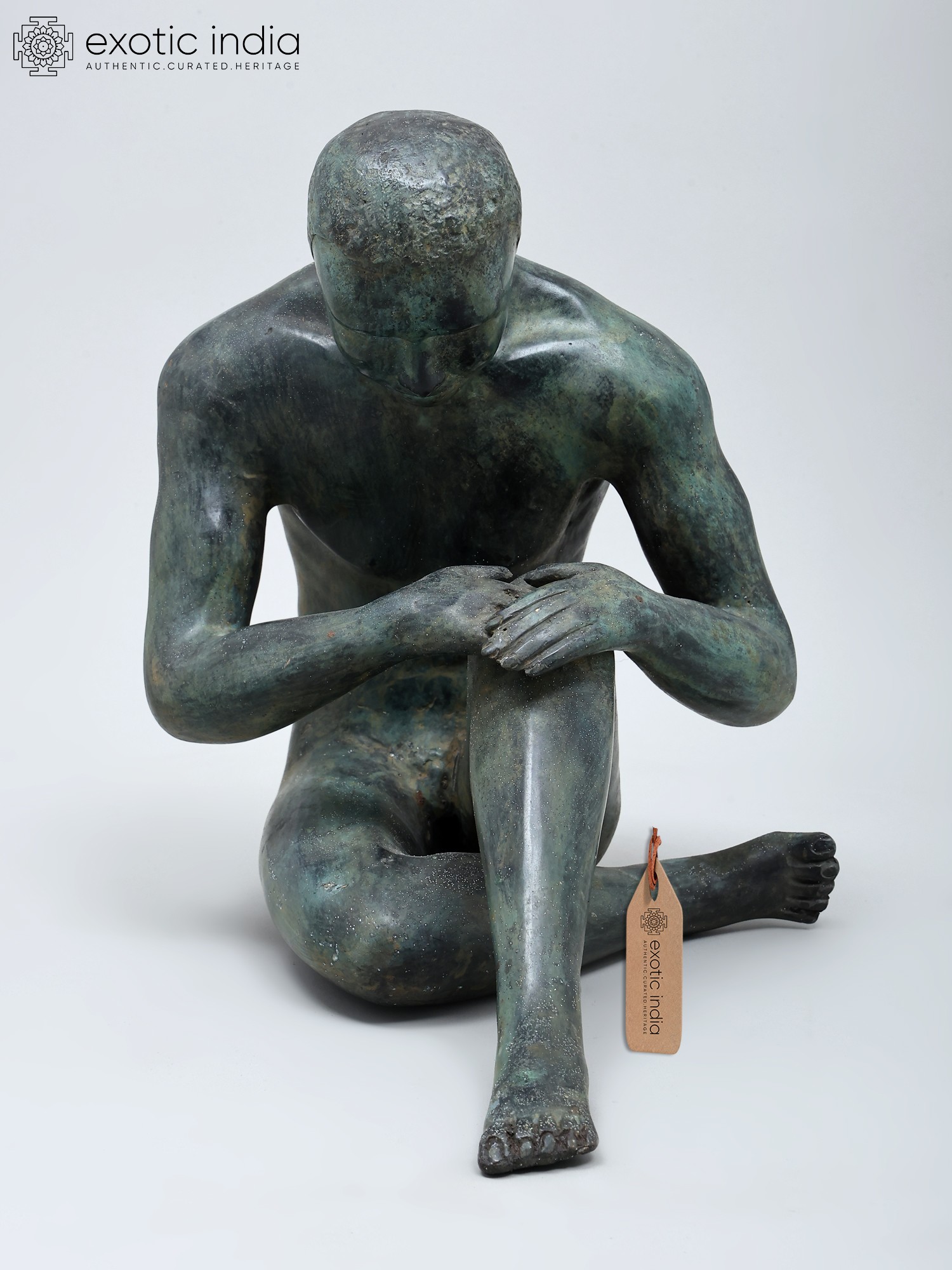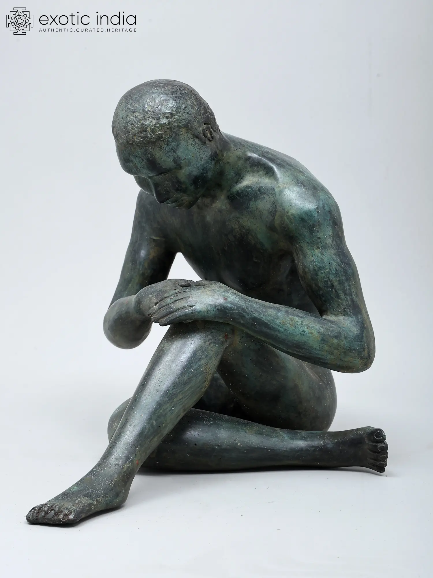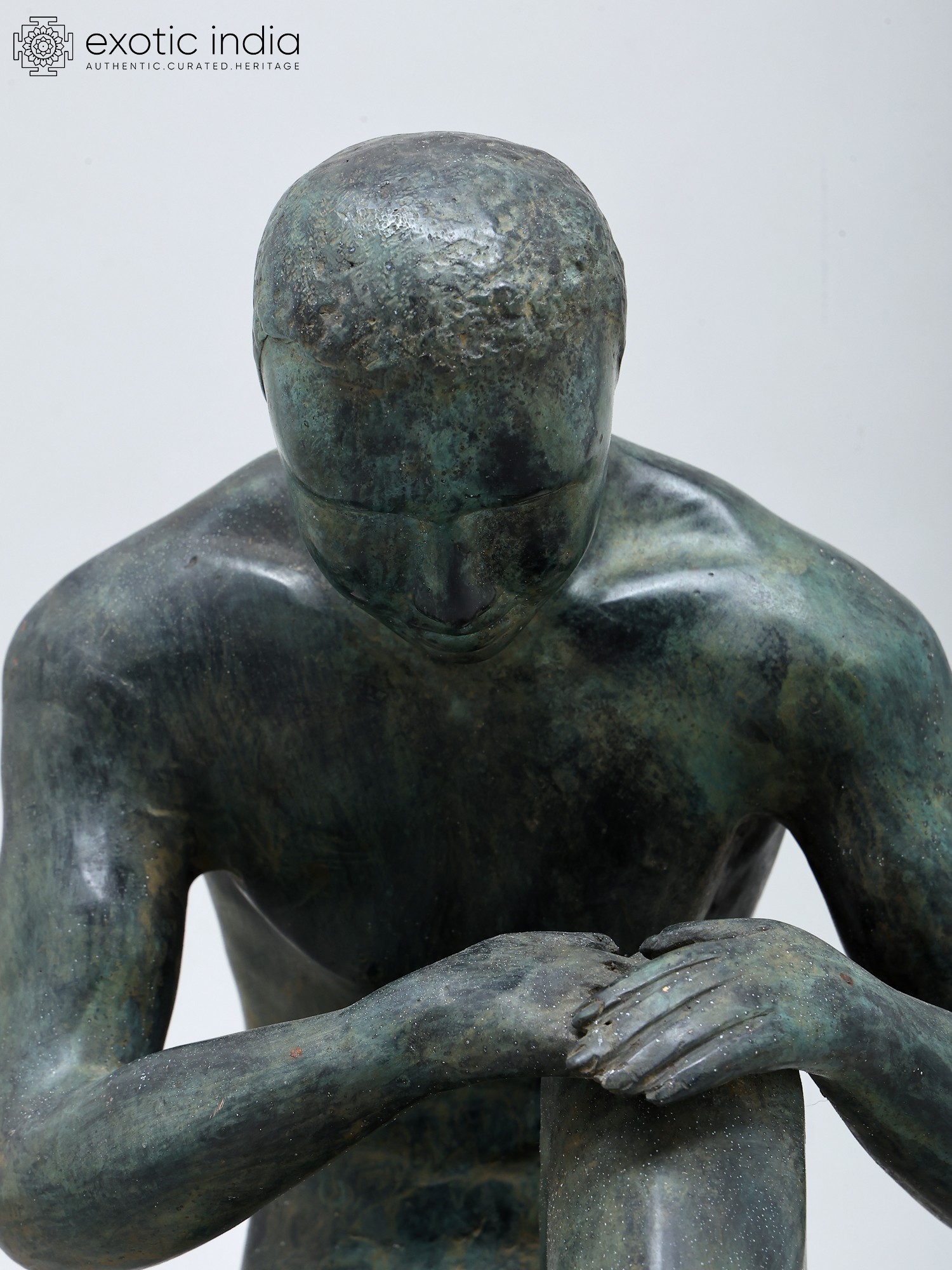 12" Stylized Thinking Man | Brass Statue | Table Decor