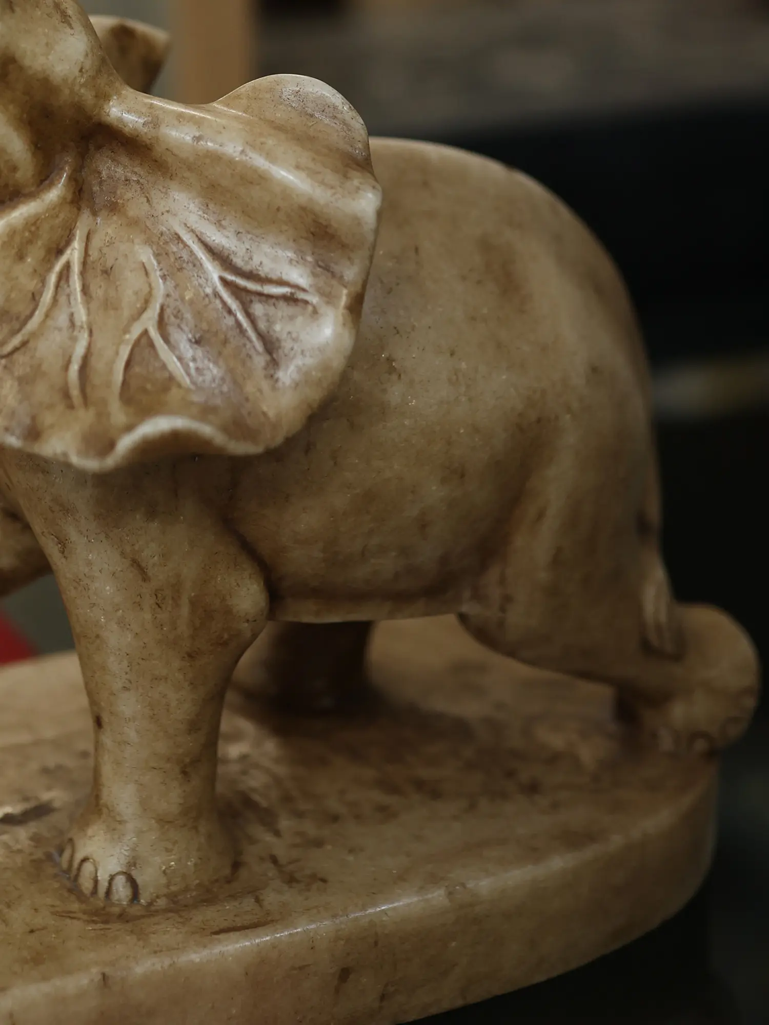 The elephant has long been revered across cultures as a symbol of wisdom, strength, and good luck. In many traditions, its presence is believed to ward off negativity and attract prosperity. This particular rendition, with its uplifted trunk, further amplifies these auspicious connotations, making it a cherished addition to any spiritual or decorative collection.
