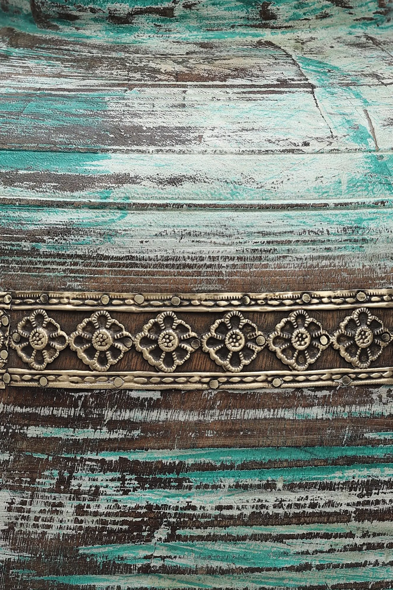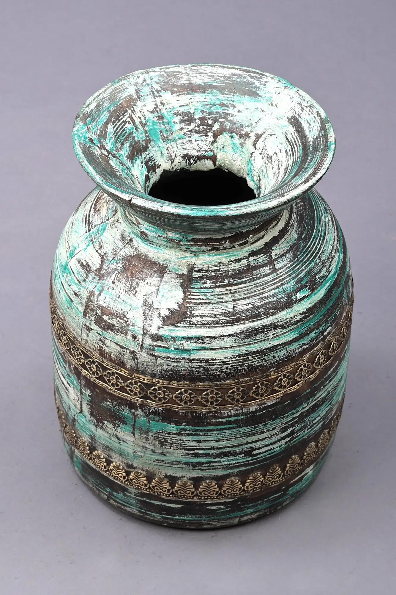 This flower pot might look unusual, but it is unique and superbly attractive. The blue rust finish on the vase's surface resembles the textured Mount Kailasa. The pot carrying the elegant cobalt blue color is a treat to the eyes as it soothes the soul. Its unique beauty lies in the uneven polish and deformations here and there. The brass emboss work on the neck and base allows the piece to capture an elegant look that also looks regal. The silver finish of the brass and the cobalt blue complement each other and don't look distant. This piece is the most unique and beautiful addition to the home decor that can elevate the look of the area manifolds.