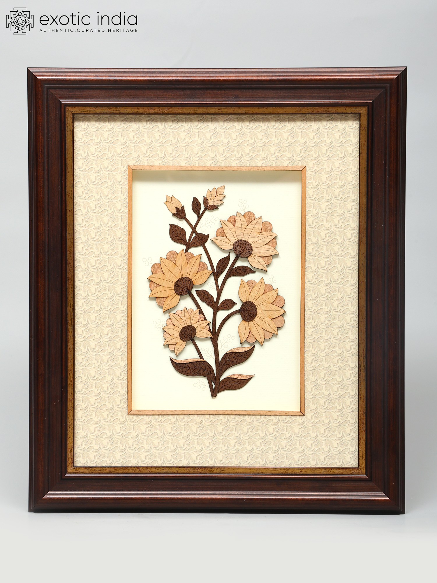 This artwork showcases the skill and dedication of the artisans who created it. It is crafted with precision, ensuring that every detail is rendered with care. The wood carving technique allows for a level of intricacy that captures the essence of the floral design. The frame is made of solid wood, with a rich, dark finish that complements the natural tones of the floral arrangement. The frame adds a touch of sophistication and protects the artwork while enhancing its overall presentation.