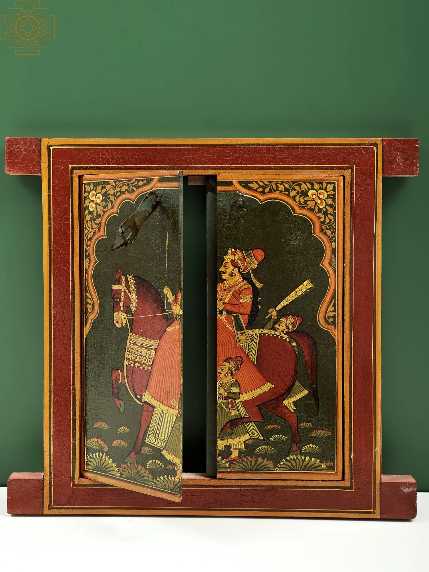 17" Hand Painted King on Wooden Window (Jharokha) With Mirror