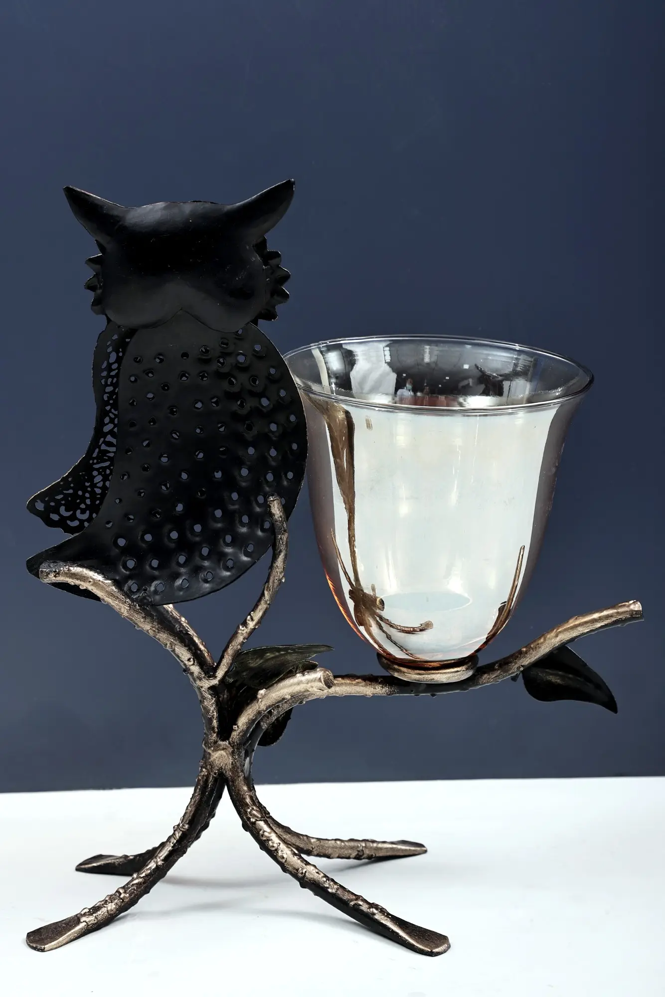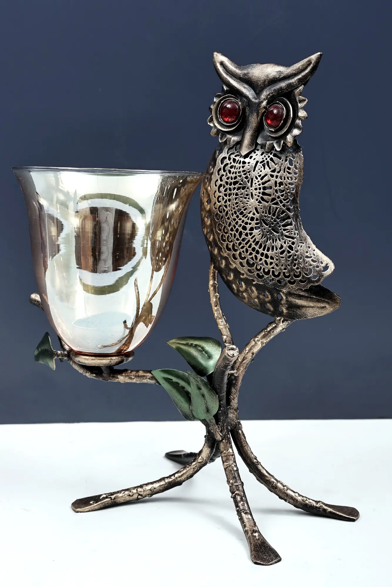 Bring a touch of wisdom and whimsy to your decor with our Owl Candle Stand. This handmade piece is not just a candle holder; it's a delightful fusion of art and functionality. Handcrafted with care, the owl design adds a playful and charming element to your space. The intricate details showcase the skill of our artisans, creating a unique and eye-catching candle stand. Place it on your table or mantel, and let the warm glow of the candles accentuate the personality of this handmade owl candle stand.