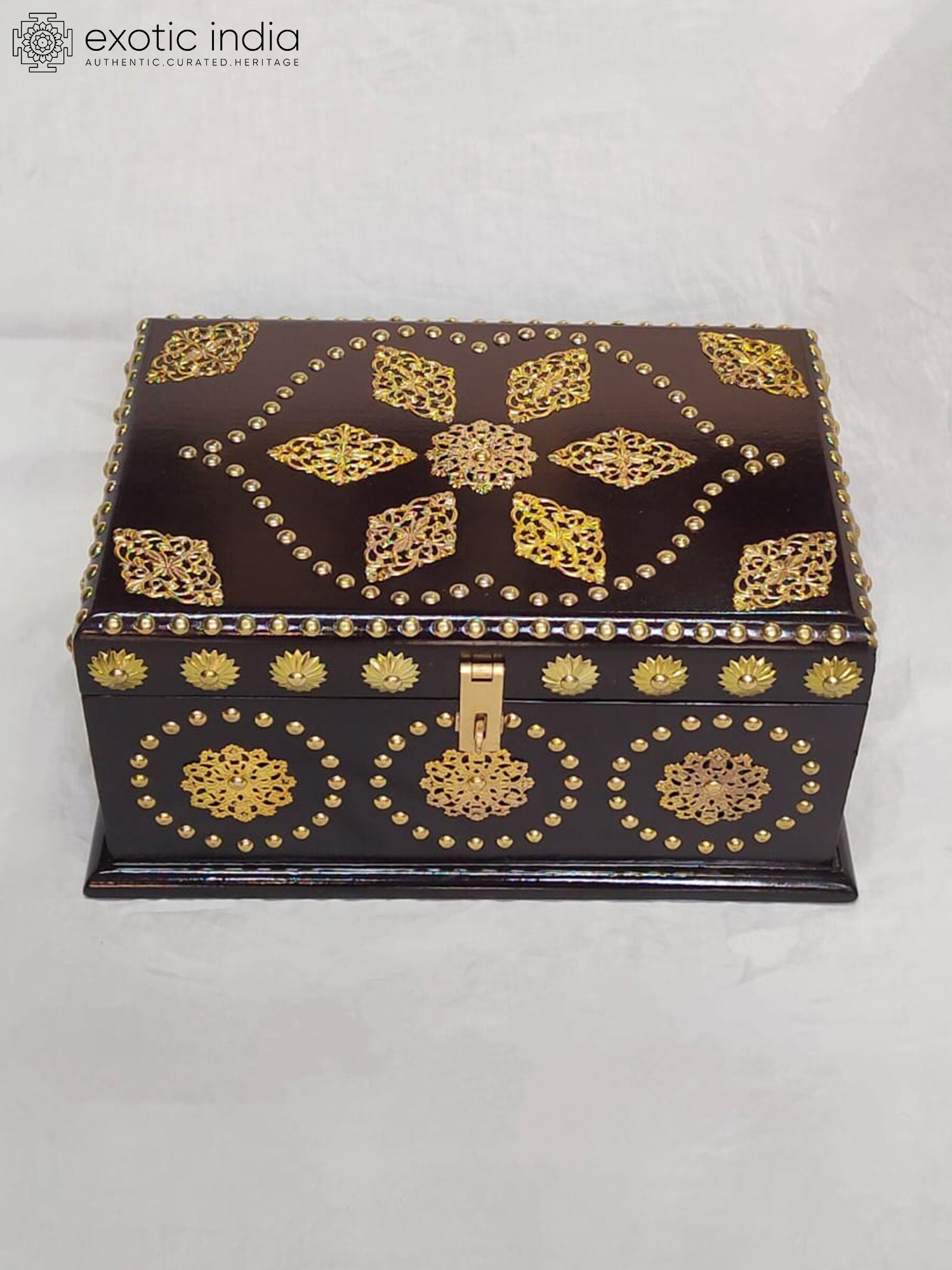 19" Hand-Painted Jewelry Box with Lock from Kashmir