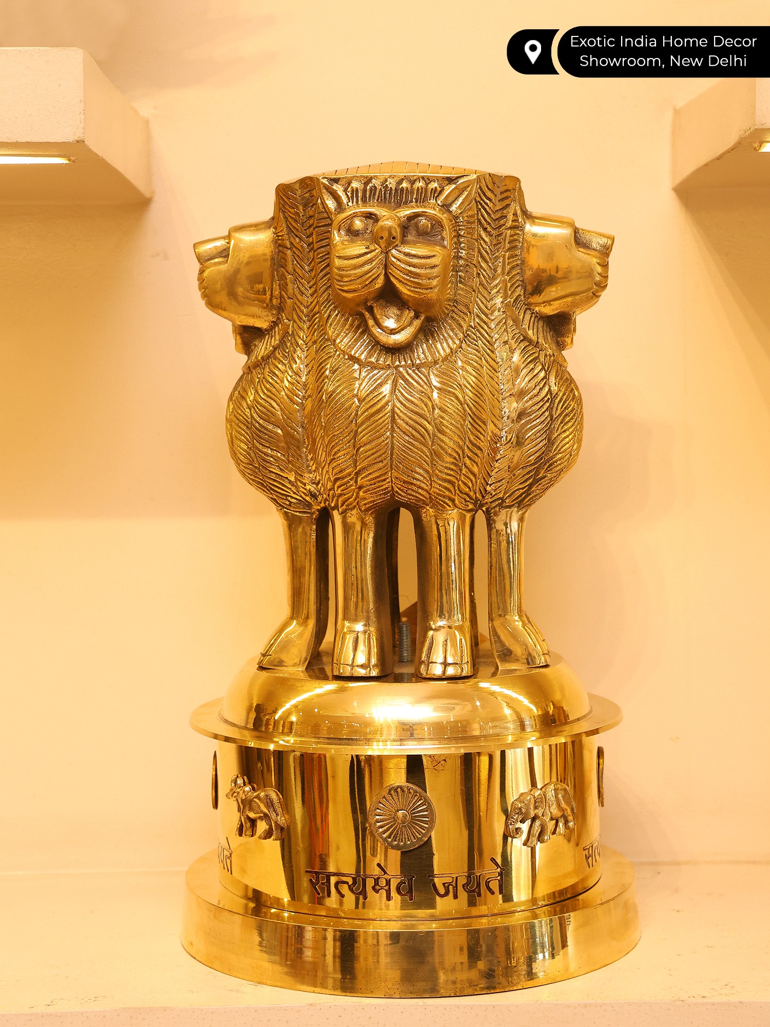 18" Black and Golden Ashoka Pillar/Stambh | Satyameva Jayate | Table Decor