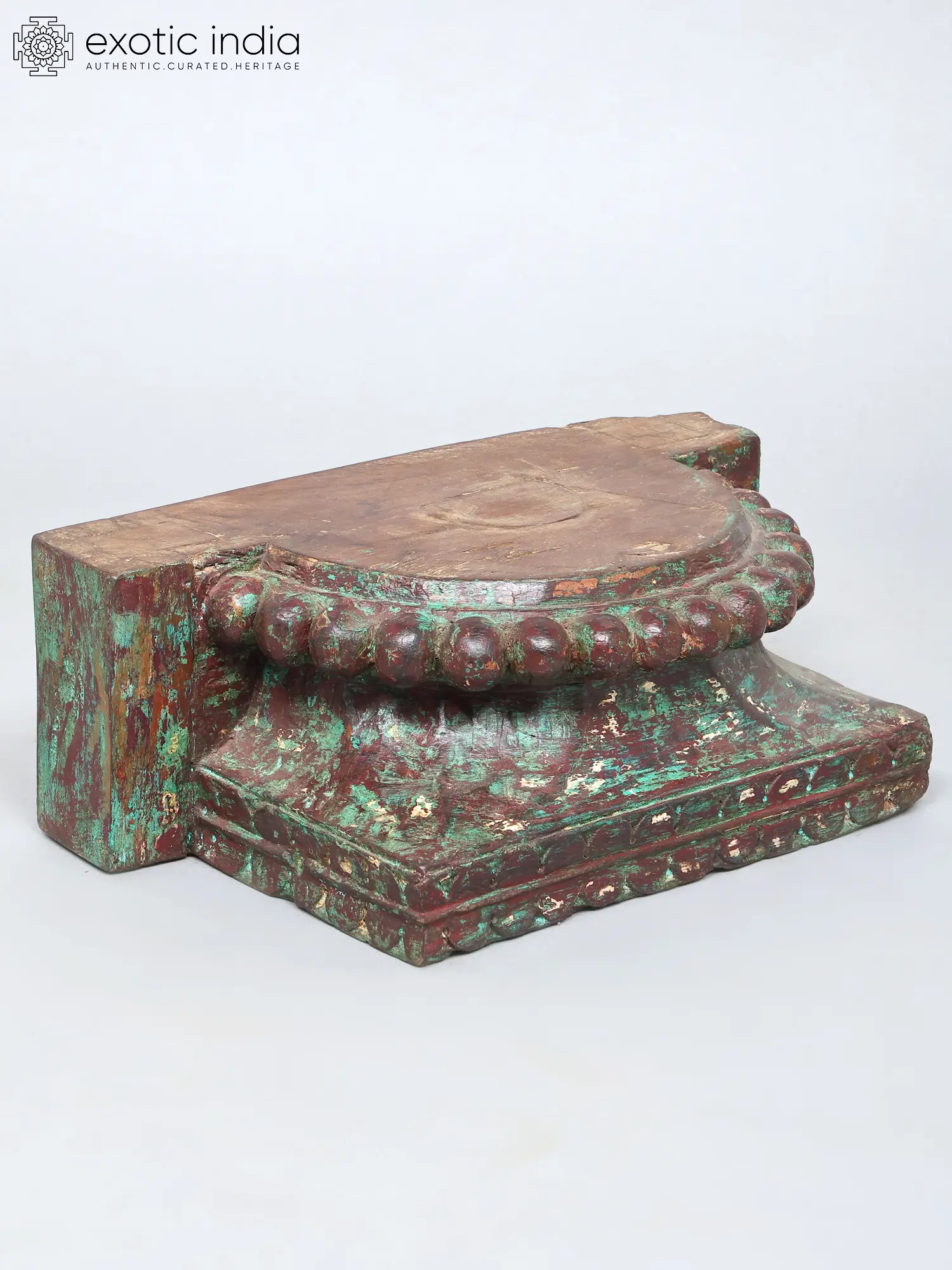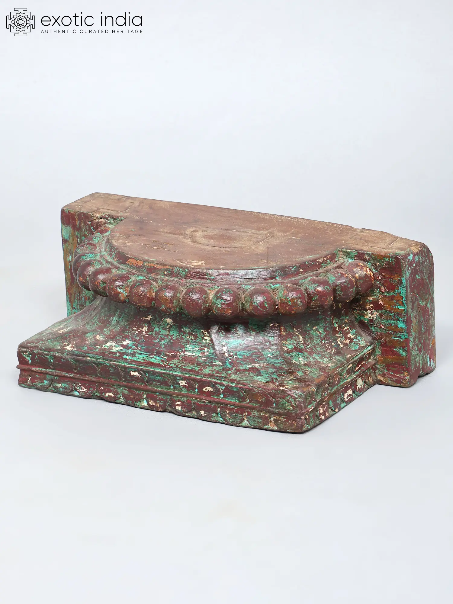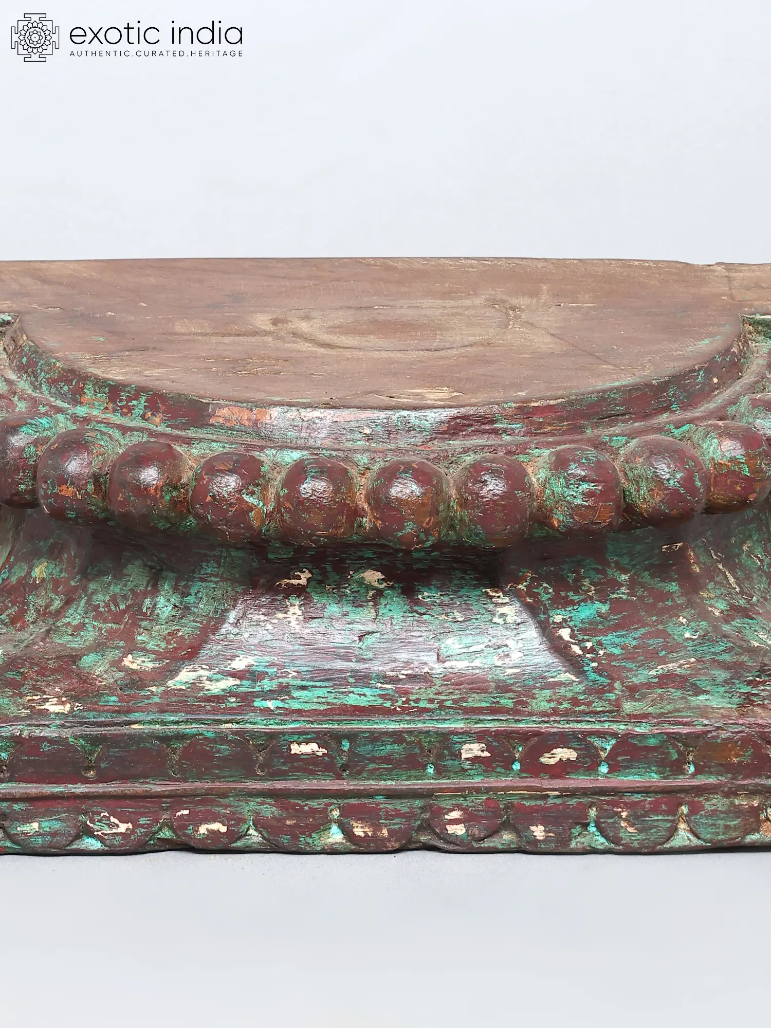 15" Floral Inlaid Designer Marble Pedestal (Chowki) with Brass Base