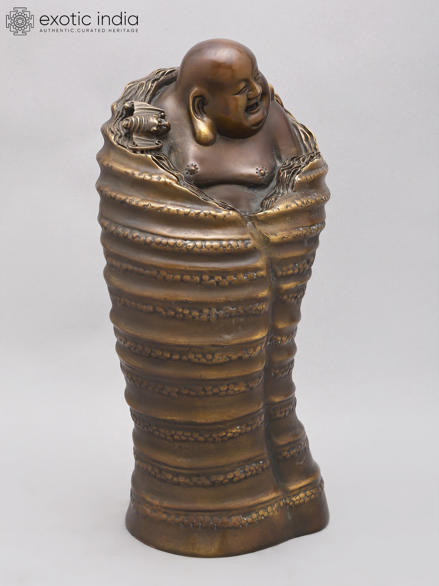 14" Handcrafted Laughing Buddha Emerging from Fortune Sack | Bronze Statue