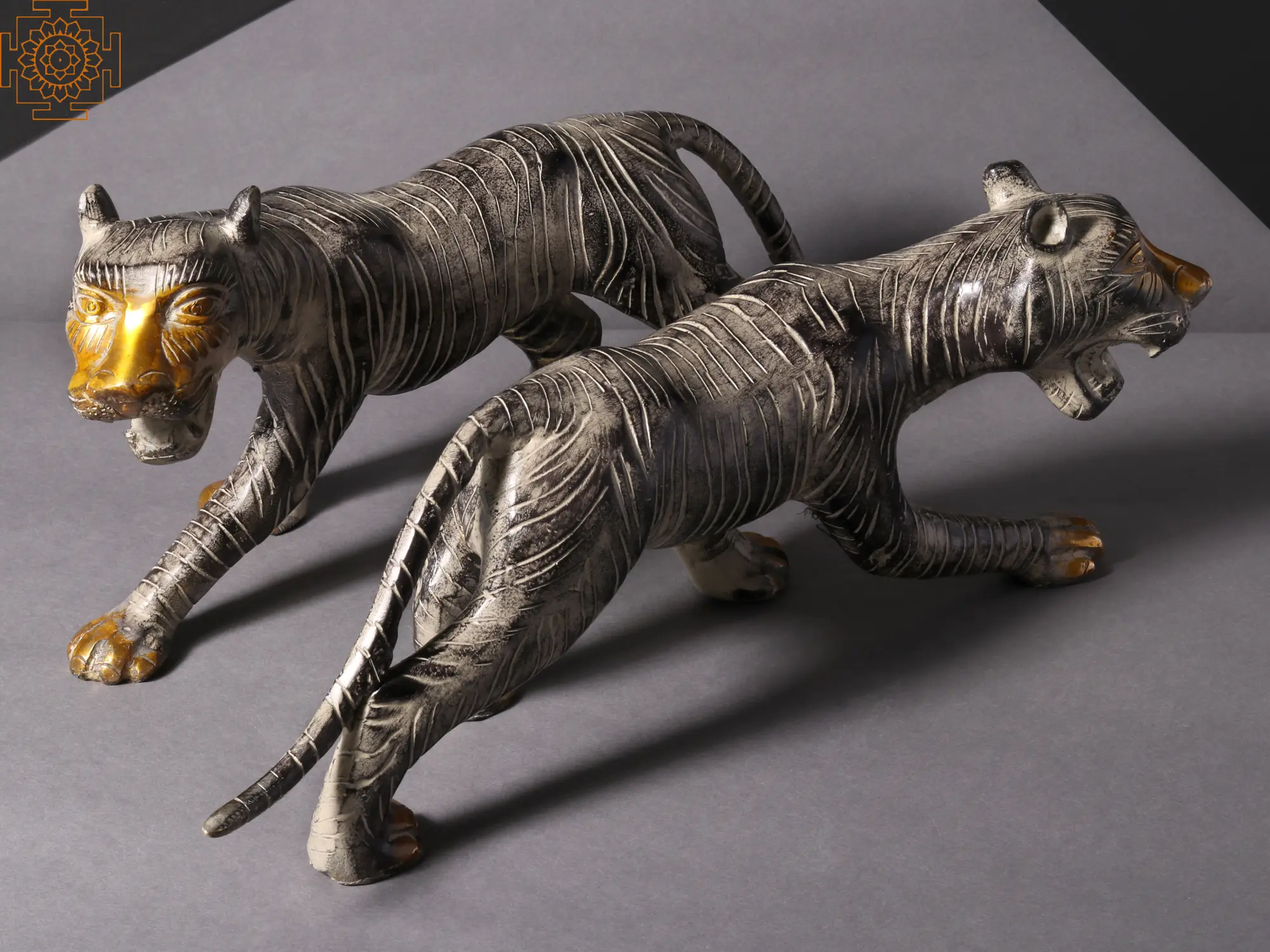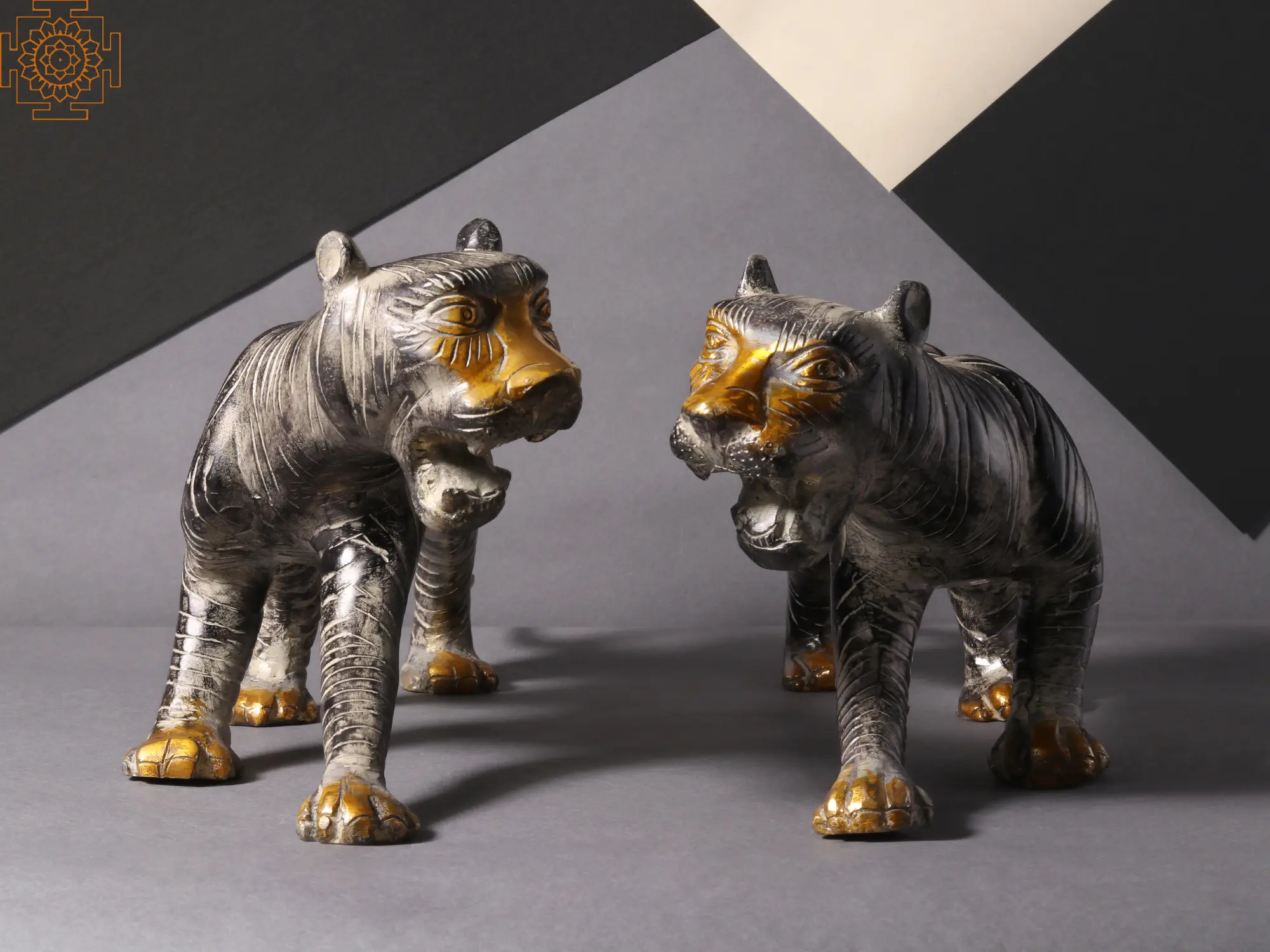 Capturing the ferocity and majesty of two roaring tigers, this piece transcends mere decoration, offering a glimpse into the untamed spirit of nature. Symbolising strength, courage, and primal instincts, it serves as a powerful reminder of resilience and determination. Forged with precision and passion, this brass creation adds a touch of wild charm to any space, be it your living room, office, or study. Whether as a focal point or an accent piece, it evokes awe and inspiration. Let these roaring tigers awaken your inner strength and unleash your untapped potential.