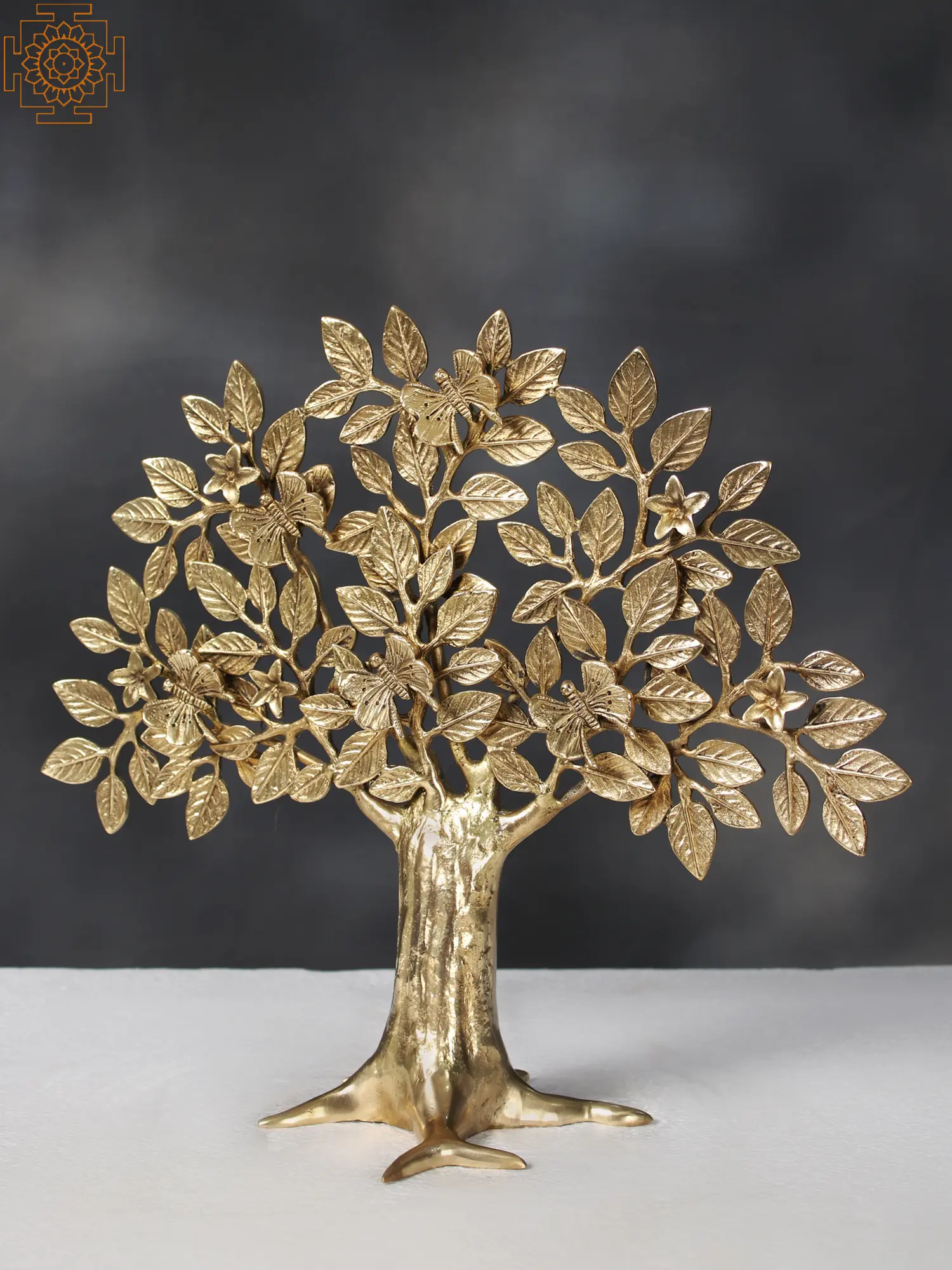 This small brass tree suggesting a Plumeria tree or Gour Champa tree, is a simple yet elegant definition of the beautiful being of a silent tree. The Plumeria or Gour Champa is an auspicious flower generally set up in graveyards for its nature of giving peace. The Plumeria is also used for making substance that cures migraine. This home decor piece of the Gour Champa is an auspicious and beautiful addition to a space that will bring peace, harmony and spiritual growth. The definition of butterflies sitting and playing on the tree is a string that connects the metallic art with the nature. The blooming flowers emblematize domestic peace. Keeping a small Diya or placing a statue alongside it'll not only enhance its beauty but also induce some veritably pious powers.