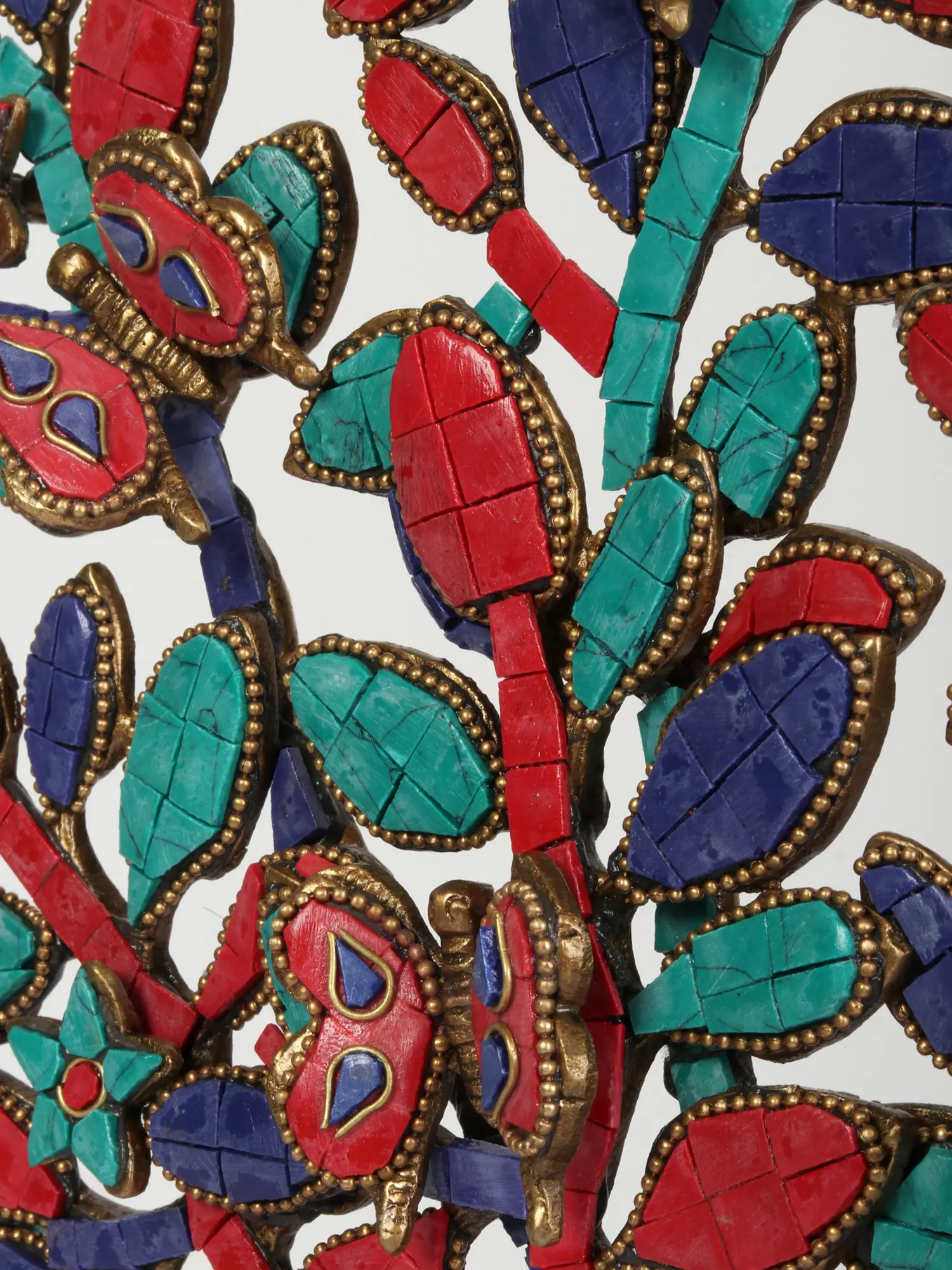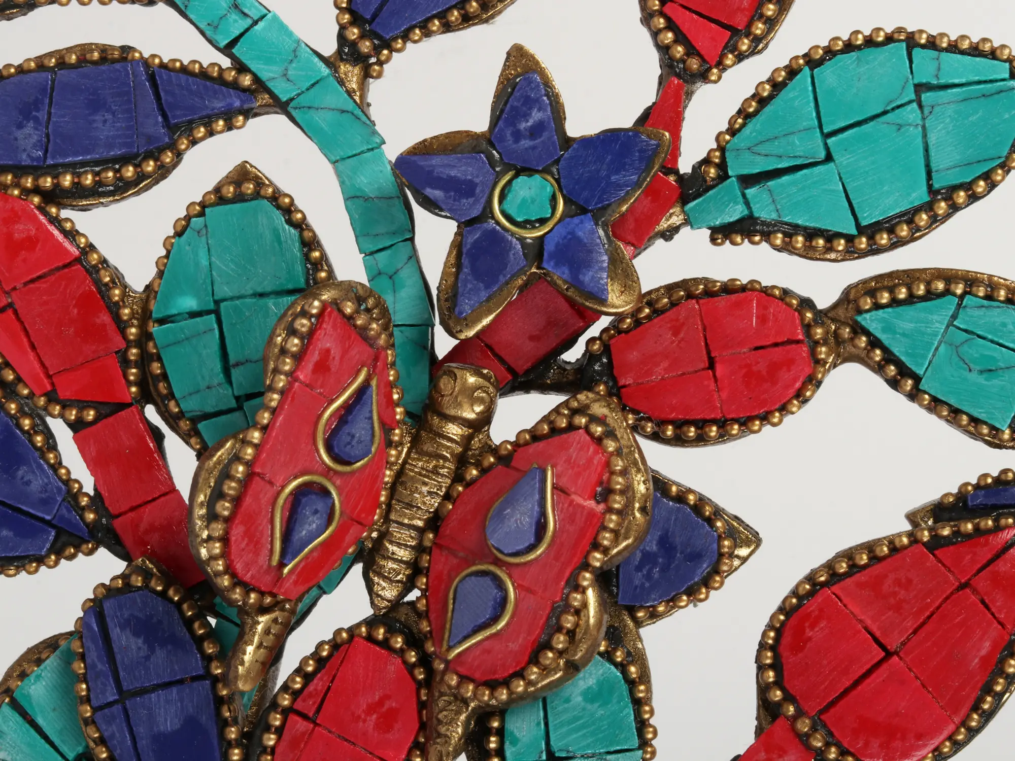 This Tree of Life isn't just beautiful; it's a testament to exceptional craftsmanship. The intricate inlay work is a labor of love, reflecting the dedication and skill of the artisans who created it. The use of high-quality brass, combined with the vibrant inlaid semi-precious stones, ensures its durability and lasting beauty. This piece is a true heirloom, destined to be cherished for generations. Each detail, from the tiny flowers to the lifelike butterflies, has been carefully considered and executed with precision.