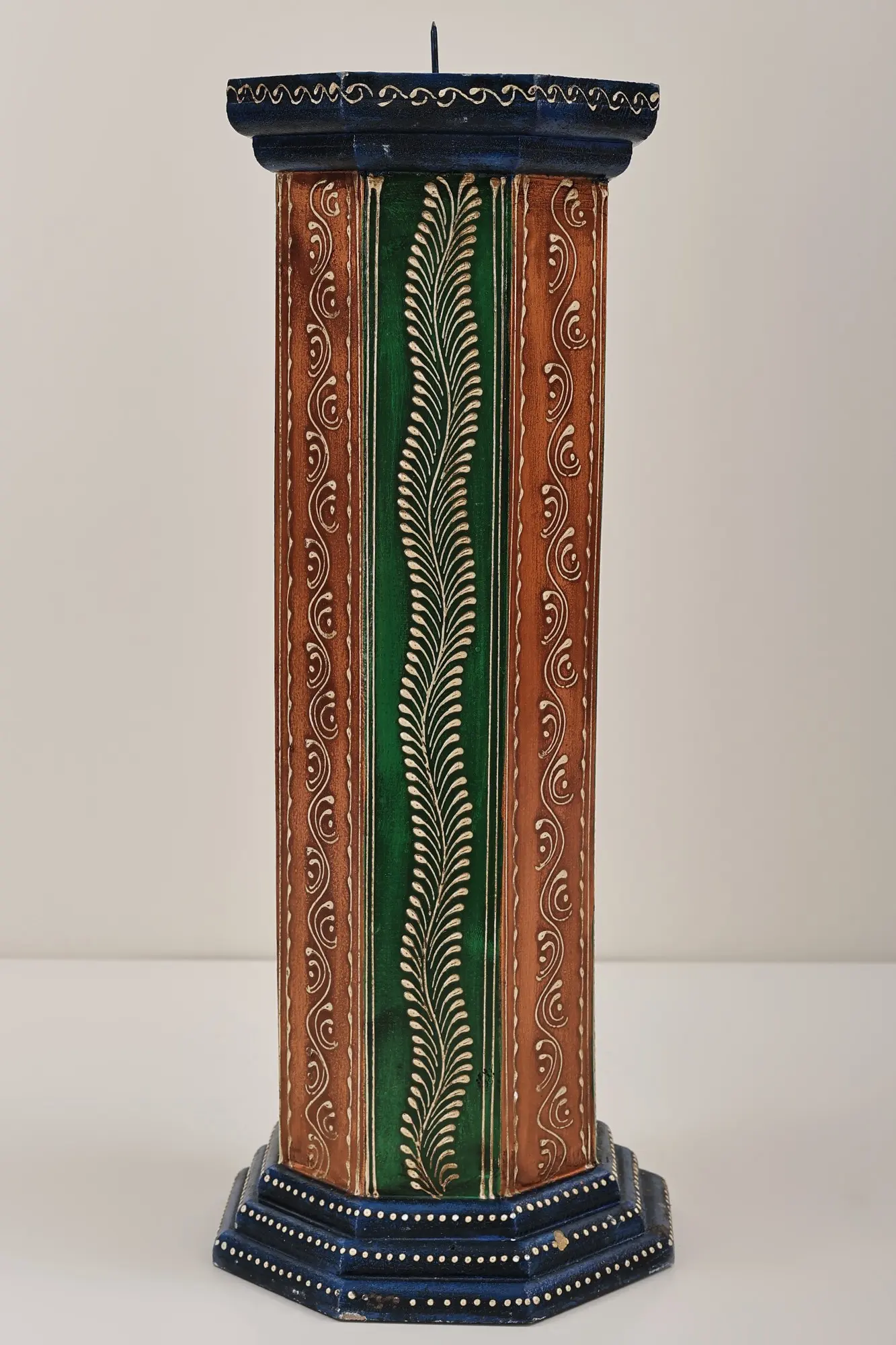 Candles are illuminating and have been regarded as messengers of wisdom. This Decorative, Colorful Candle Stand, crafted in the artistic tradition of Jodhpur, is the accommodation to keep the candles safe and burning. Its eye-catching octagonal design is adorned with a captivating blend of green and yellow shades, adding a vibrant touch to any space. The Jodhpur-style craftsmanship infuses cultural charm into this candle stand, making it a unique and aesthetically pleasing accent for your home. Illuminate your surroundings in style and let the green and yellow hues create a warm and inviting atmosphere, turning every moment into a visual delight.