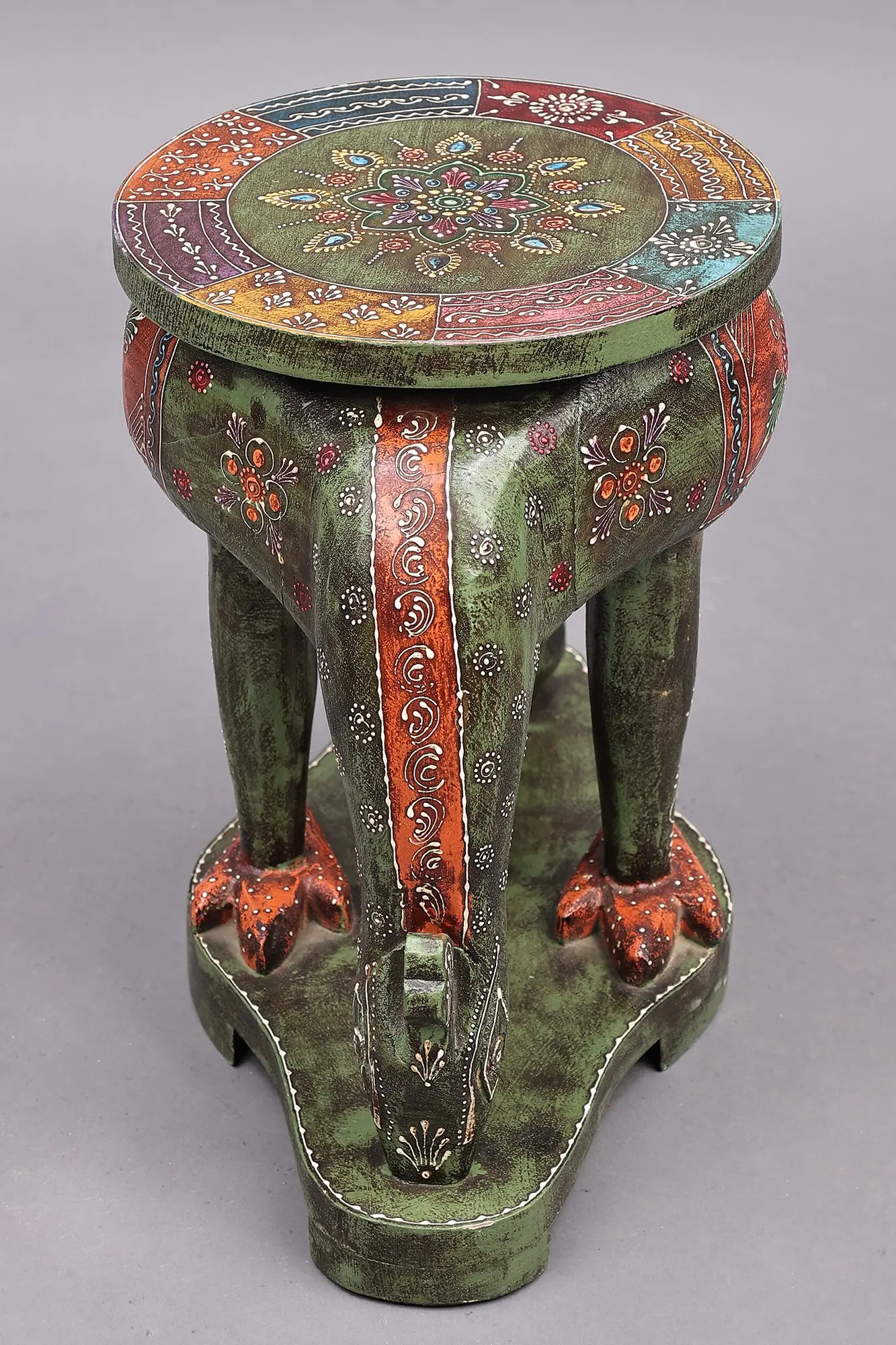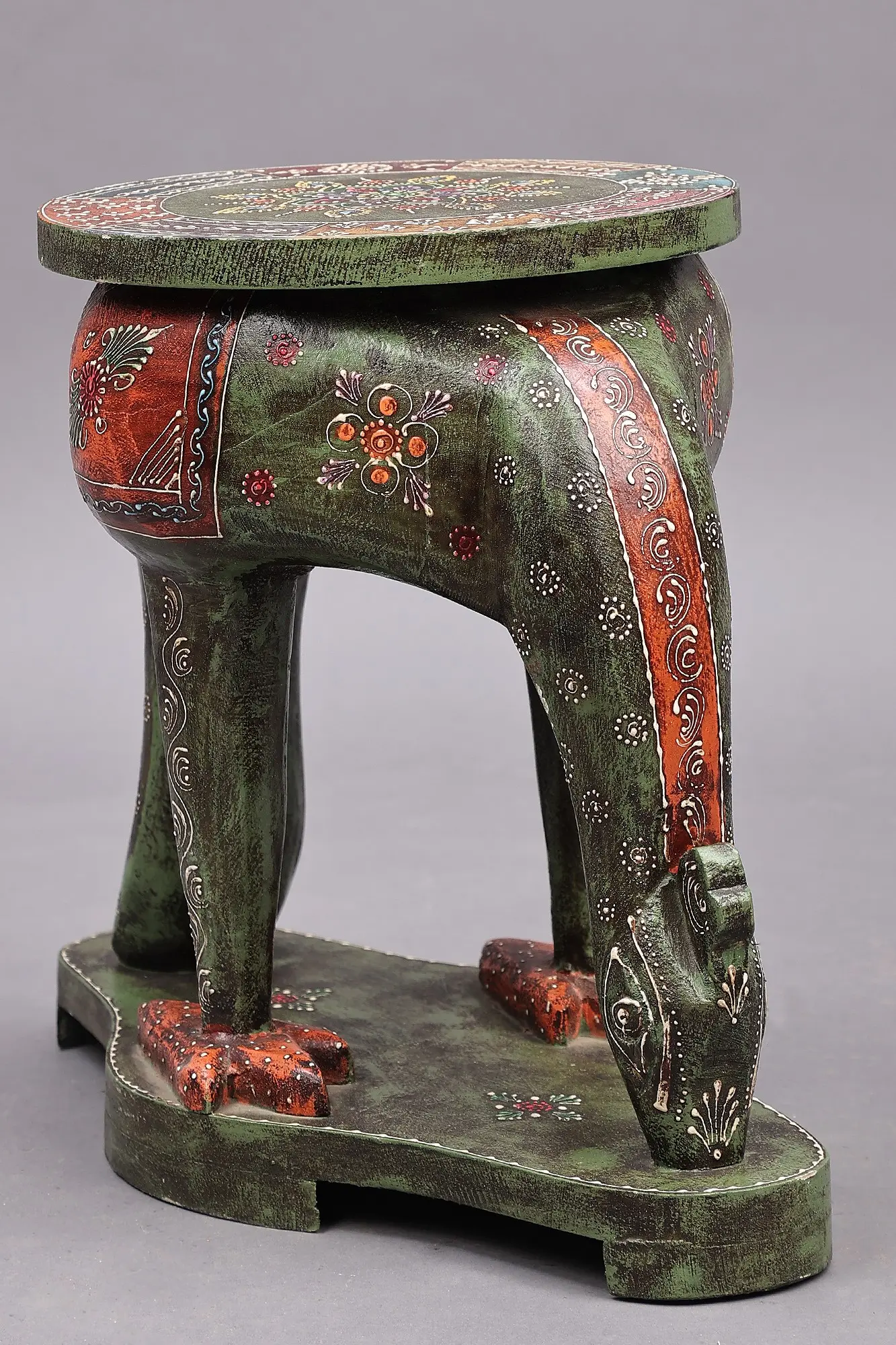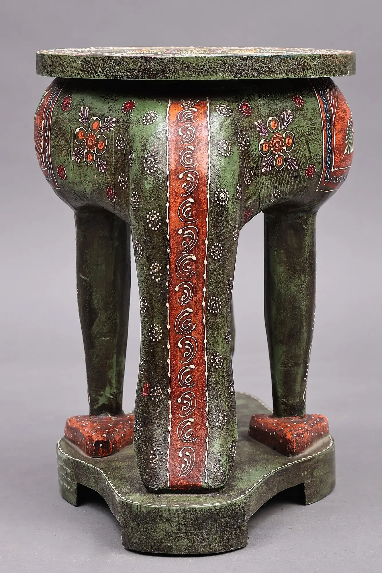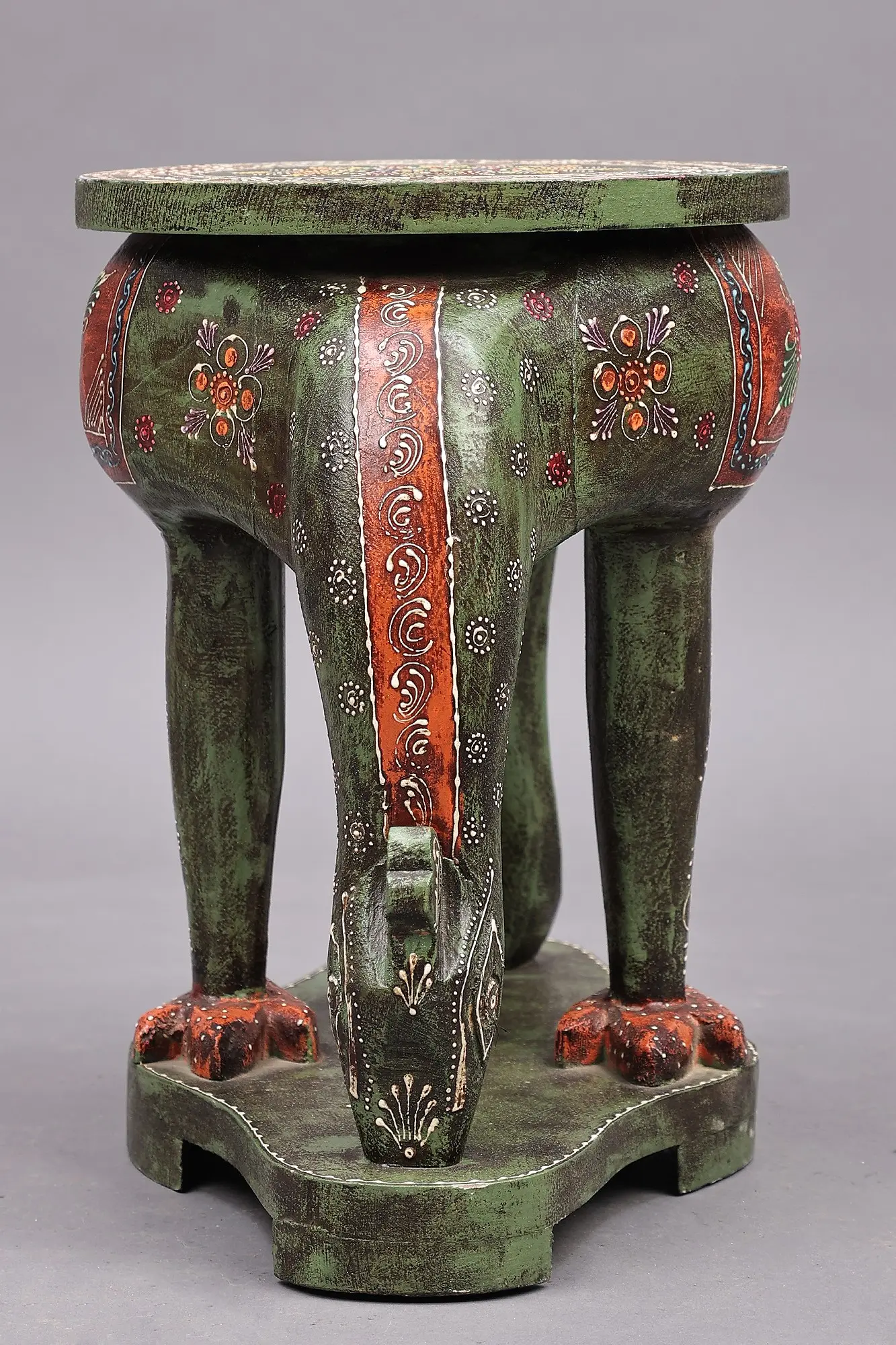 11" Decorative Hand Painted Wooden Elephant Table | Handmade Wood Table | Made in India