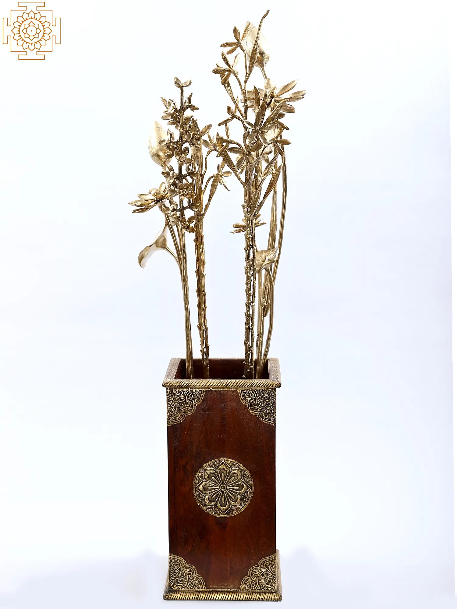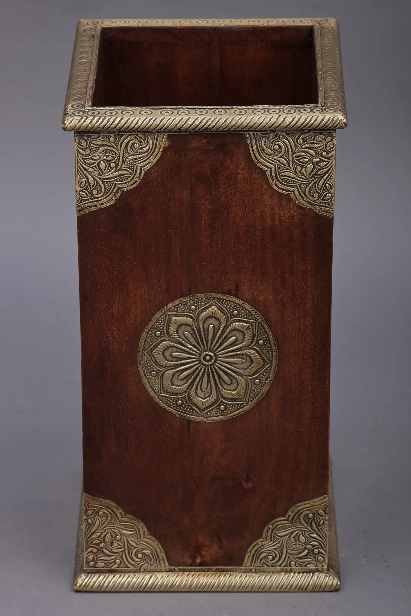 The art of repoussé has been utilized to create one of the finest utility pieces. Initially, repoussé was used for making silver and brassware. Small or big any kind of decoration was possible with this technique. Here in this wooden planter, the dark brown base of the planter has been ornamented with matt finish silver colored repoussé work. The decoration pieces are very smartly placed at the center and the corners. This arrangement allows a contrasting yet attractive play of colors that brings out elegance in the piece. The traditional Phoot Patti work gives the piece the most beautiful appearance. The durable wood ensures longevity, while the spacious design accommodates a variety of plants, fostering a flourishing green oasis. Whether adorning your patio, balcony, or garden, these planters invite nature into your home with style.