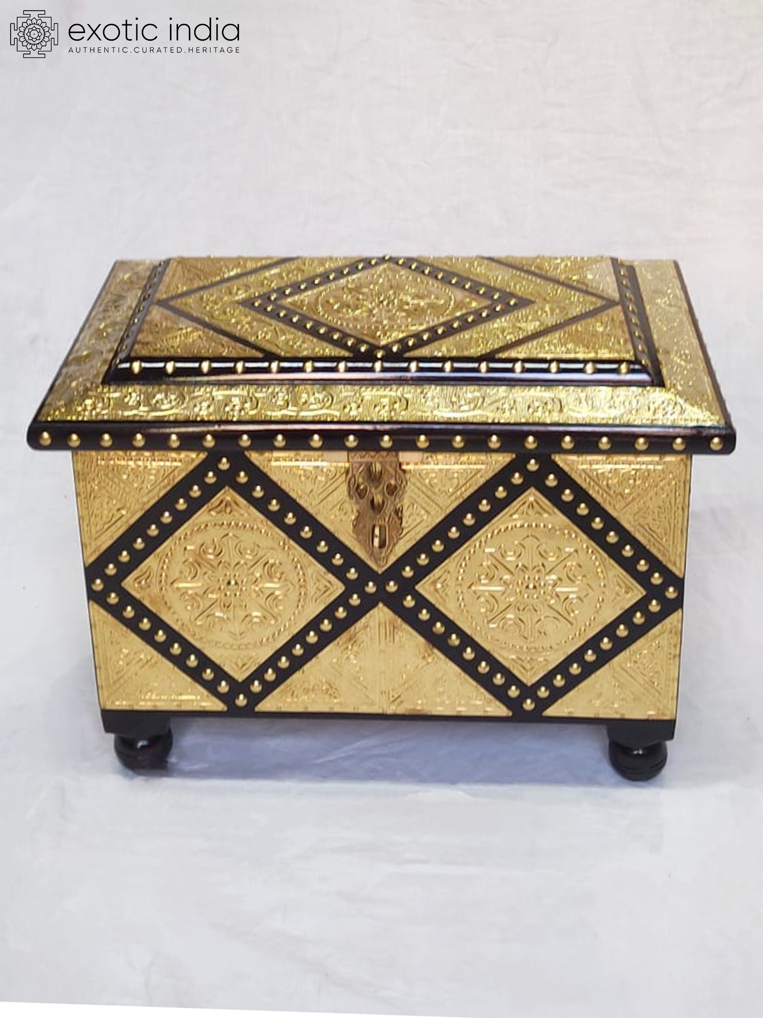 13" Classic Design Brass Decorative Wooden Jewelry Box
