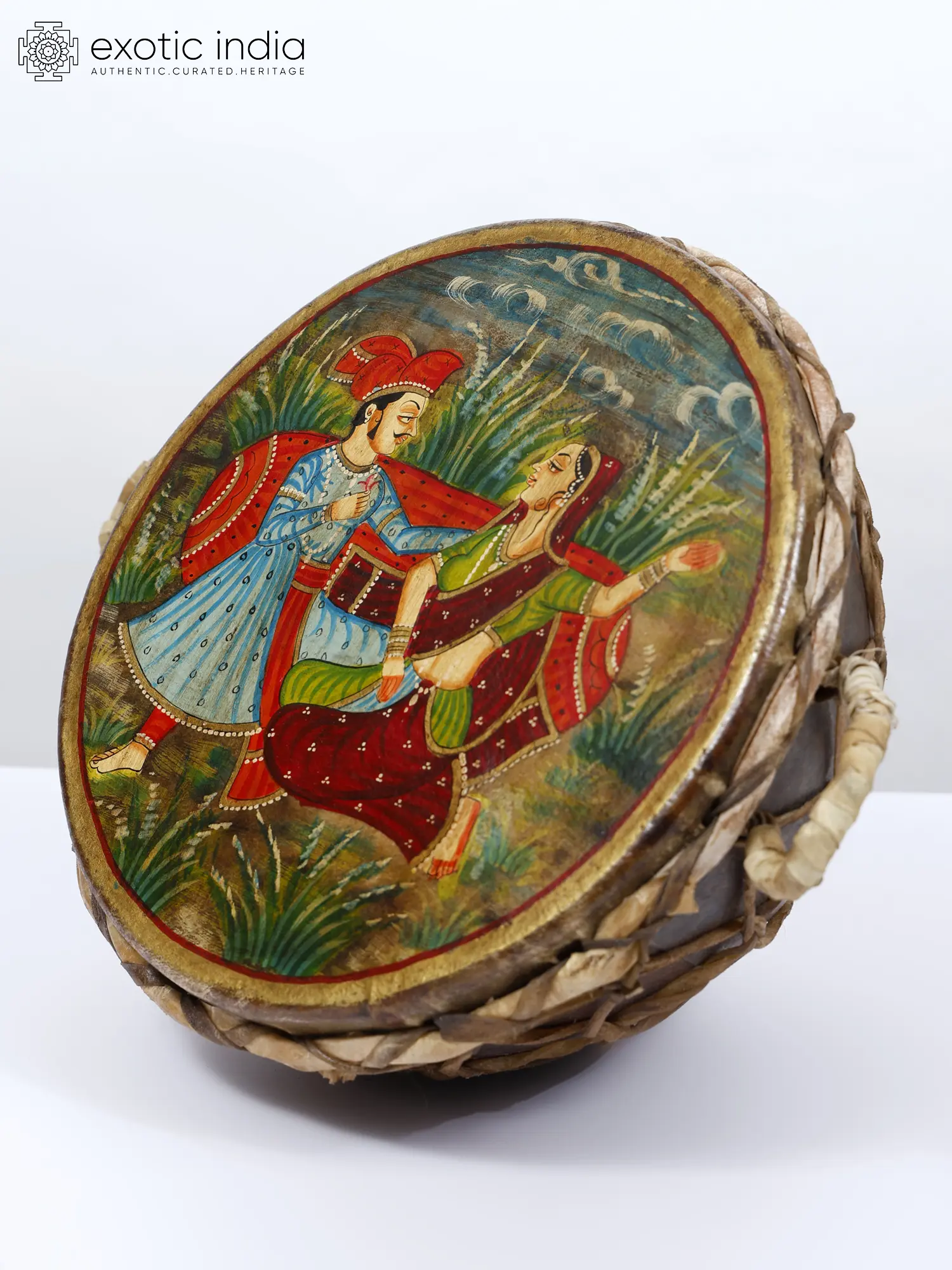 Beyond its visual appeal, the Nagada serves as a reminder of Mughal heritage and artistic expression. Its rhythmic beats not only evoke the sounds of celebration but also transport listeners to a bygone era of royalty and grandeur. As both a musical instrument and a work of art, the Mughal Couple Painted Traditional Nagada adds a touch of cultural splendor to any space.