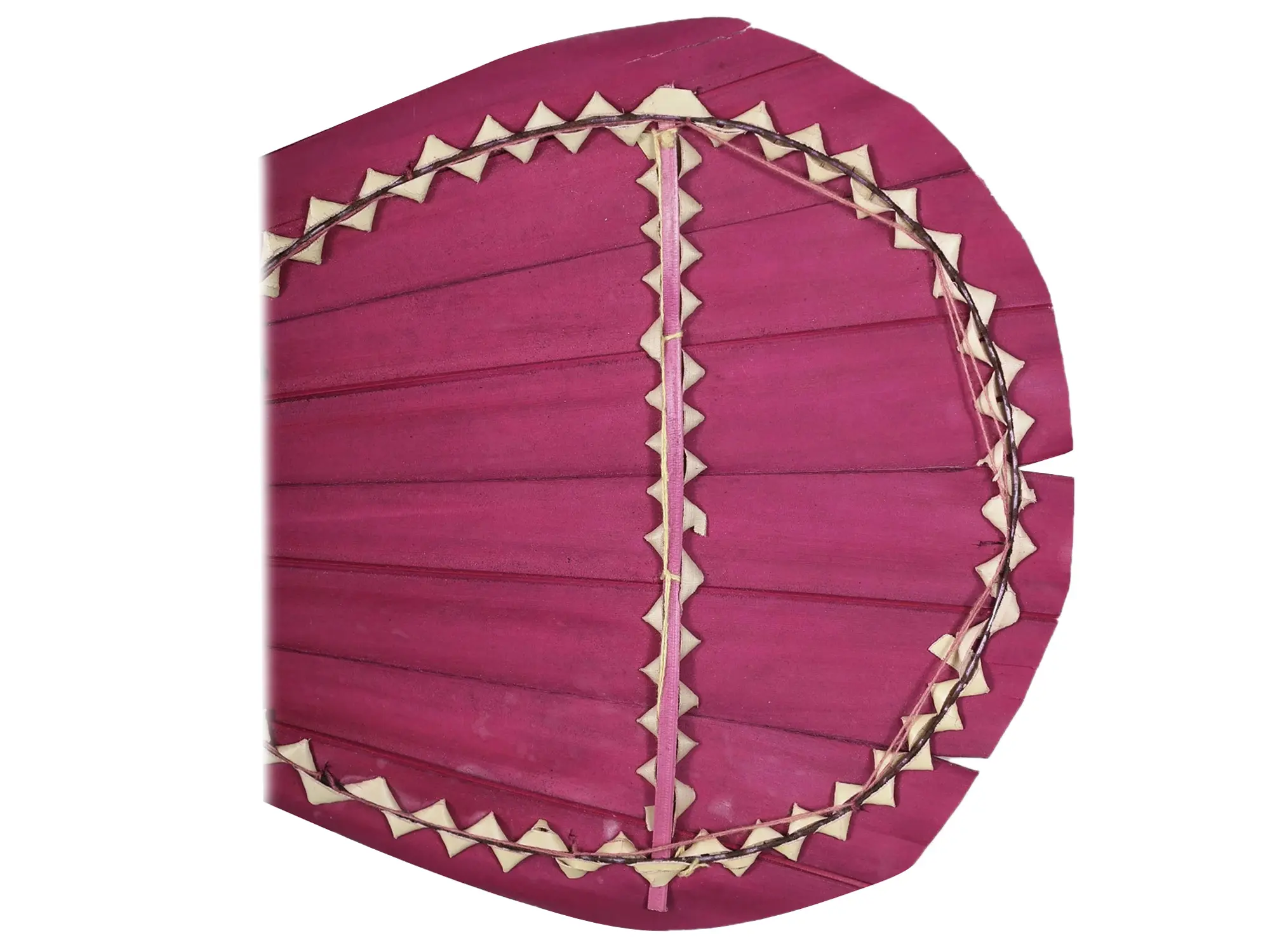 Buddhist wall paintings from Ajanta provide evidence of the presence and use of pankhi in India. They have been a continuous help in getting rid of the humid air during the Indian summers. This Palm Leaf Handmade Fan is from Tamil Nadu and is a part of the age-old heritage of Palm leaf weaving in the region. The hand fan is beautifully painted in a fuschia pink color and showcases a simple design. Beyond its functional cooling purpose, the fan serves as a cultural emblem, telling stories of craftsmanship passed down through generations.
