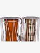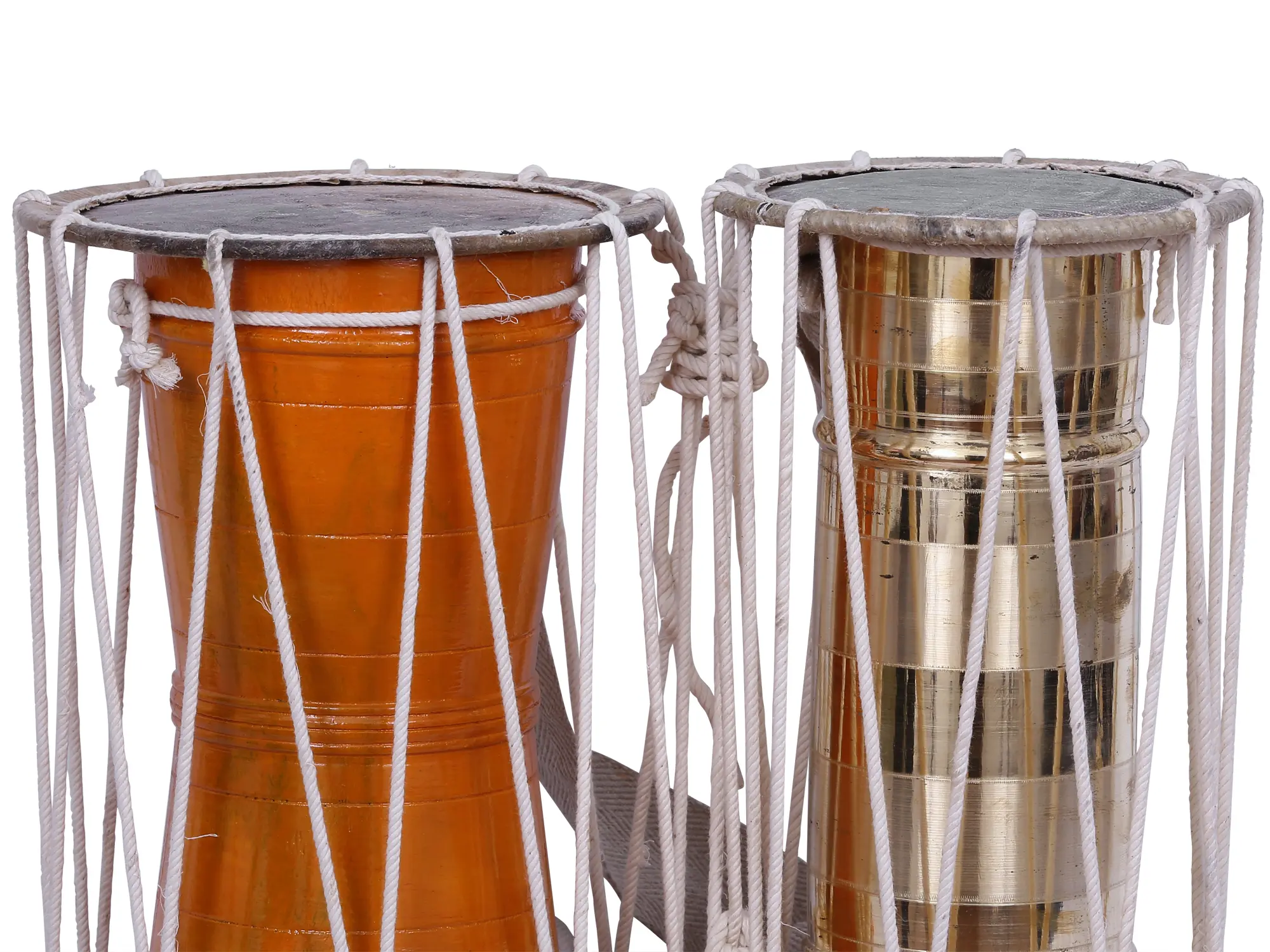 The Pambai set is a beautiful example of traditional craftsmanship. The drums are carefully constructed using high-quality wood and brass, materials chosen for their durability and their ability to enhance the instrument's tonal characteristics. The rich, warm tones of the wood beautifully complement the bright resonance of the brass. The intricate detailing, from the precise shaping of the drums to the carefully tied rope lacing, showcases the dedication and skill of the artisans. The natural variations in the wood grain add to the uniqueness of each drum, making every Pambai set a truly one-of-a-kind piece. The high-quality materials and construction guarantee the longevity of your Pambai set, ensuring it will provide years of musical enjoyment.