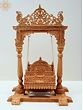 Statement Wooden Swing: Hand-Carved Floral Design with Brass Hanging Chains