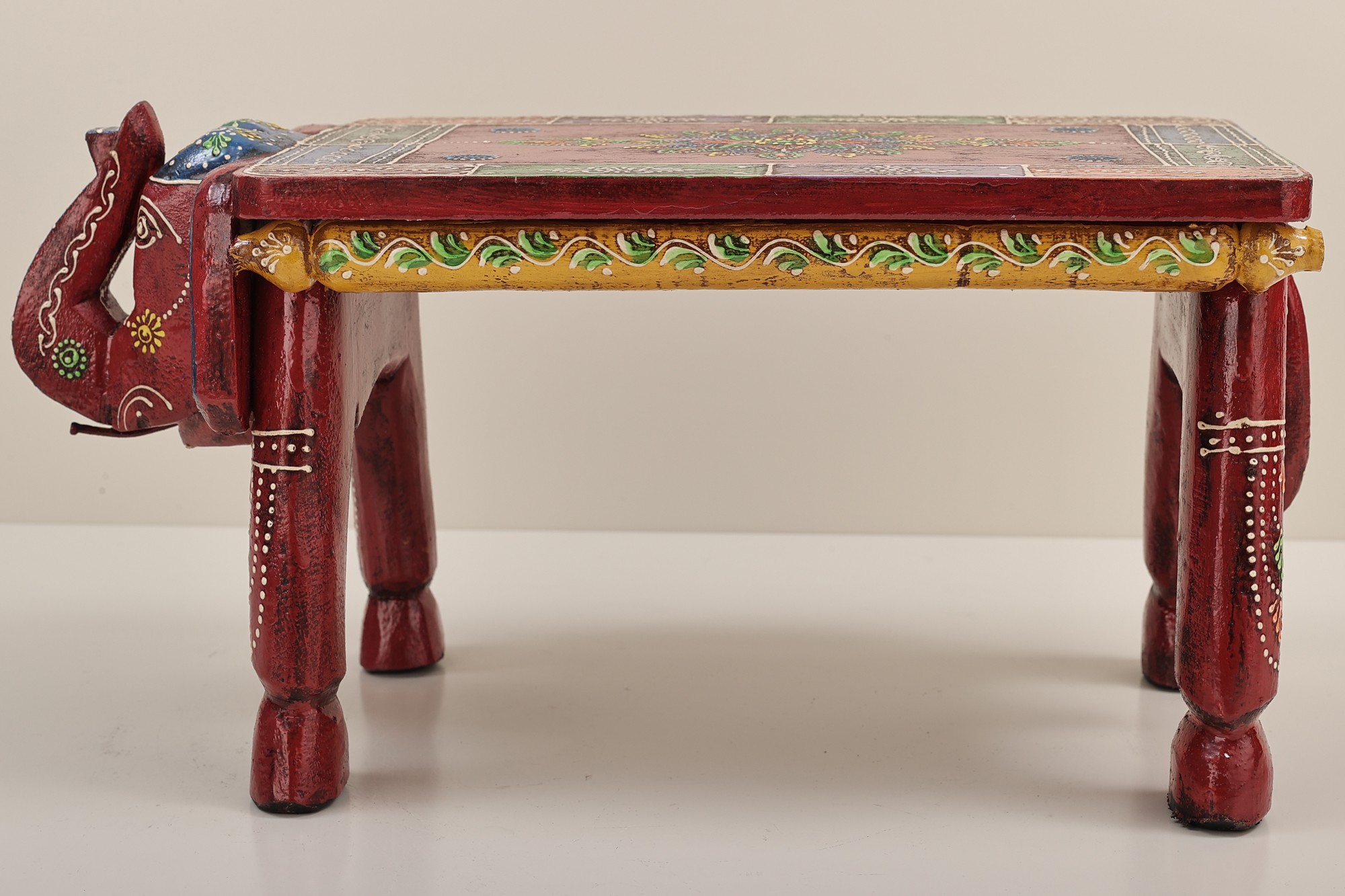 11" Decorative Hand Painted Wooden Elephant Table | Handmade Wood Table | Made in India