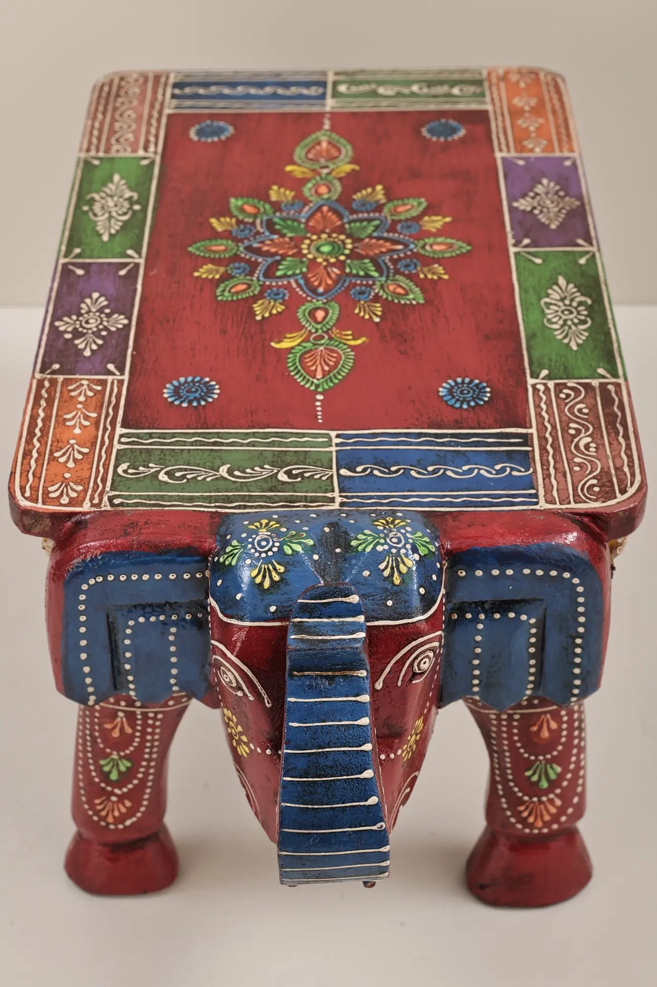 16" Decorative Hand Painted Wooden Elephan Table | Wooden Table | Handmade | Made In India