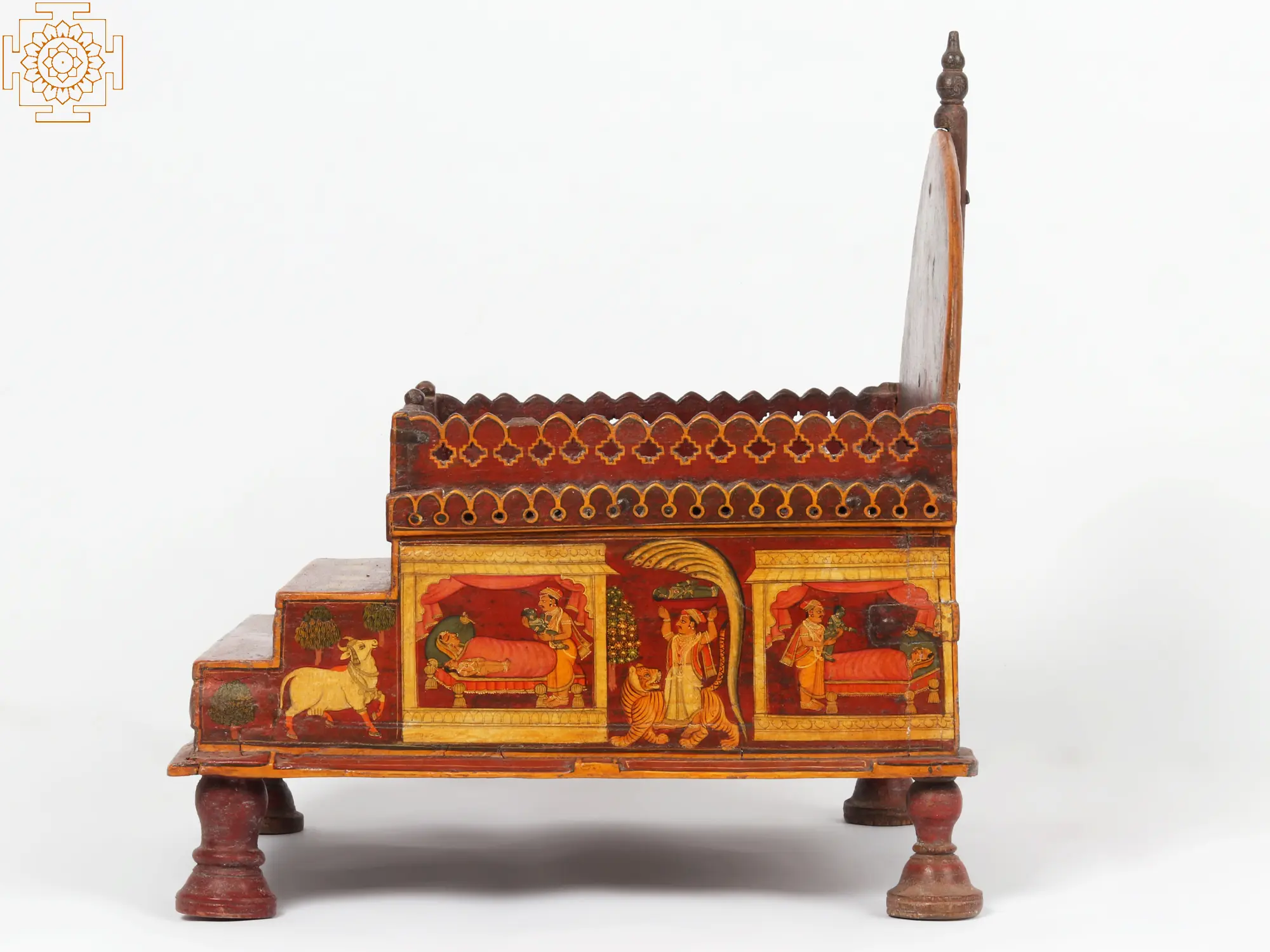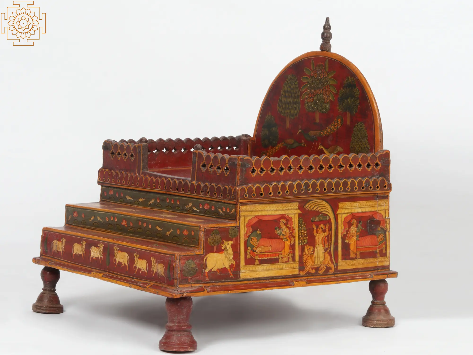 26" Home Temple Altar with Prabhavali and pedestal on Two Elephants Stand