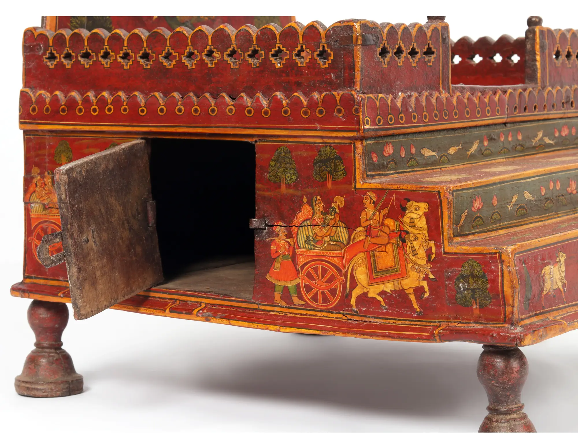 Large Wooden Puja Temple with Vaishnava Iconography