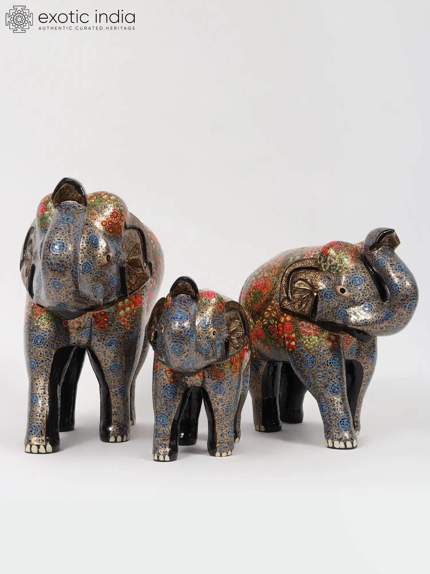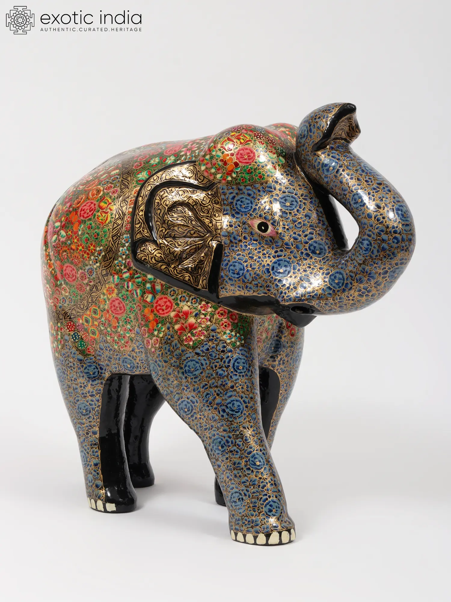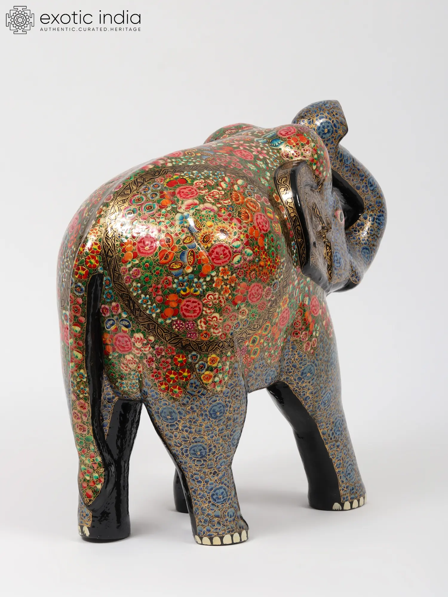 12" Hand-Painted Wood Based Papier Mache Elephant | Home Decor