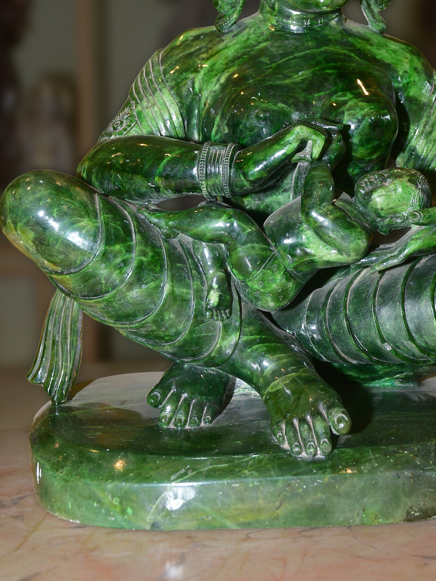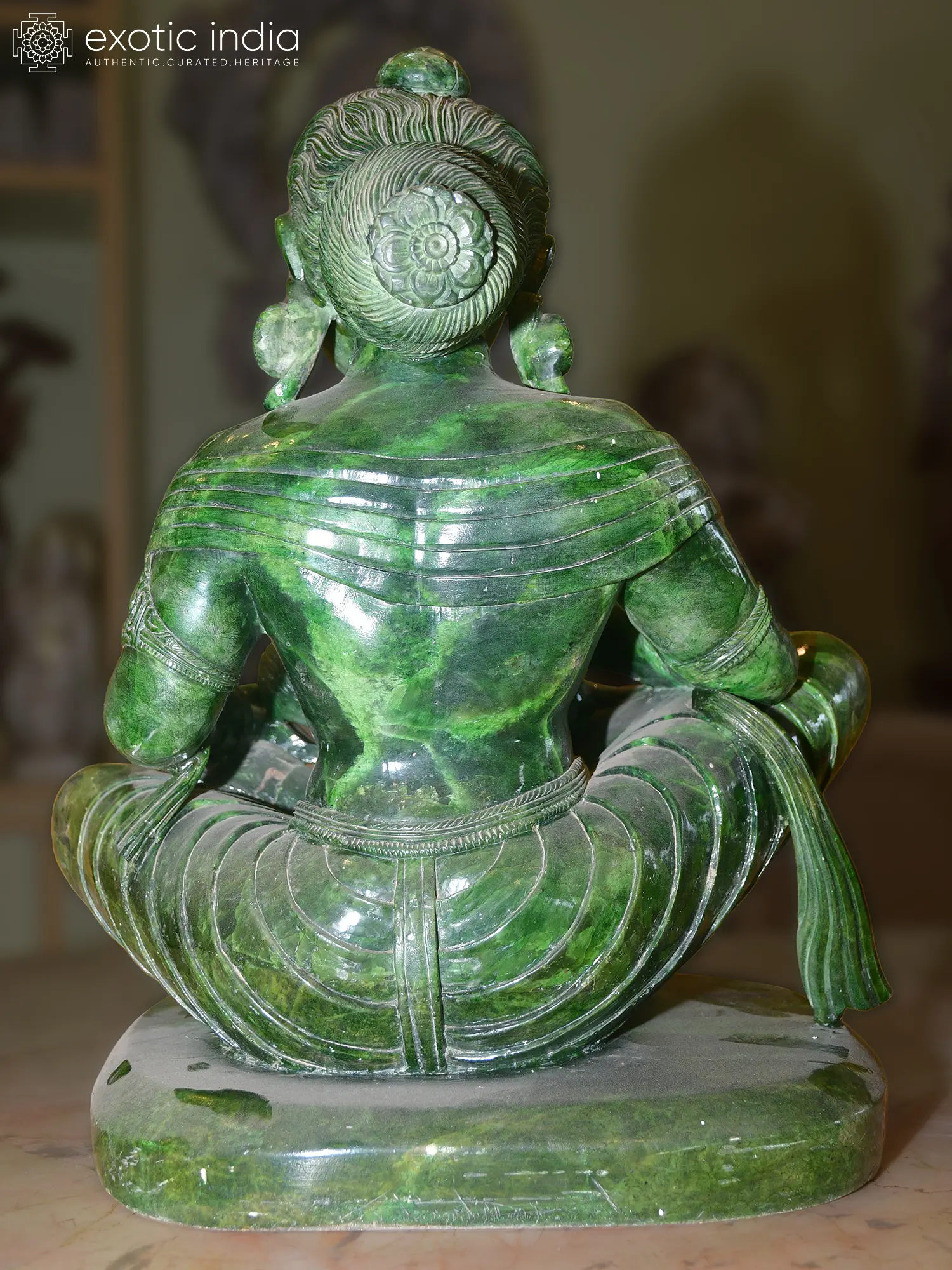 This captivating statue would be a remarkable addition to any home, bringing a touch of serene beauty and profound emotional resonance to your living space. Placed on a mantelpiece, a bookshelf, or as a centerpiece on a table, it is sure to draw the eye and inspire contemplation. The vibrant green of the Orissa stone offers a refreshing contrast to conventional decor, adding a unique and sophisticated element. Each sculpture is a unique work of art, imbued with the spirit of its creator and the rich cultural tapestry from which it originates, making it a truly special heirloom piece.