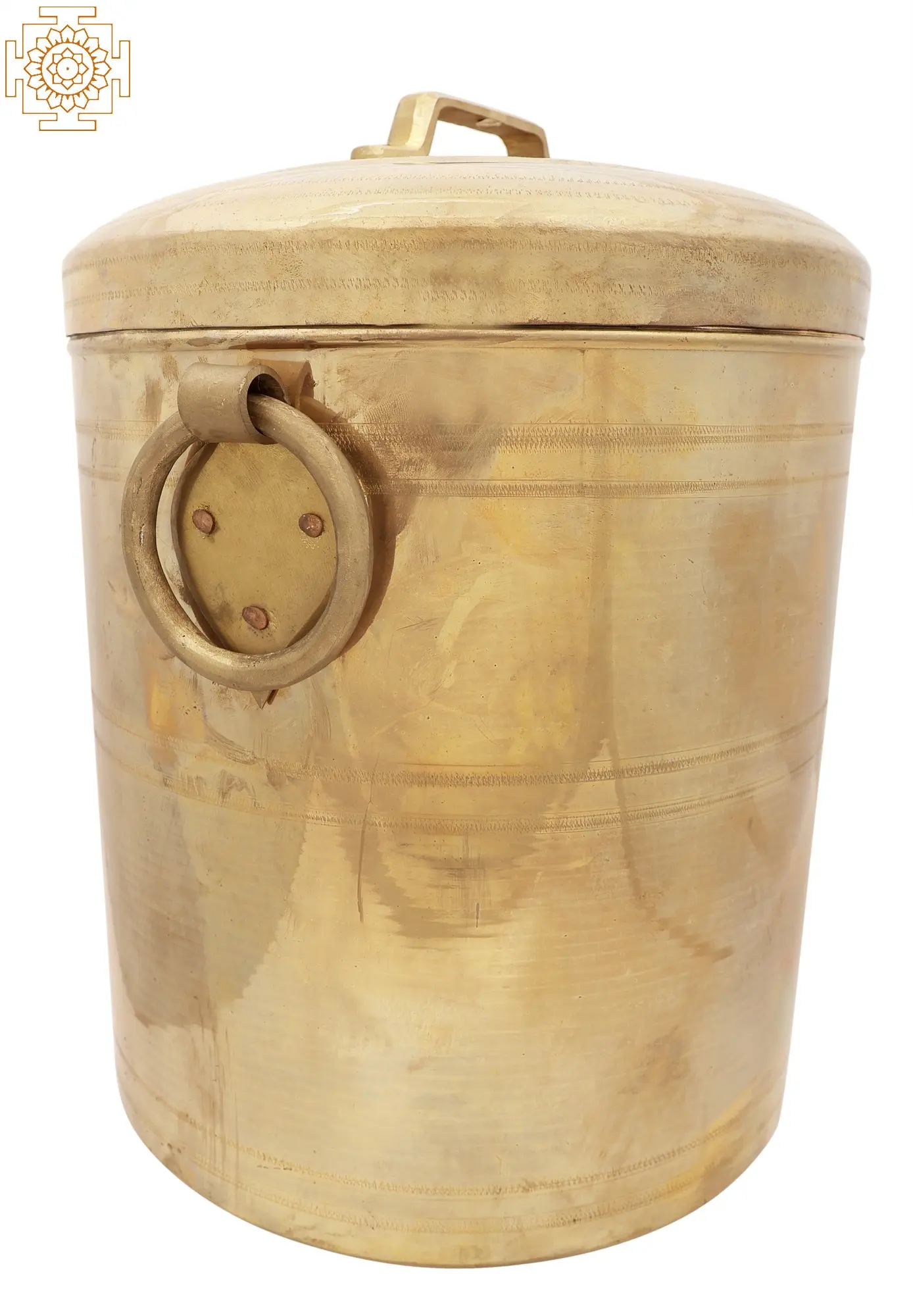 Every detail of this container reflects the dedication and expertise of Indian artisans. From the shaping of the brass to the subtle details on the surface, each element has been carefully considered. Supporting these craftspeople means preserving time-honored techniques and contributing to the continuation of a rich cultural legacy. Notice the smooth finish and solid construction, signs of exceptional workmanship. The sturdy handles add both practicality and visual appeal. These thoughtful features elevate the container beyond mere utility, transforming it into a work of art that graces your home. When you choose this container, you’re not just buying a product; you're investing in a piece of history and supporting the livelihoods of talented artisans.