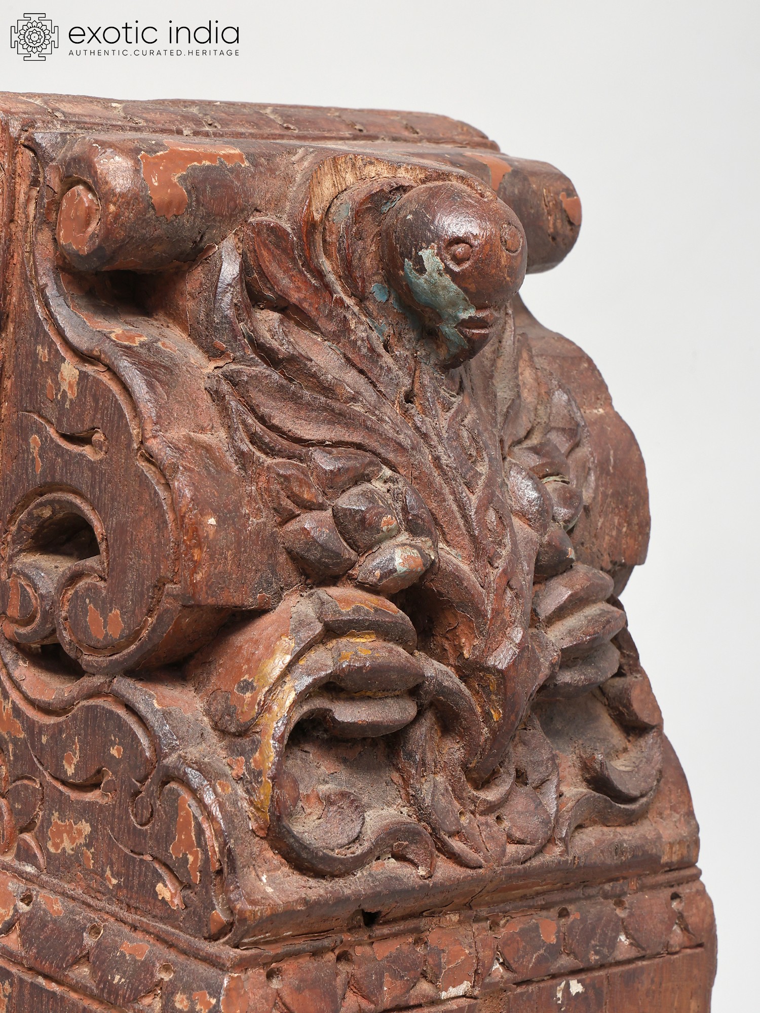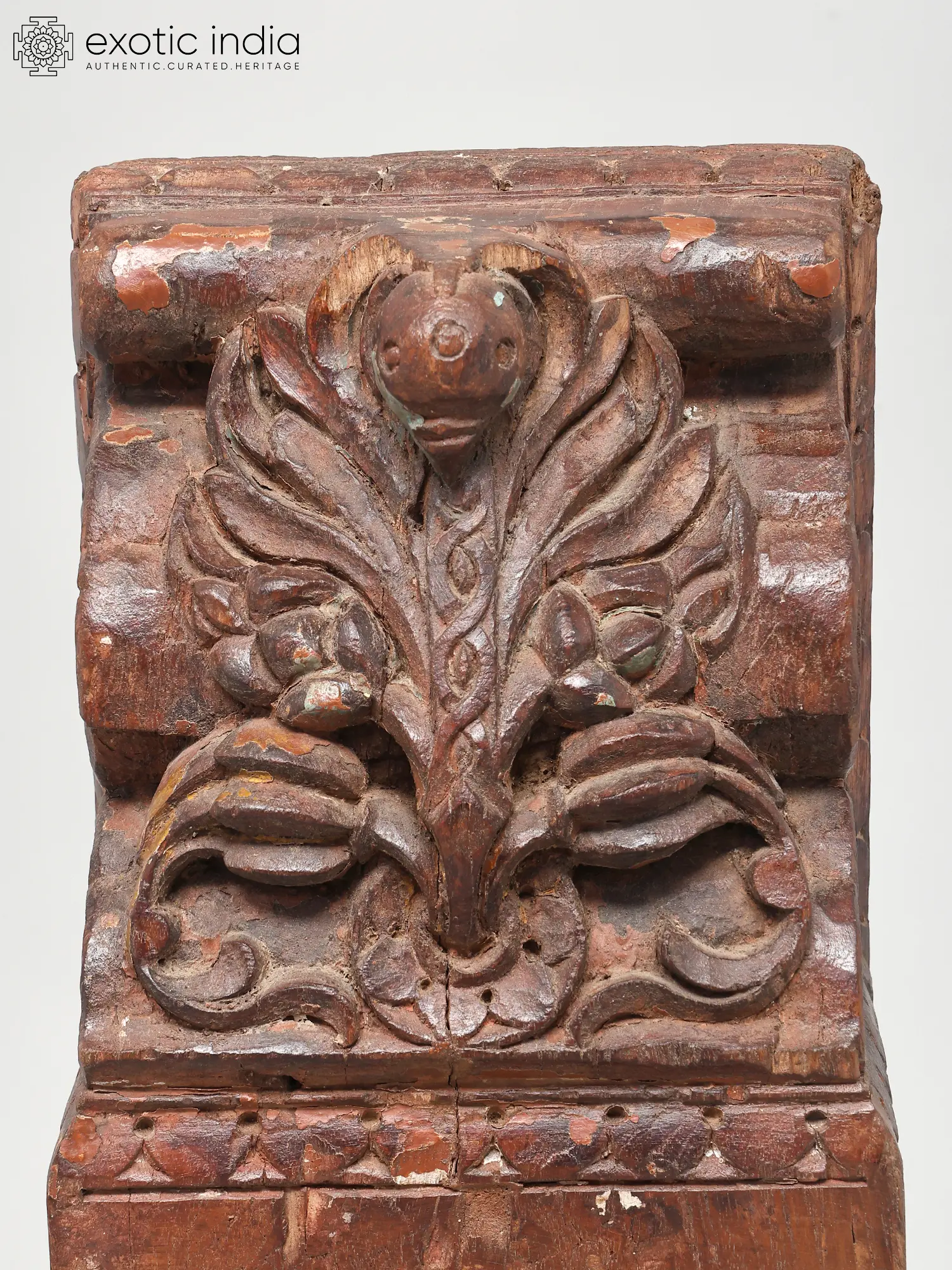 Elevate your home decor with this exquisite piece that seamlessly blends ancient artistry with modern presentation. This unique showpiece is a testament to the rich tradition of Indian craftsmanship, showcasing intricate wood carving brought to life on a sturdy iron stand. The centerpiece is a beautifully carved wooden element, depicting a stylized floral motif with a commanding presence. The details are finely etched, revealing the skill and patience of the artisan who shaped this remarkable artifact. The natural patina of the aged wood tells a story of time, adding a layer of depth and character that new items simply cannot replicate.