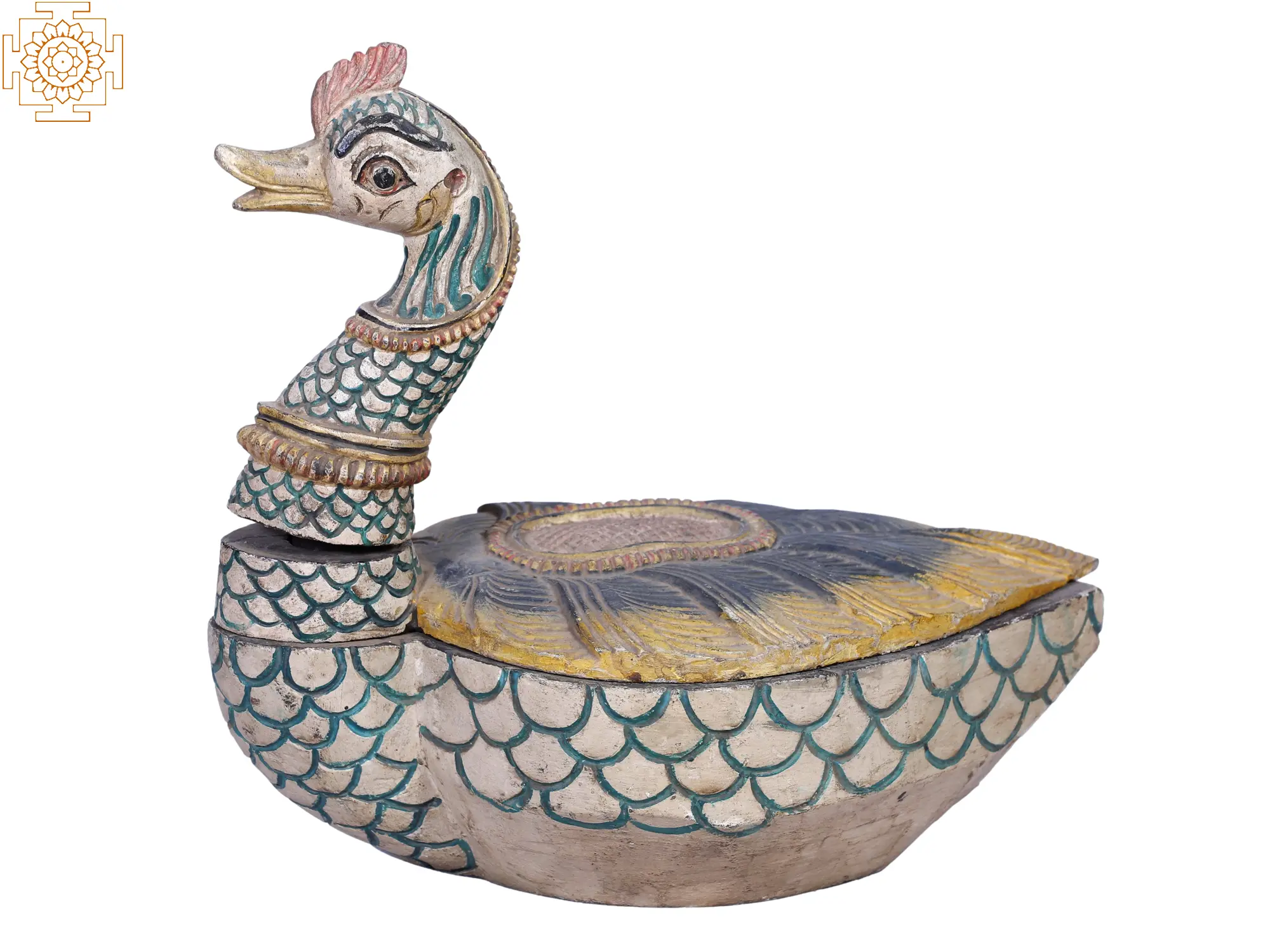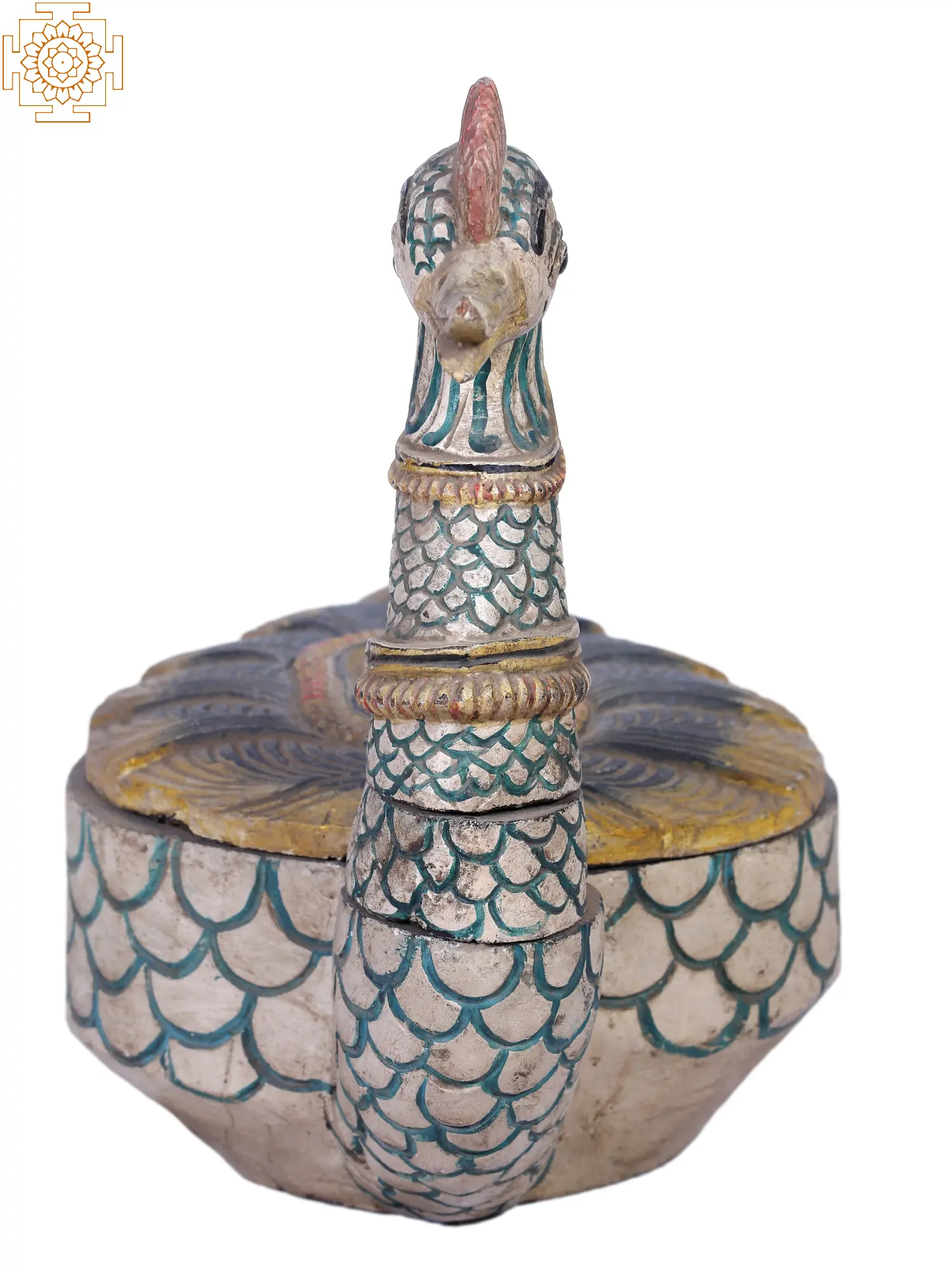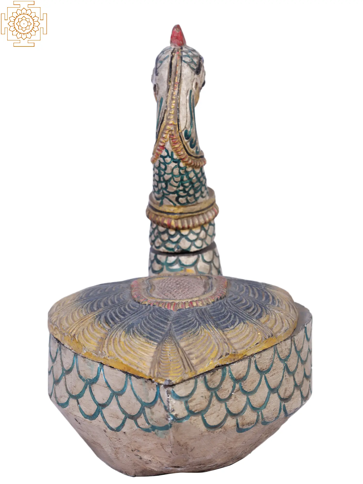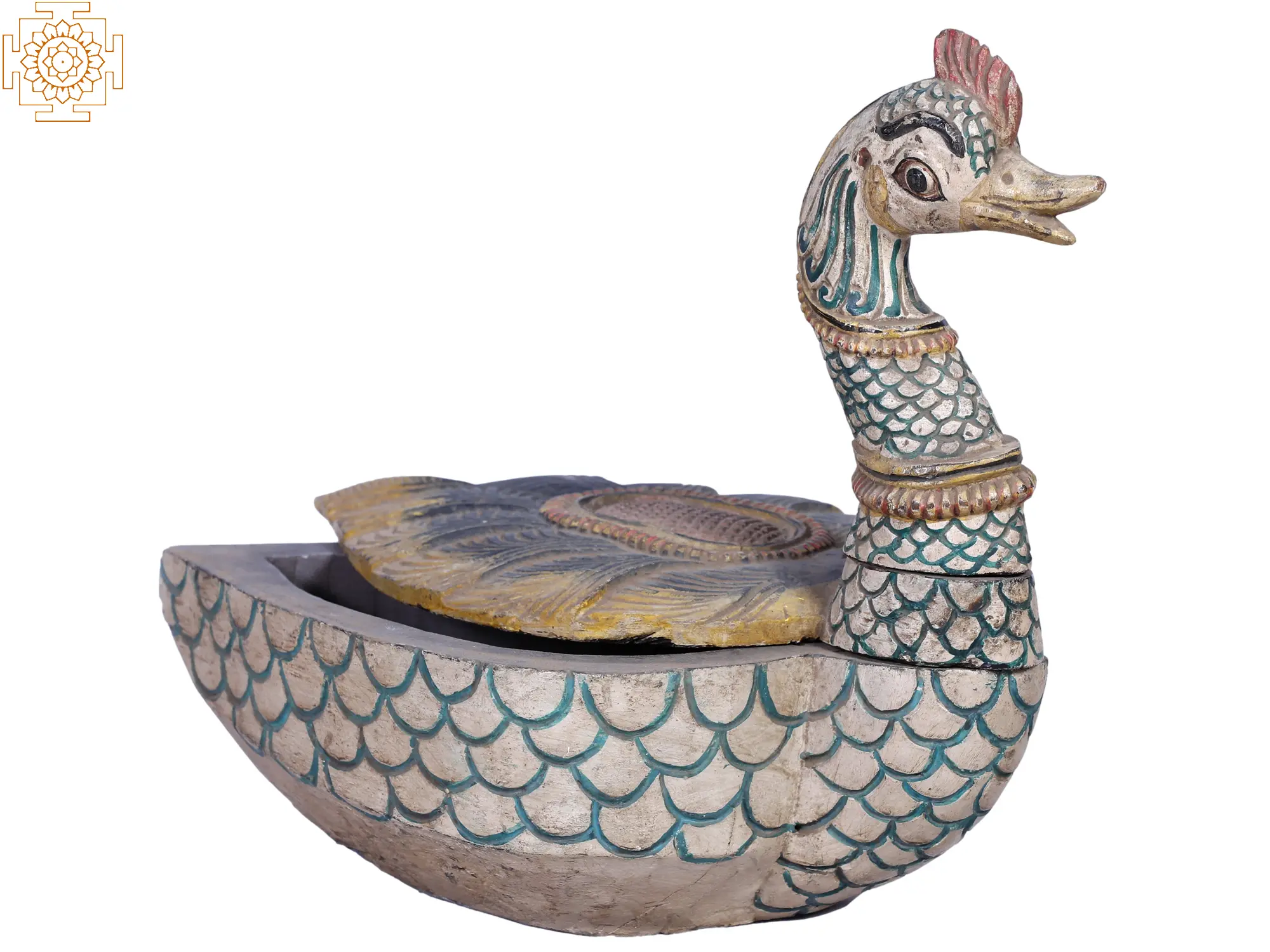 Presenting your wooden peacock box with a captivating blend of functional and artistic beauty. Crafted from fine wood and intricately carved by skilled artisans, this box is adorned with the graceful form of a peacock, symbolizing elegance and grace. The box features the majestic peacock with its intricate plumage and delicate features, while the body of the box is adorned with additional decorative elements inspired by nature. The rich wood grain adds warmth and depth to the design, making it a truly special addition to your decor.