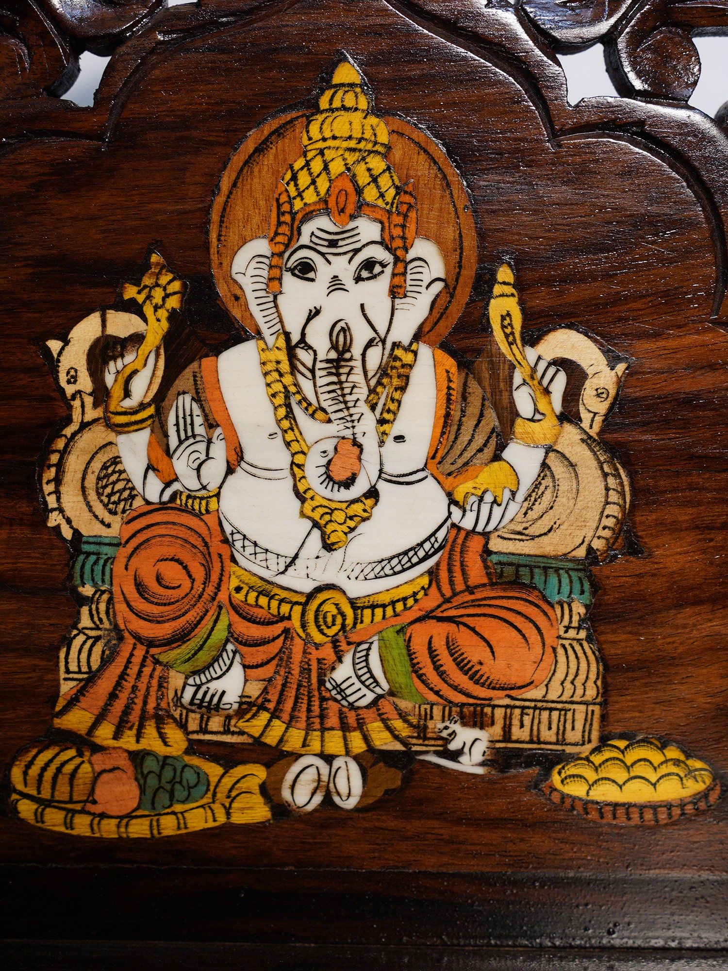 36" Designer Wooden Temple/Mandasana with Lord Ganesha Inlay
