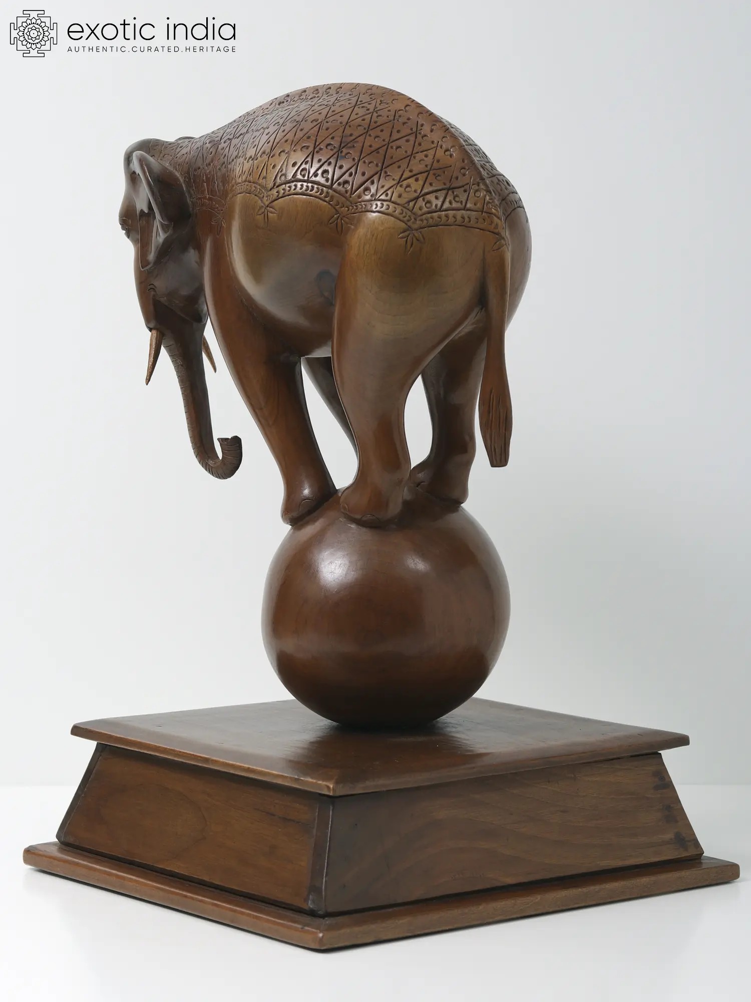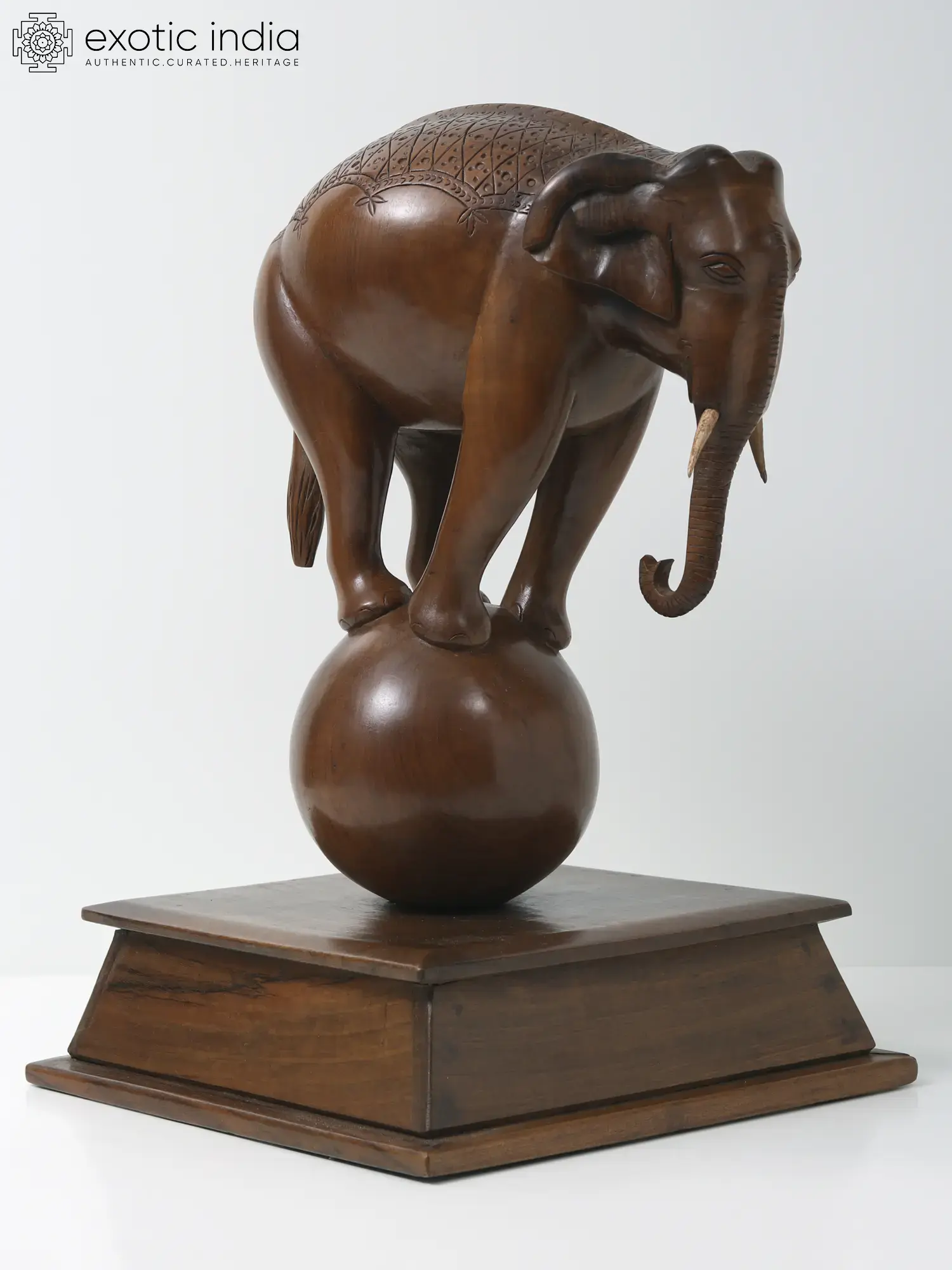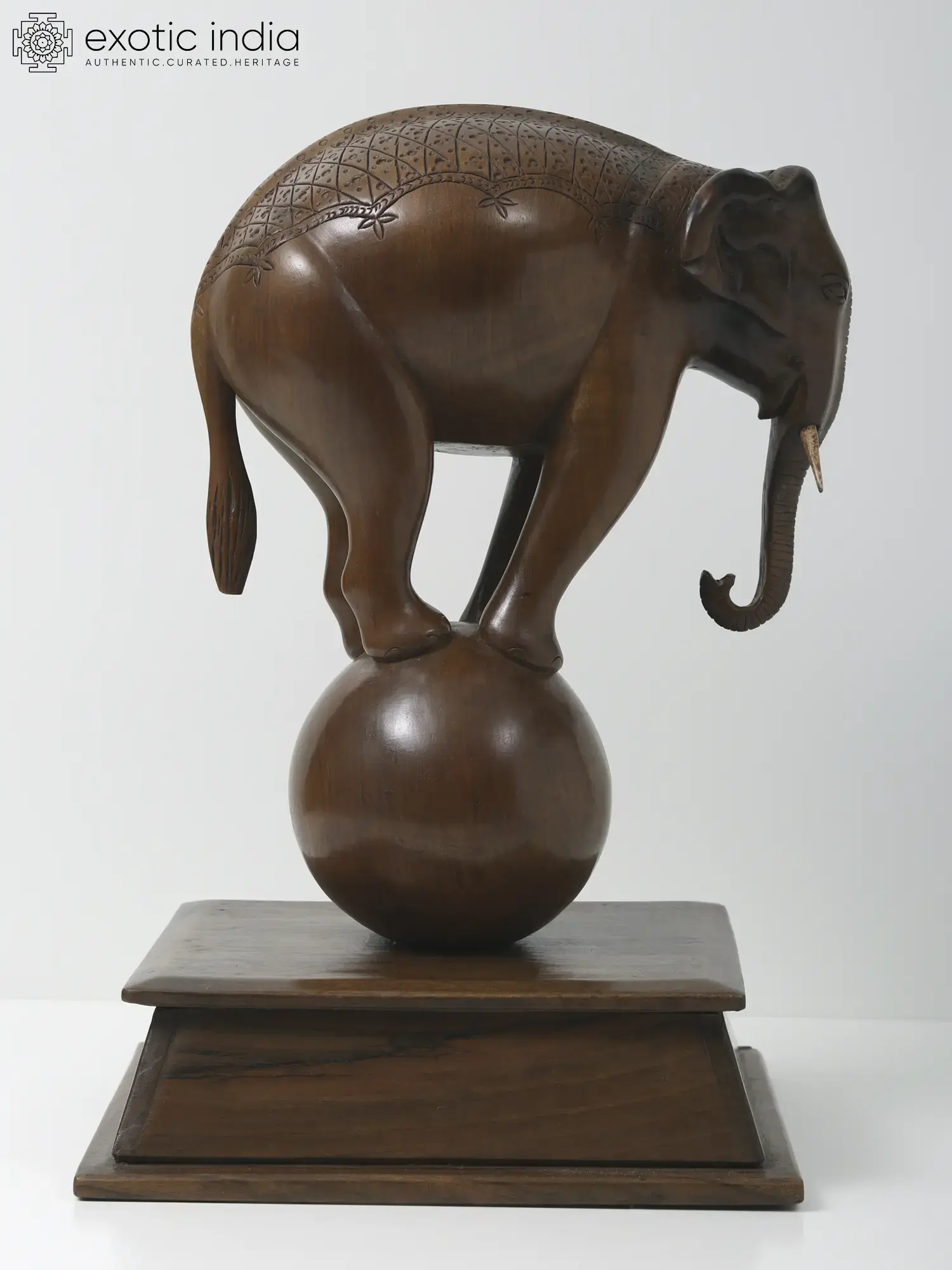 In a whimsical dance between strength and delicacy, the majestic elephant delicately balances upon a diminutive ball, defying the laws of nature with enchanting grace. Its massive form, an embodiment of power, is rendered weightless in this surreal spectacle. The juxtaposition of brawn and finesse elicits a sense of awe, challenging preconceived notions. Crafted from Walnut wook, this artwork from Kashmir is a poetic marvel, symbolising the delicate equilibrium required in life’s grand circus. It whispers of resilience, asserting that even the mightiest can navigate the precarious realms with finesse. In the delicate ballet of balance, the elephant becomes a metaphor for life’s challenges, inviting contemplation on the harmony within chaos.
