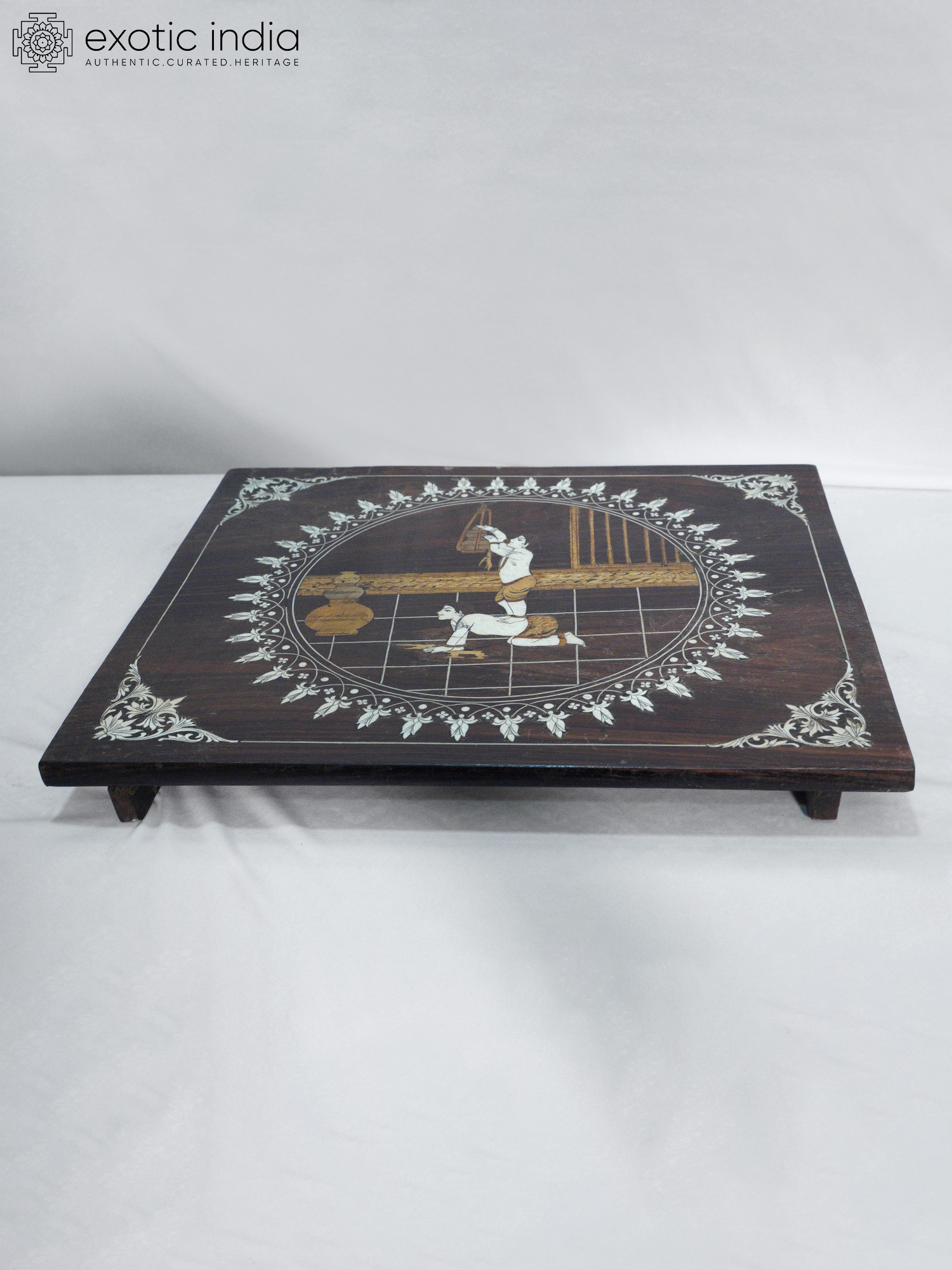9" Designer Pedestal with Dangling Ghungroos | Brass with Inlay Work