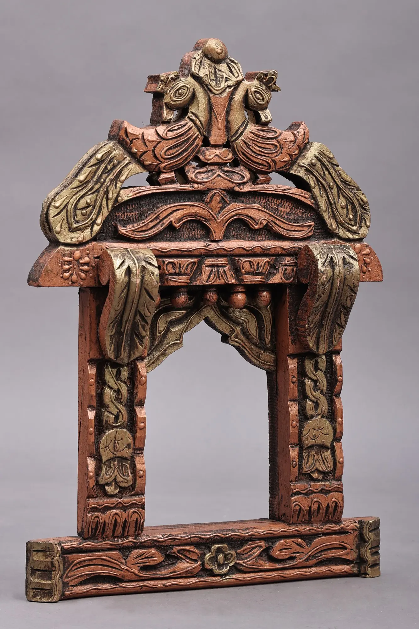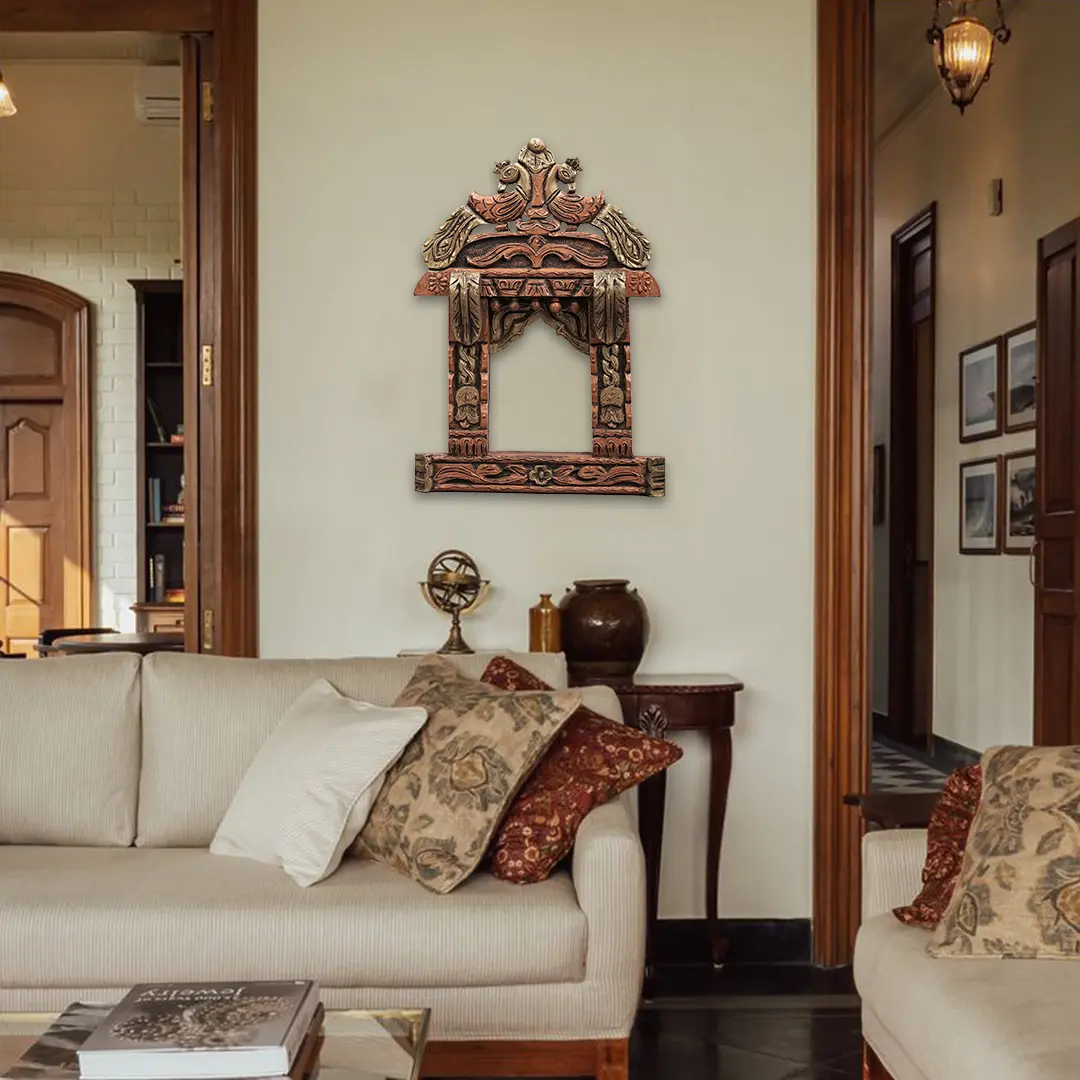 Invite a touch of Indian artistry into your home with this captivating wall accent. More than just a decorative piece, it's a vibrant expression of culture and craftsmanship, showcasing a rich heritage through intricate detail and bold colors. The design immediately draws the eye, promising to become a conversation starter and a cherished focal point in any room. Each element of this piece is carefully considered, from the meticulously carved mango wood to the vividly painted surfaces. The result is an item that not only adds visual interest to your walls, but also carries a sense of history and tradition. Its unique character will bring a distinctive flair to your living space.