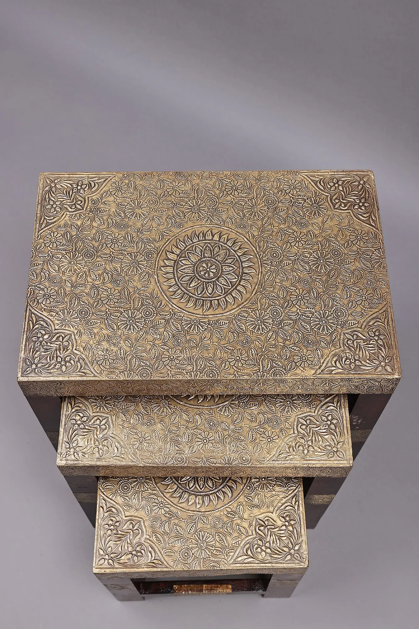 Each stool is meticulously handcrafted by skilled artisans in India, carrying on a tradition of woodworking and metalworking that has been passed down through generations. By choosing this set, you're not just buying furniture; you're supporting the livelihoods of these artisans and preserving their cultural heritage. Every detail, from the smooth finish of the wood to the intricate patterns in the brass, reflects the passion and dedication of the craftspeople who brought these pieces to life. Embrace the beauty of handmade artistry and add a touch of global flair to your home.