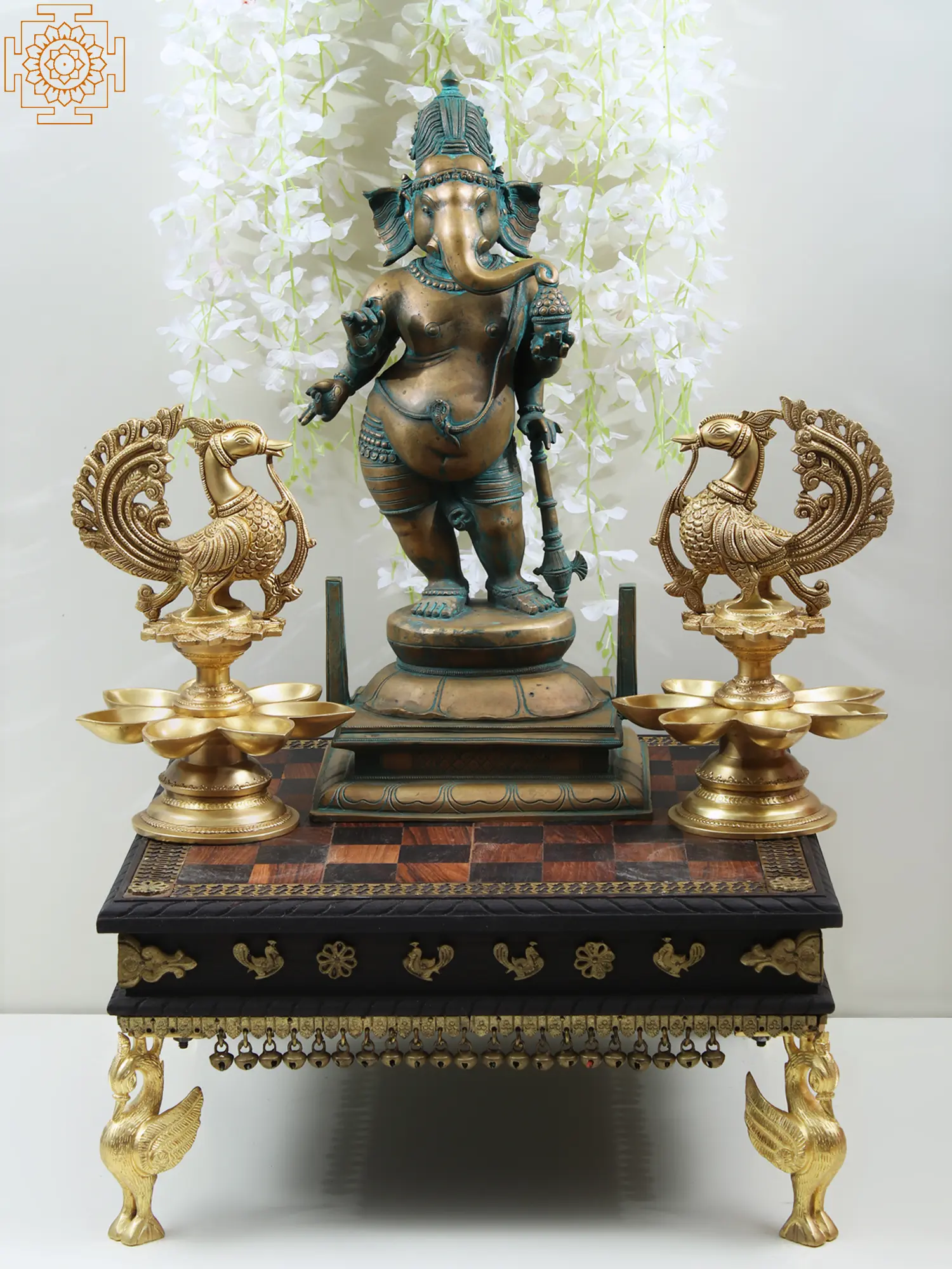 15" Designer Chowki with Dangling Ghungroos | Wooden Pedestal | Handmade Pelli